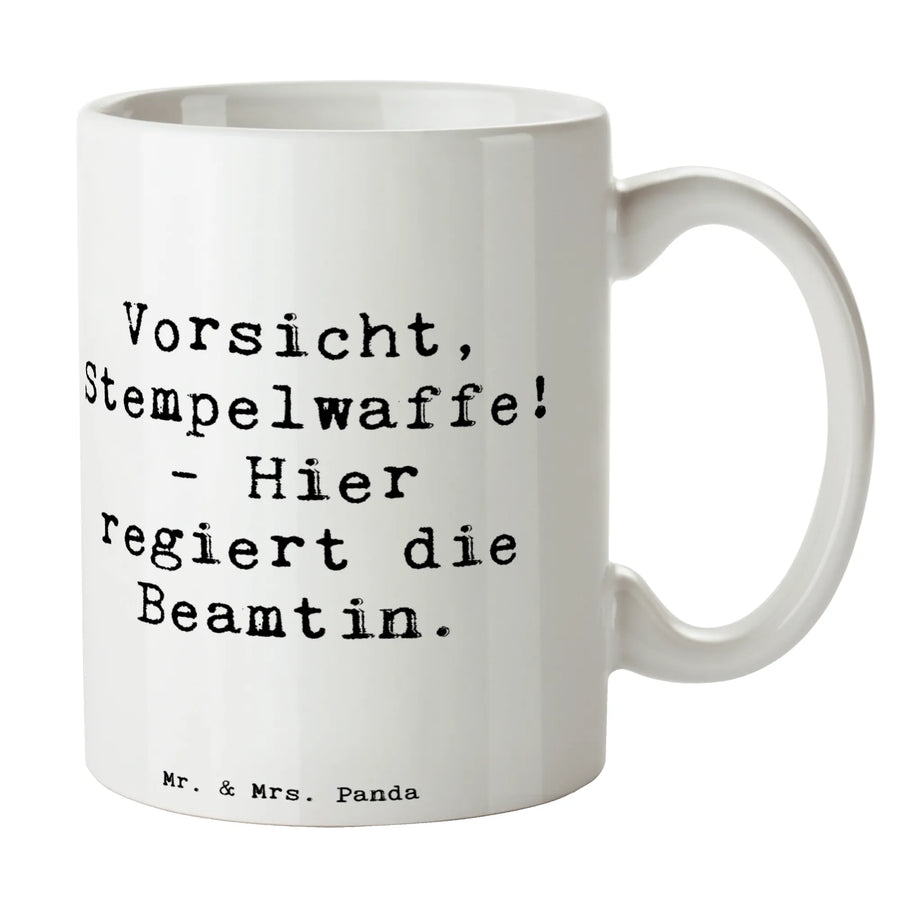 Mug Saying Vorsicht, Stempelwaffe! - Hier regiert die Beamtin. - White