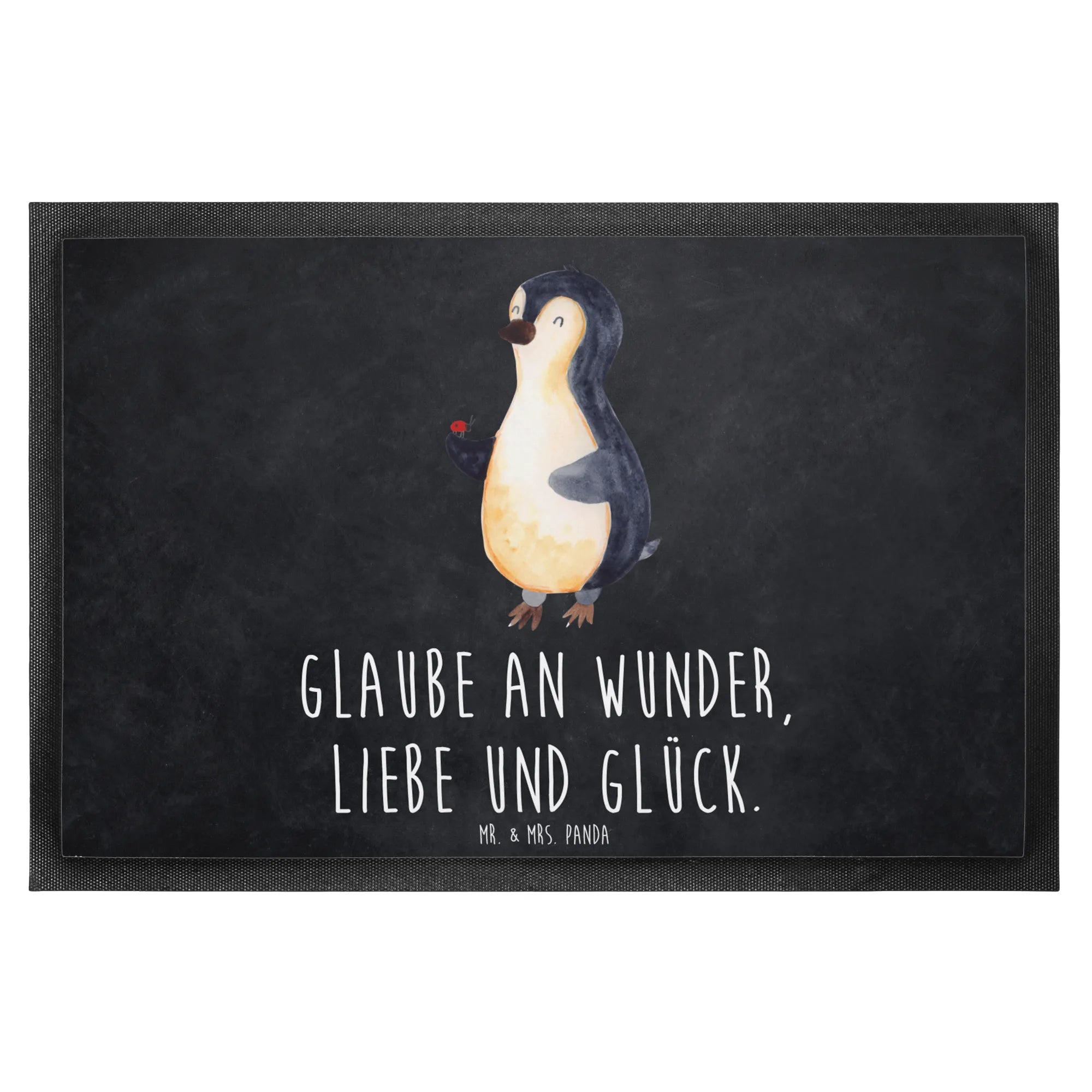 Doormat Penguin ladybug - 40 x 60 cm - with saying - Black