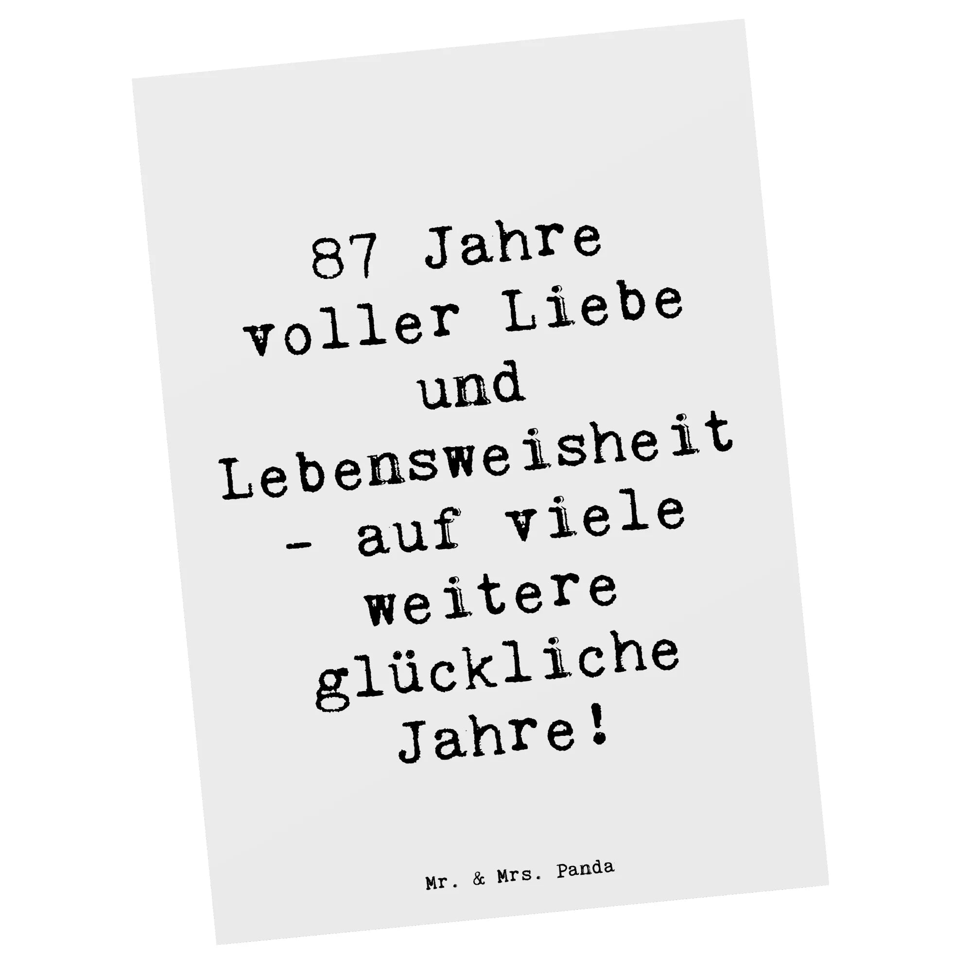 Postcard Saying 87 Jahre voller Liebe und Lebensweisheit - auf viele weitere glückliche Jahre! - White