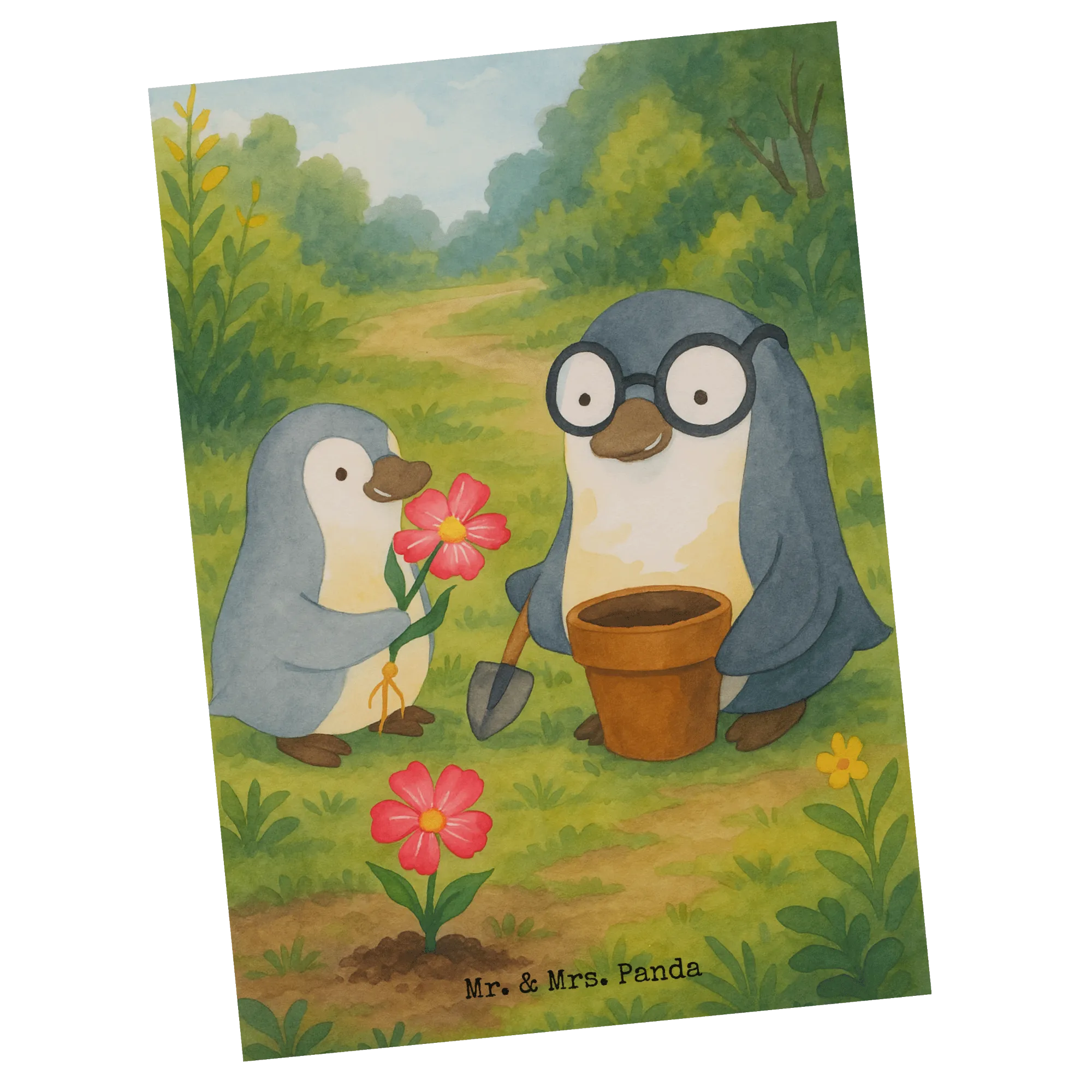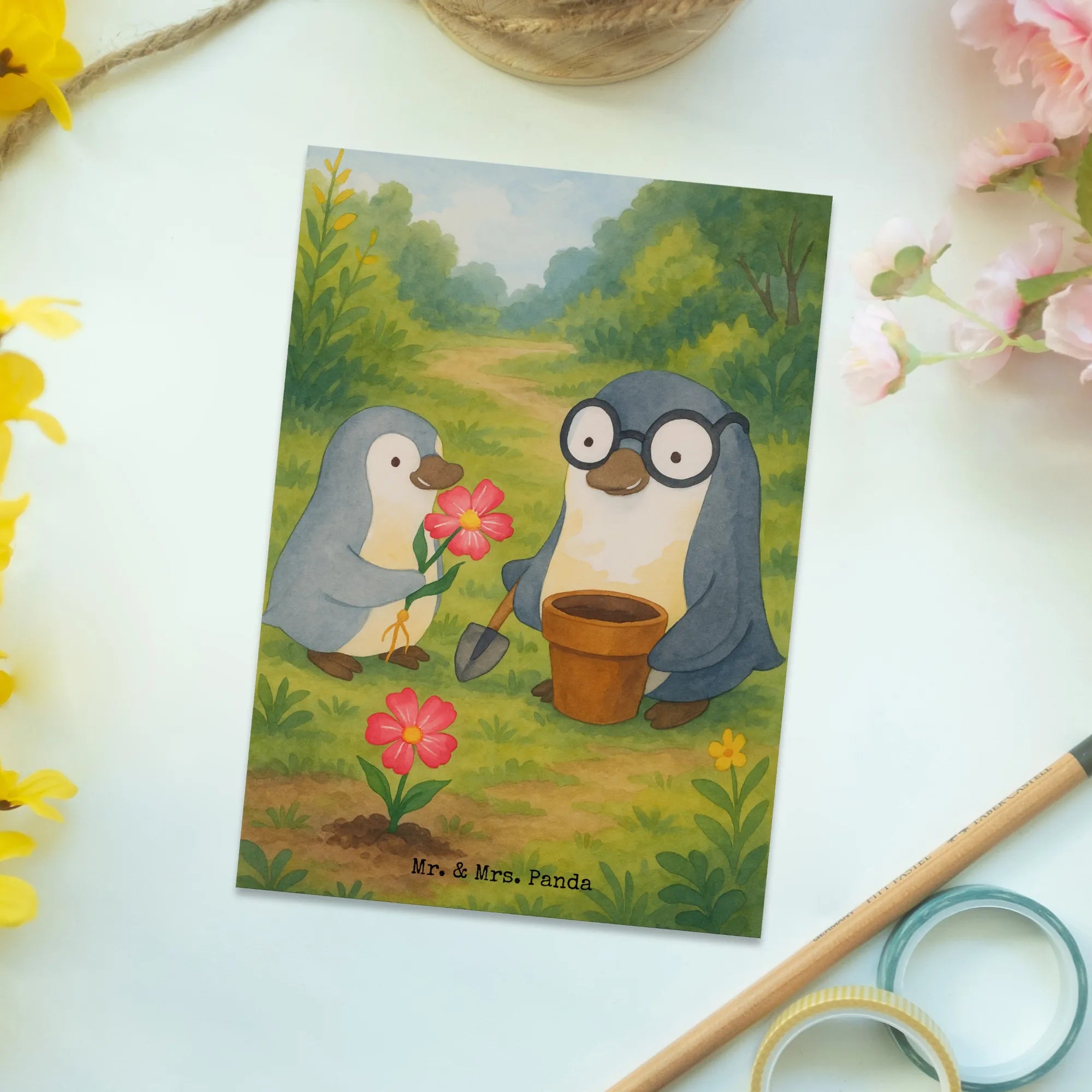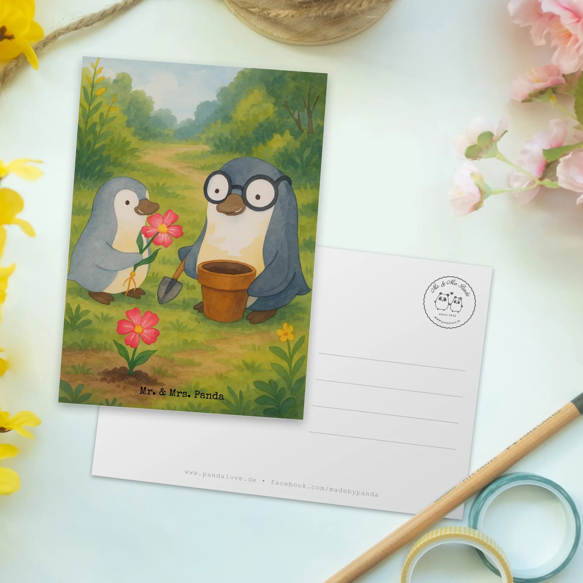 Postcard Penguin grandpa planting flowers Design - with a saying