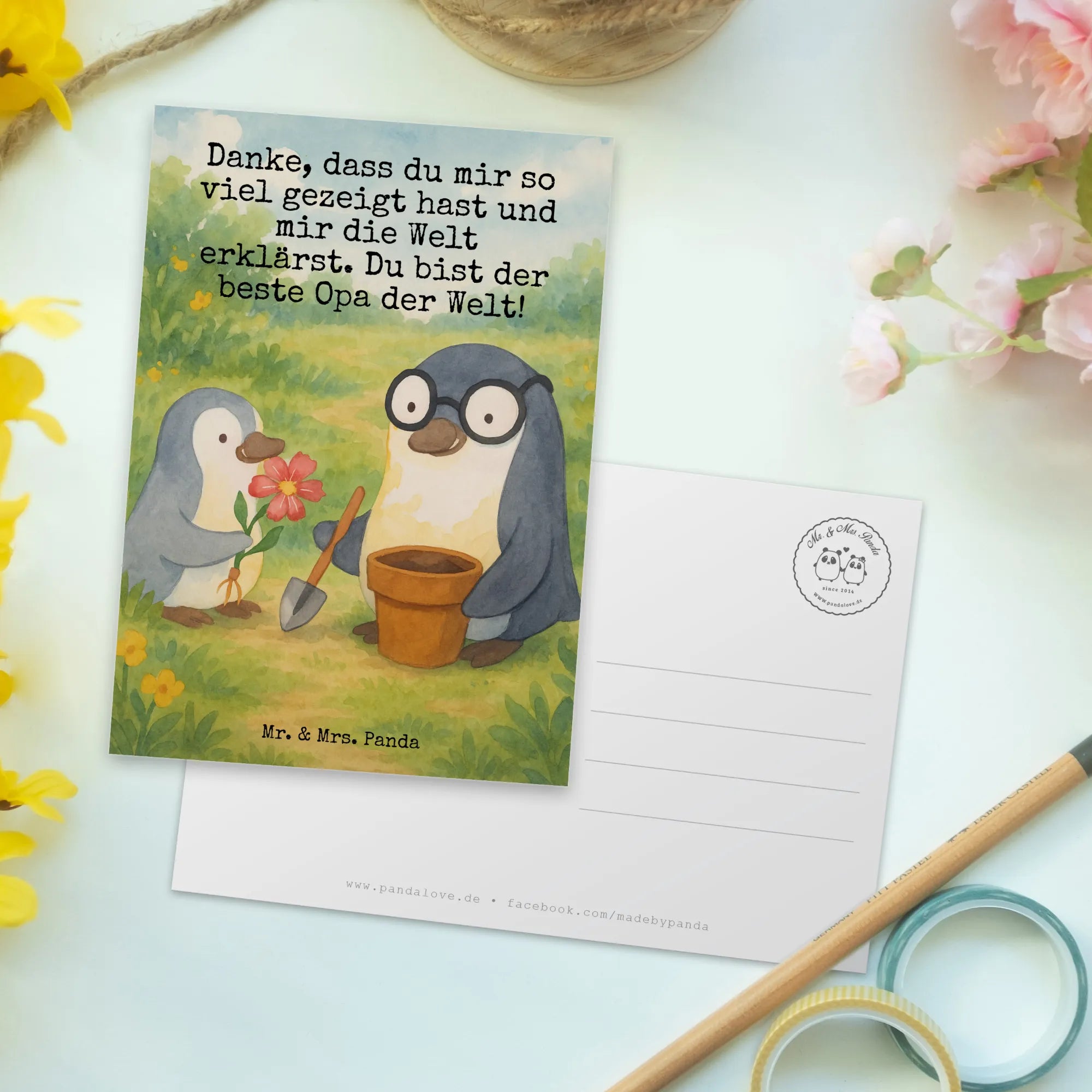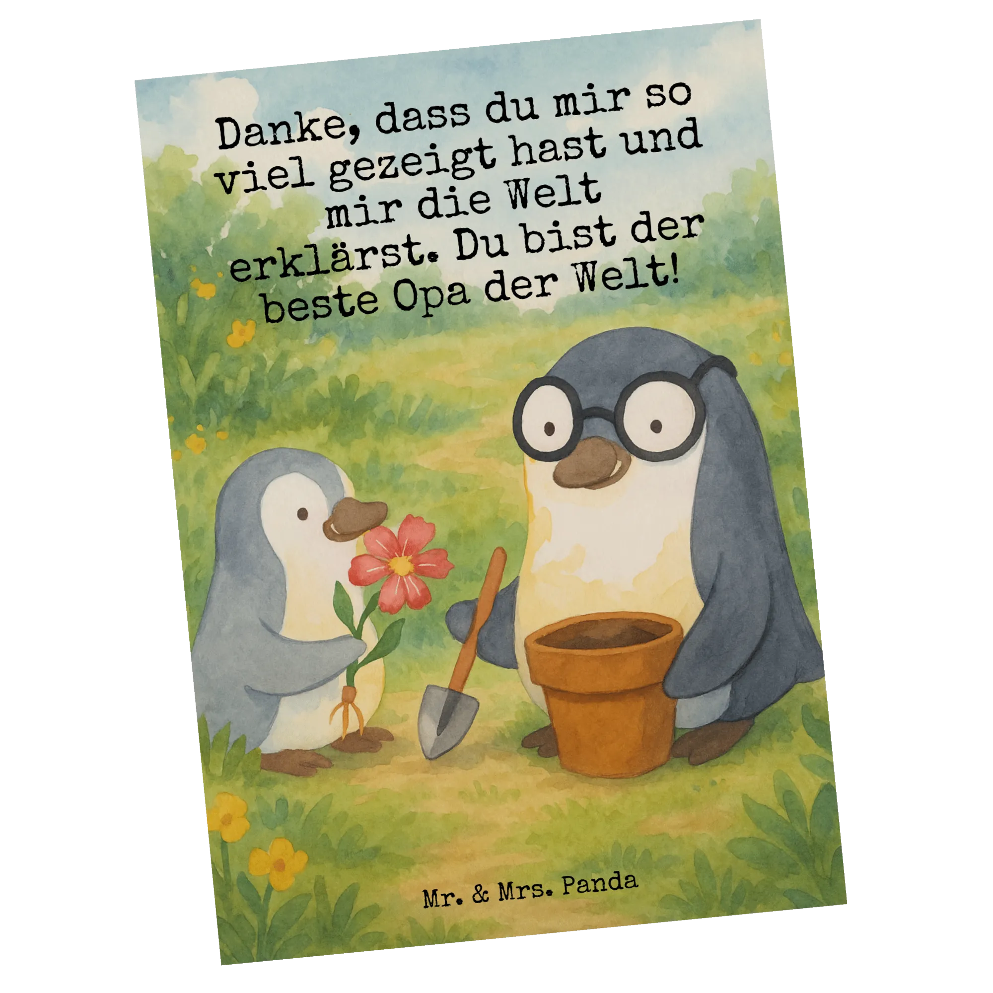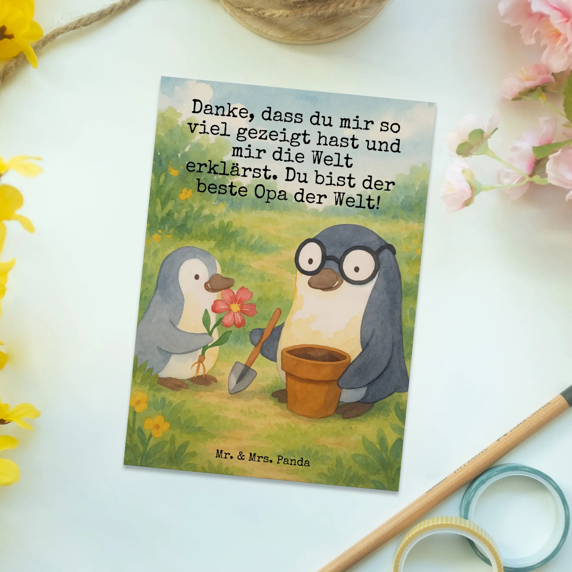 Postcard Penguin grandpa planting flowers Design - with a saying