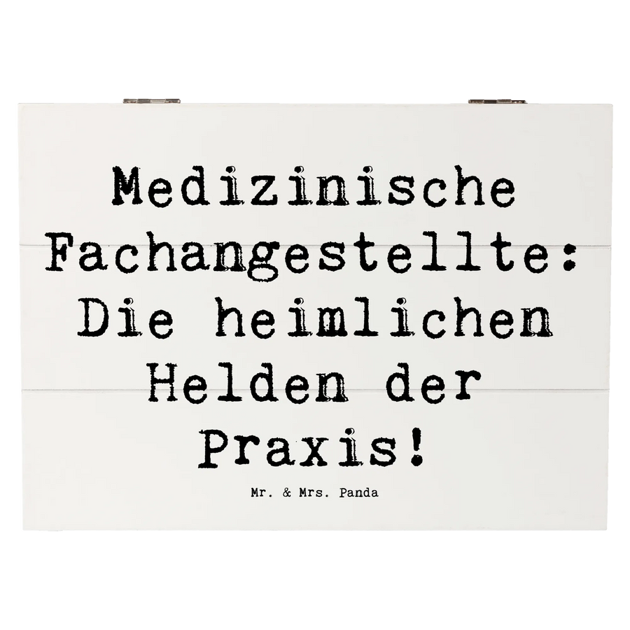 Wooden chest Saying Medizinische Fachangestellte: Die heimlichen Helden der Praxis! - 25 x 18 cm - White
