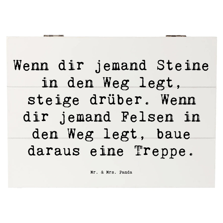 Wooden chest Saying Wenn dir jemand Steine in den Weg legt, steige drüber. Wenn dir jemand Felsen in den Weg legt, baue daraus eine Treppe. - 25 x 18 cm - White
