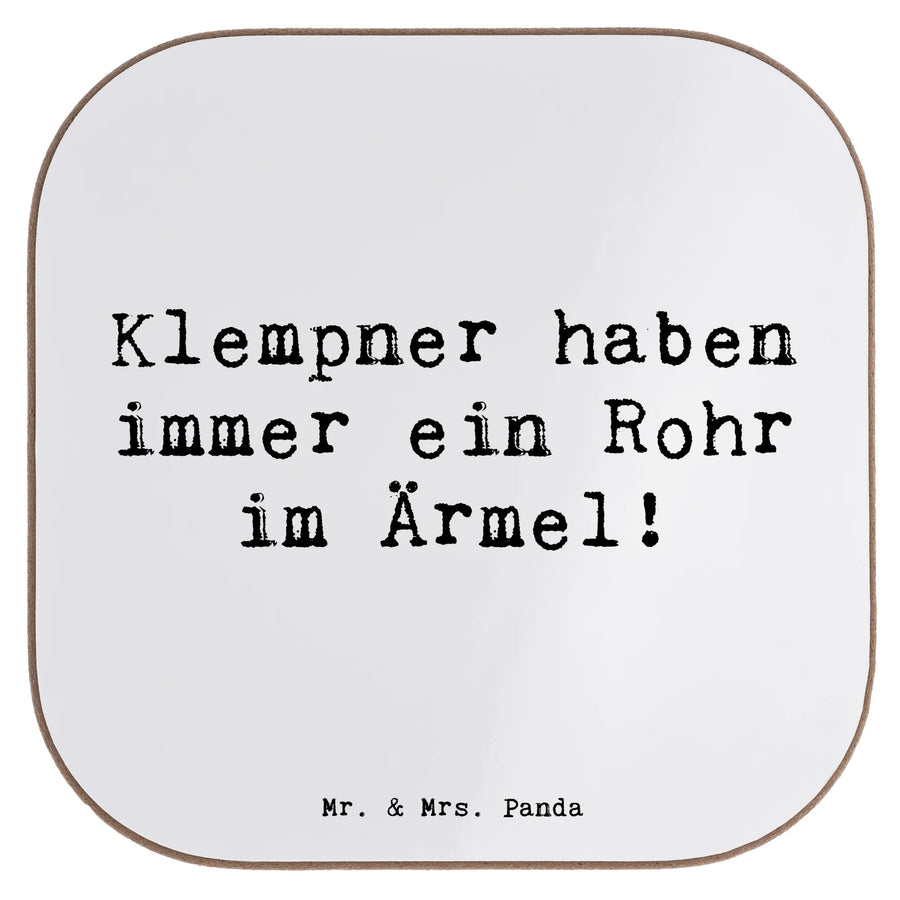 Square coaster Saying Klempner haben immer ein Rohr im Ärmel! - White
