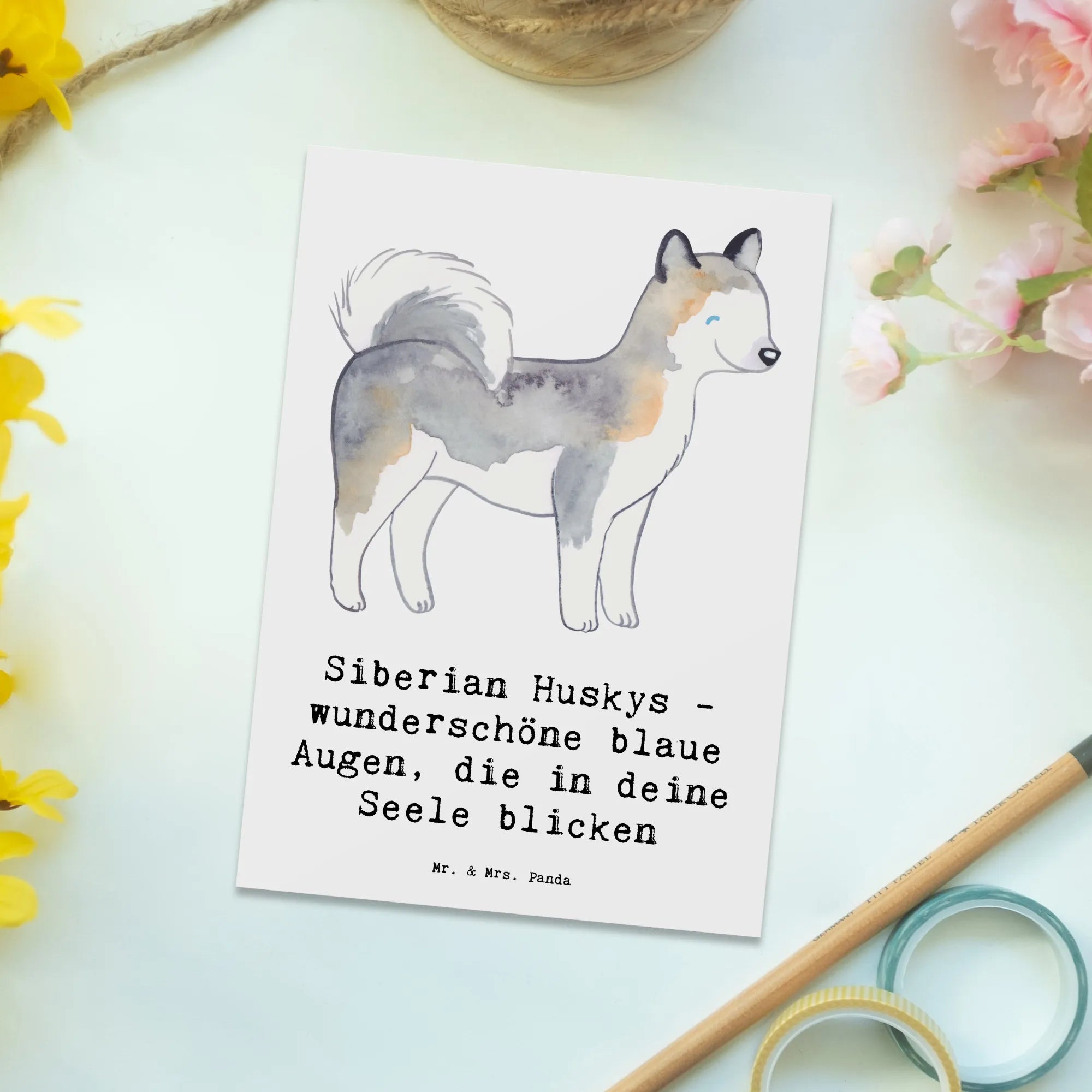 Postcard Siberian Huskys - wunderschöne blaue Augen, die in deine Seele blicken - White