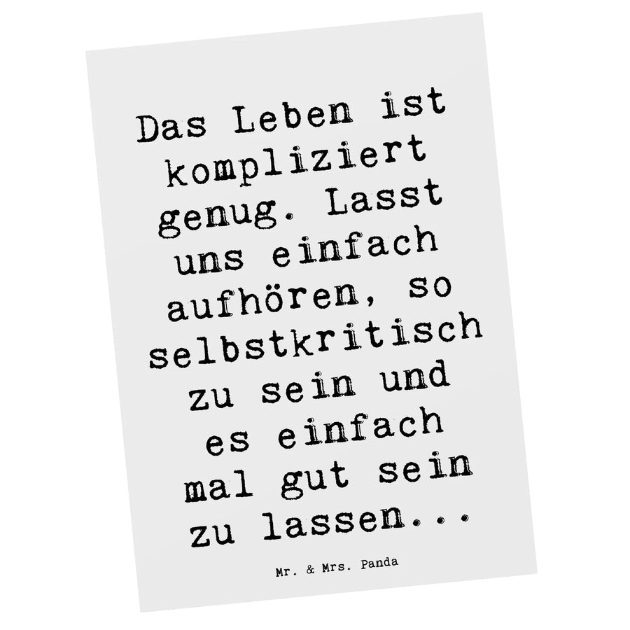 Postcard Saying Das Leben ist kompliziert genug. Lasst uns einfach aufhören, so selbstkritisch zu sein und es einfach mal gut sein zu lassen... - White
