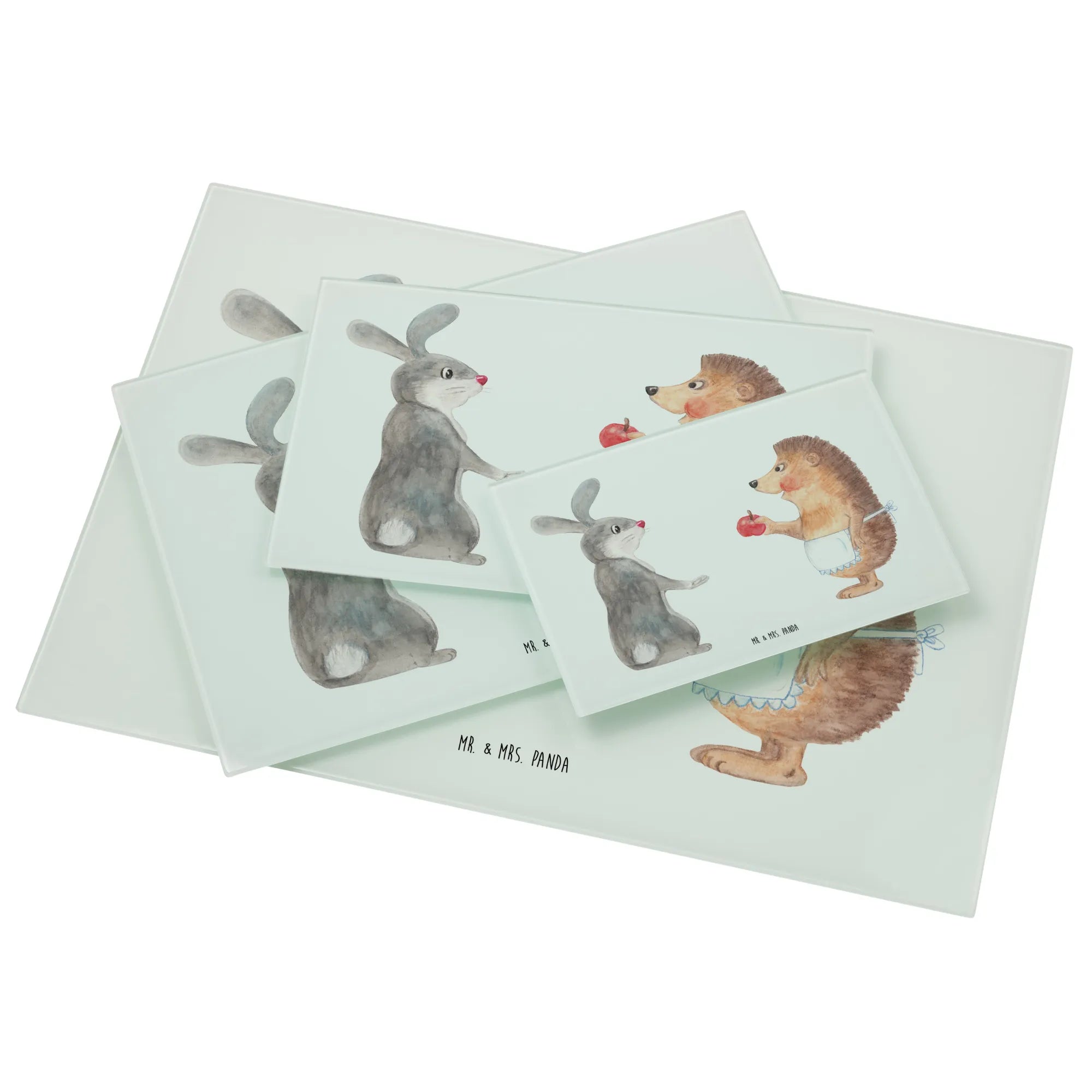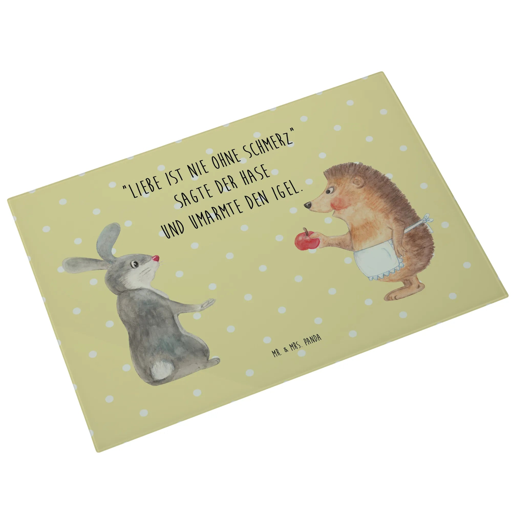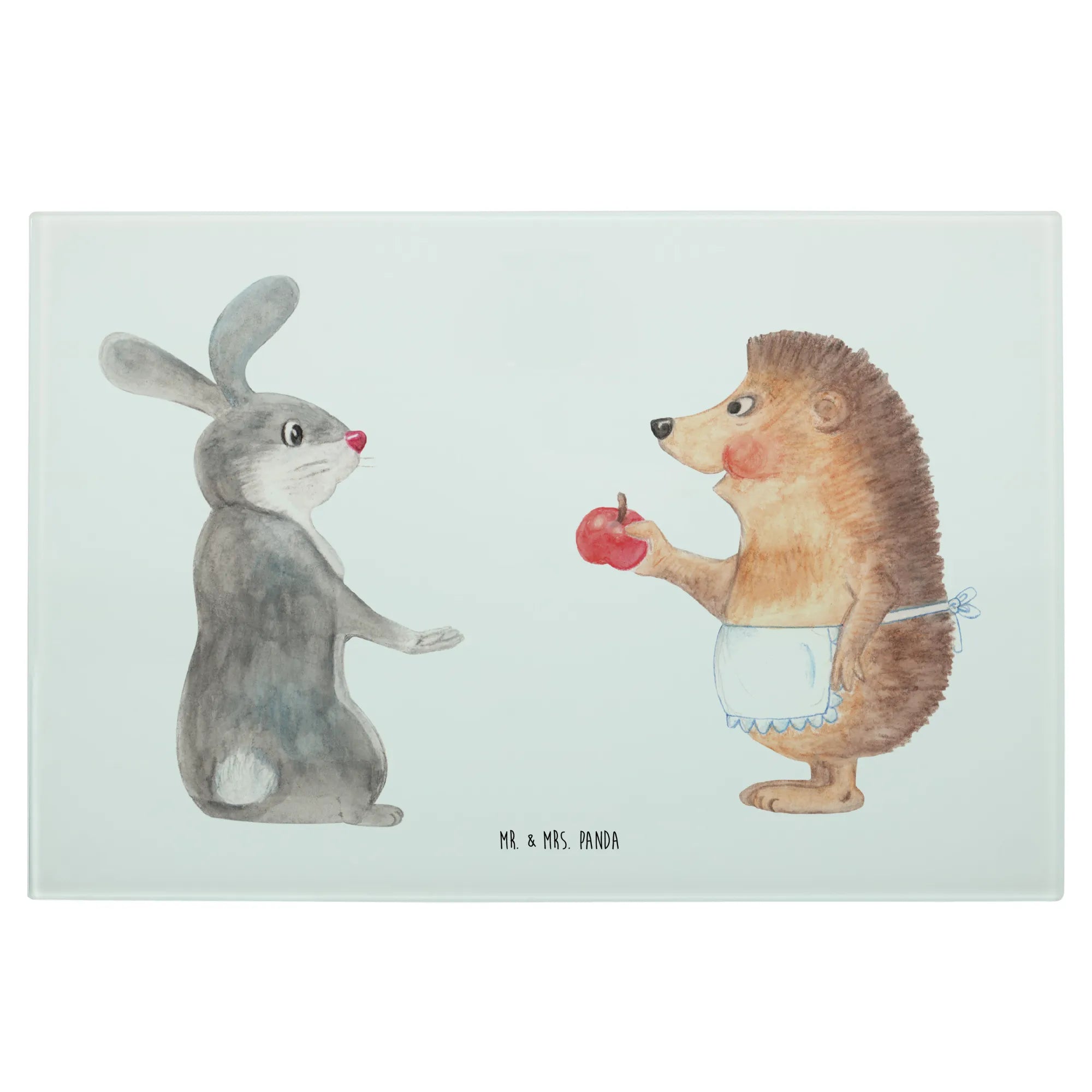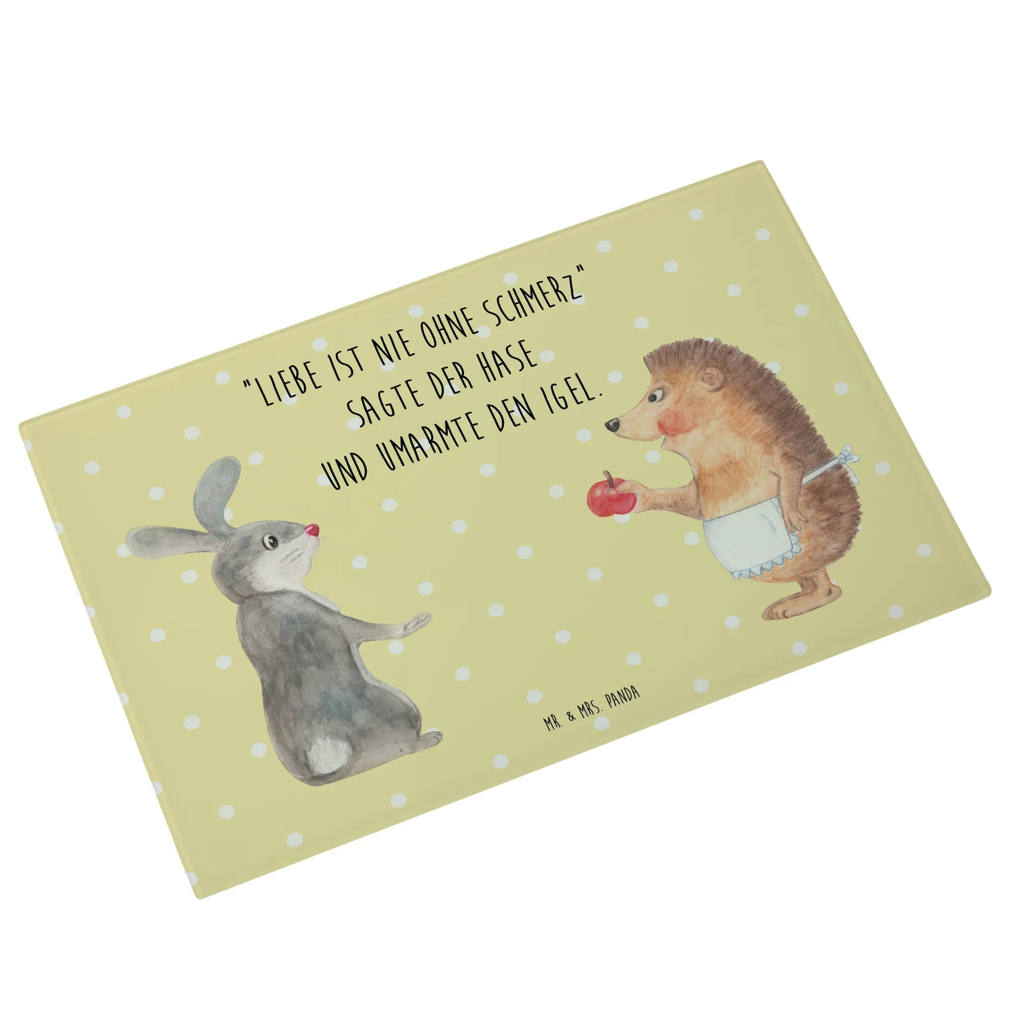 Glass chopping board Hare Hedgehog - Medium Glas Schneidbrett - with saying - White