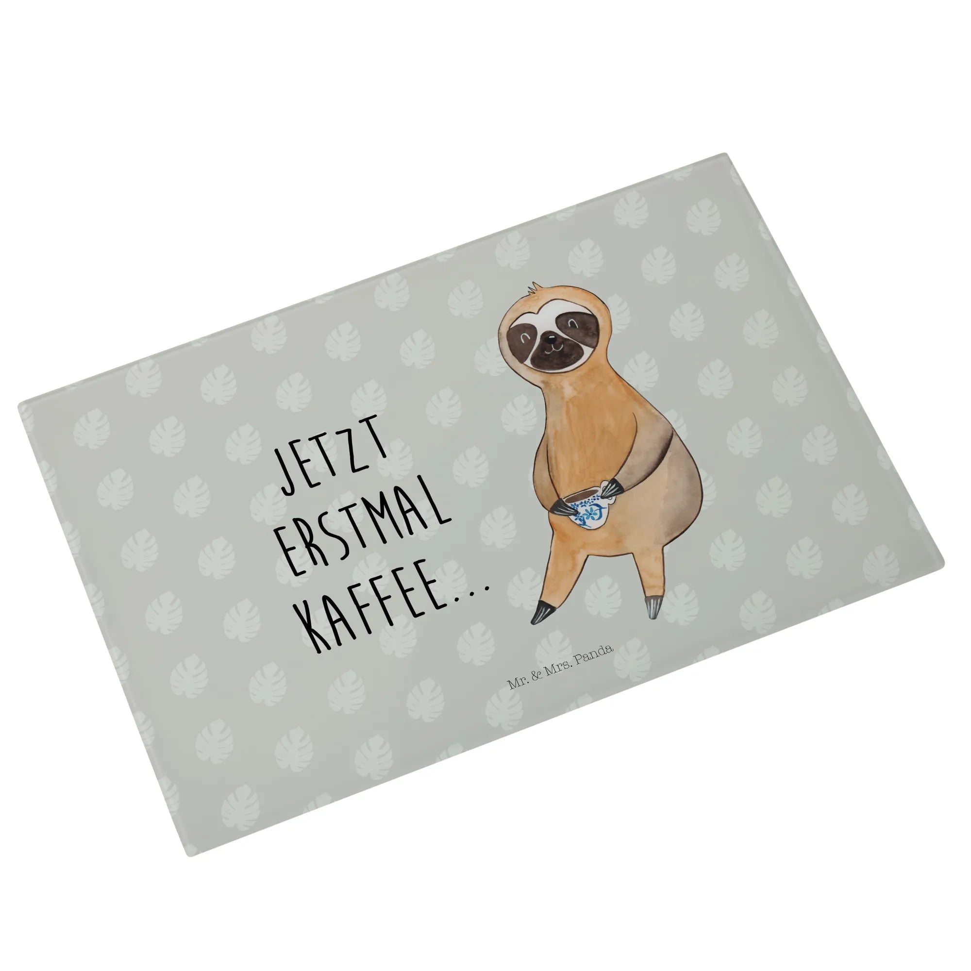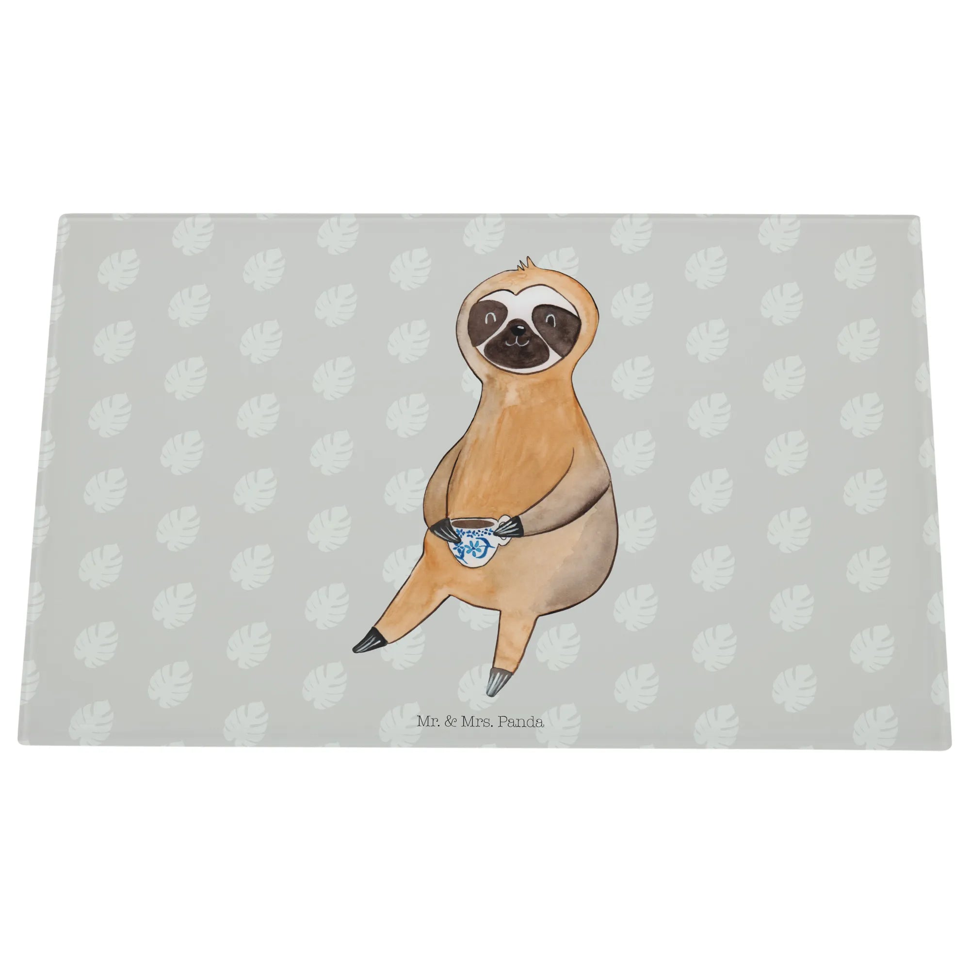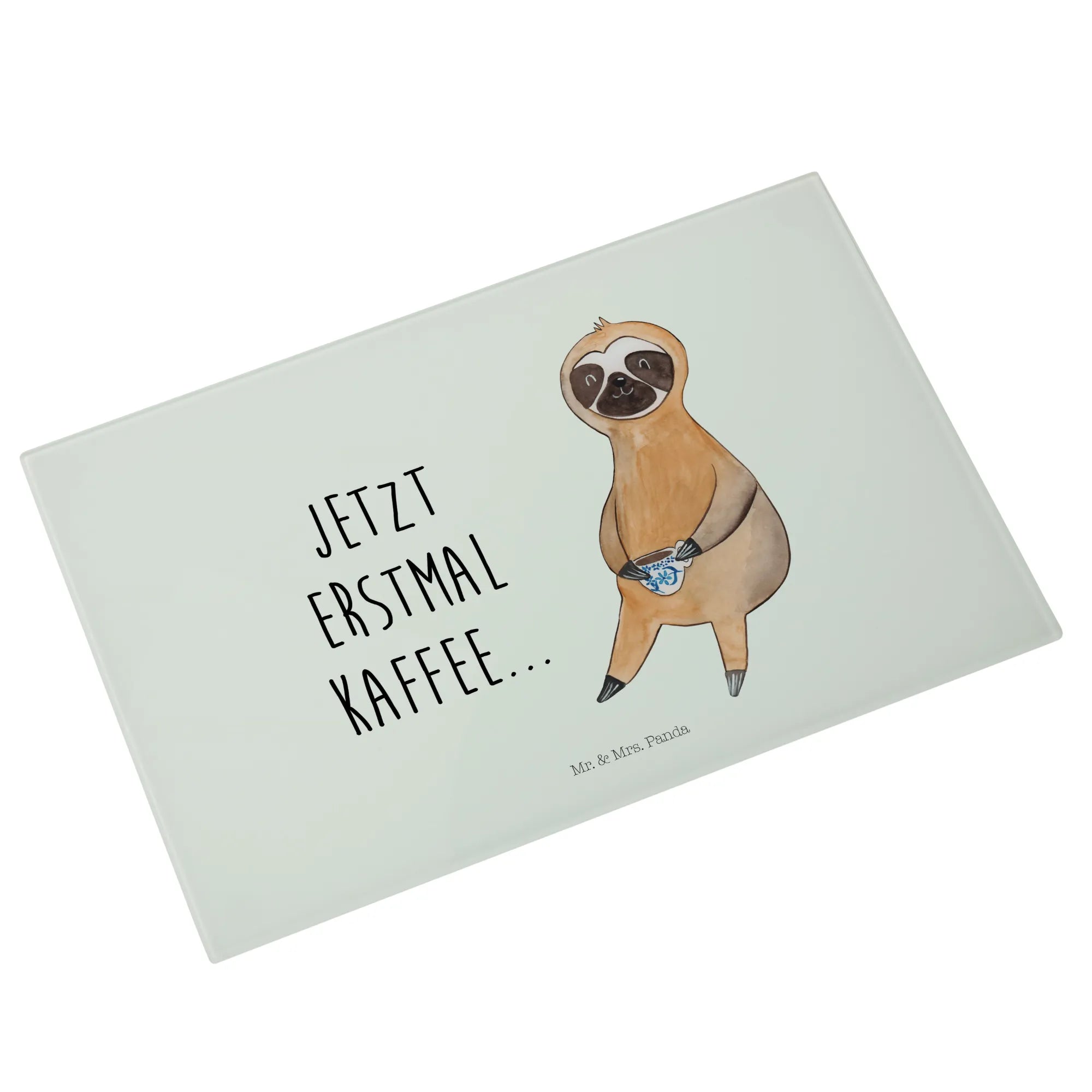 Glass chopping board sloth Coffee - Medium Glas Schneidbrett - with saying - White