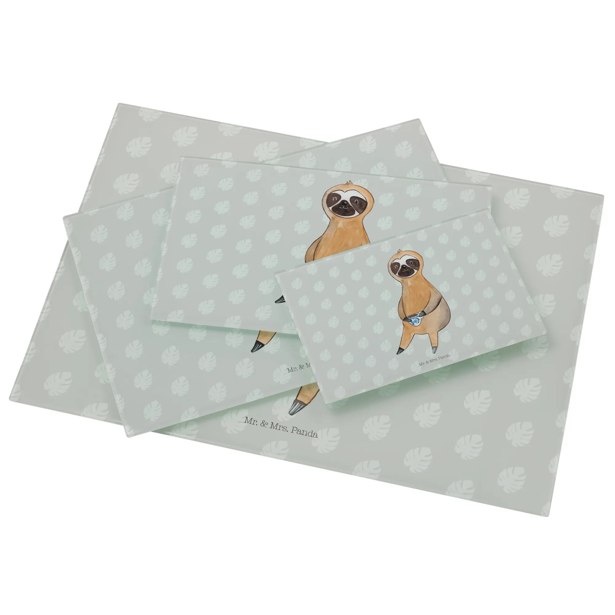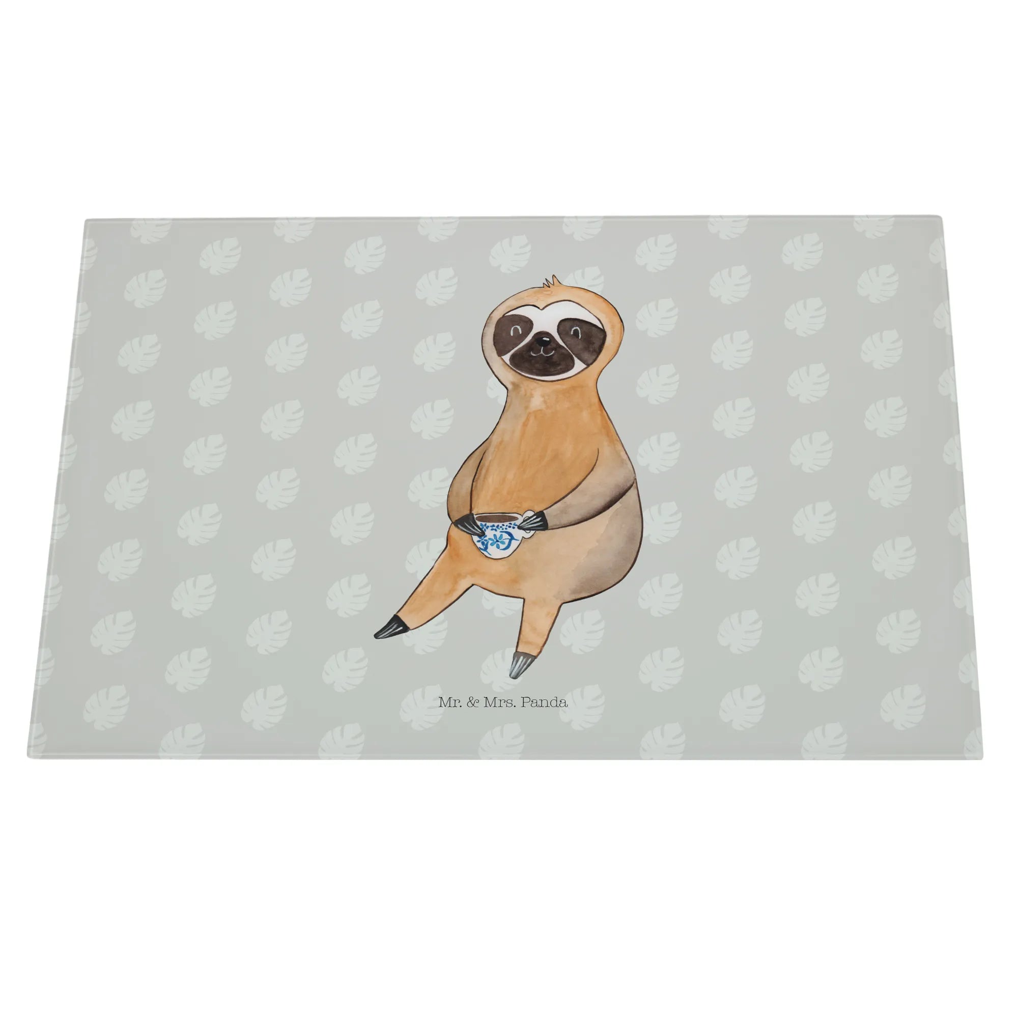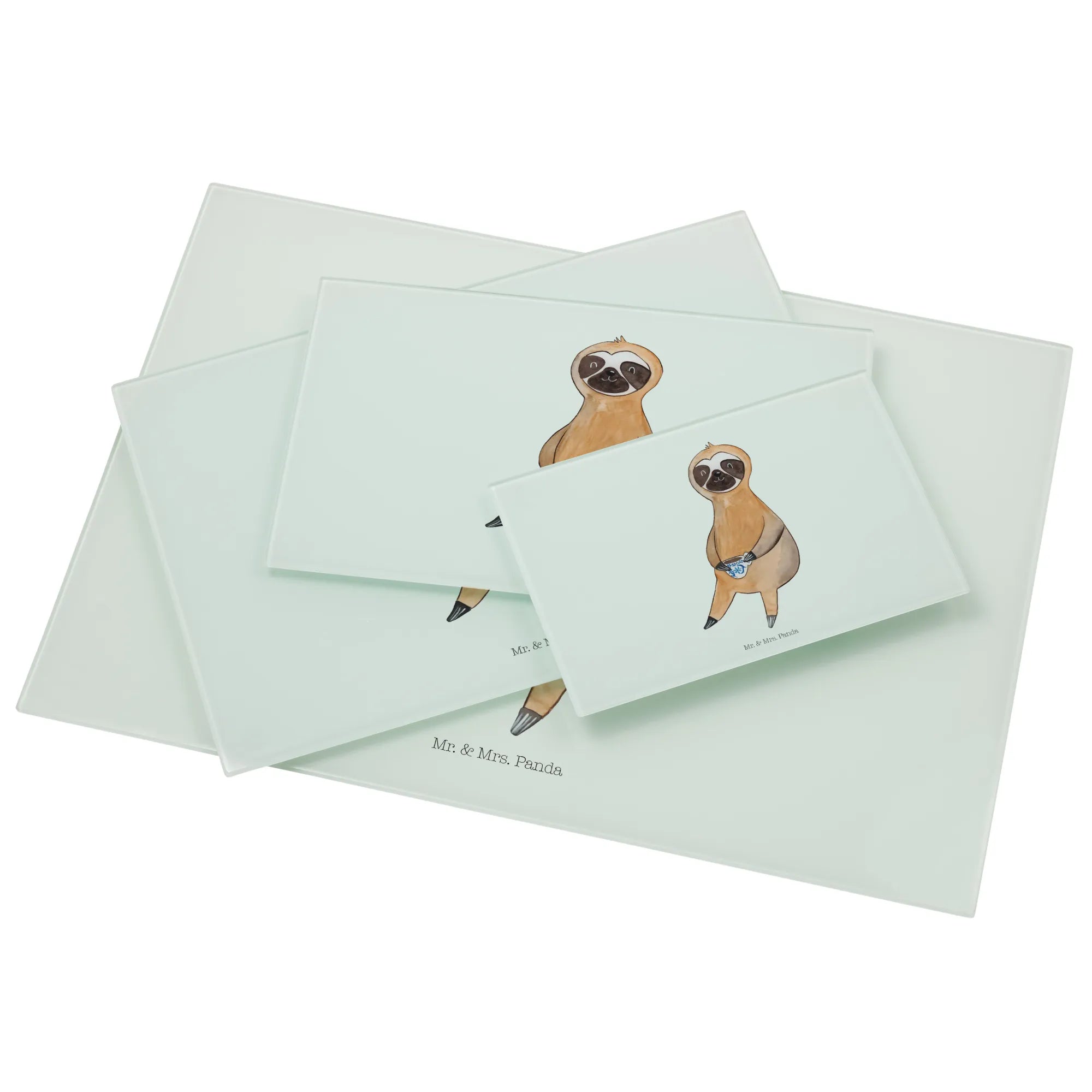 Glass chopping board sloth Coffee - Medium Glas Schneidbrett - with saying - White
