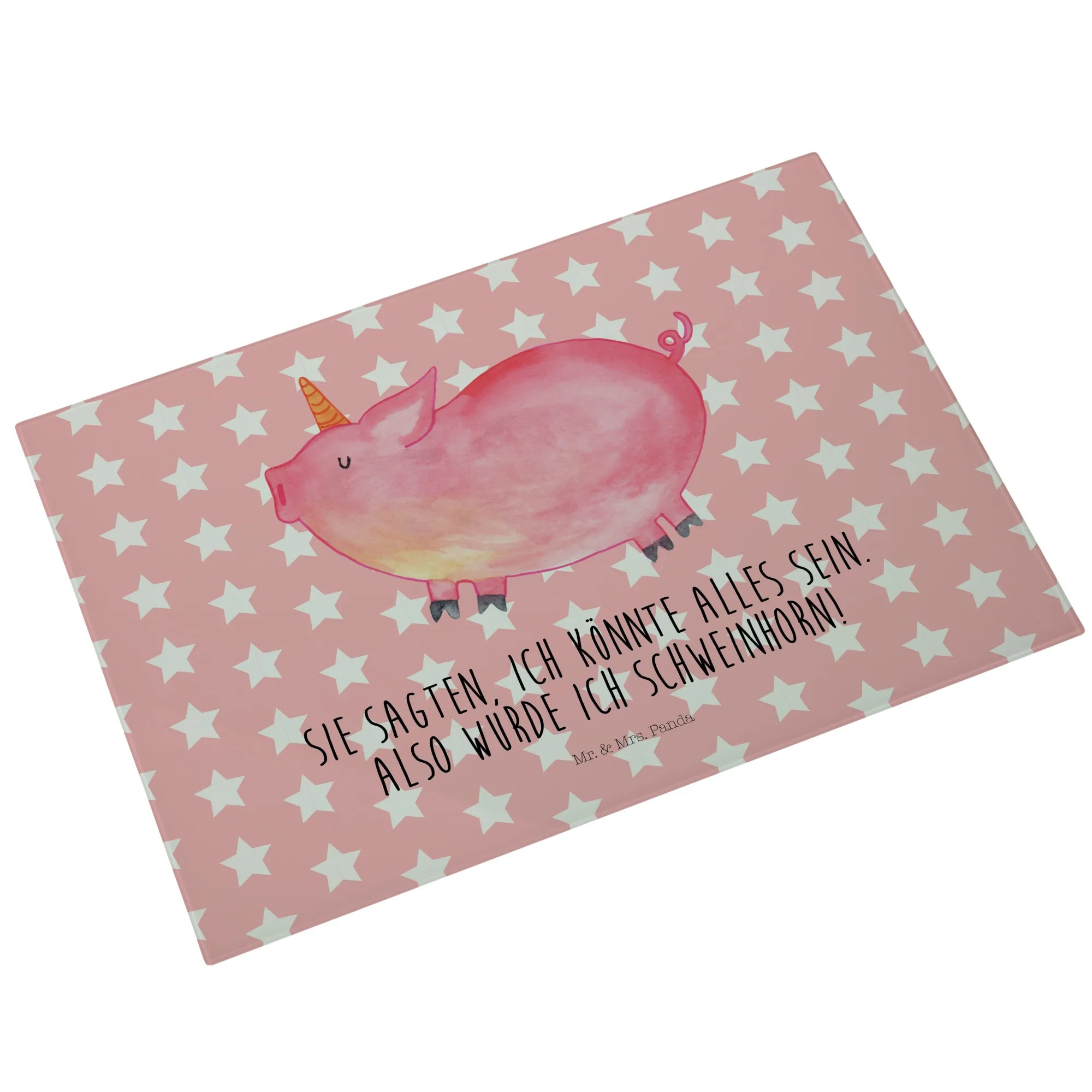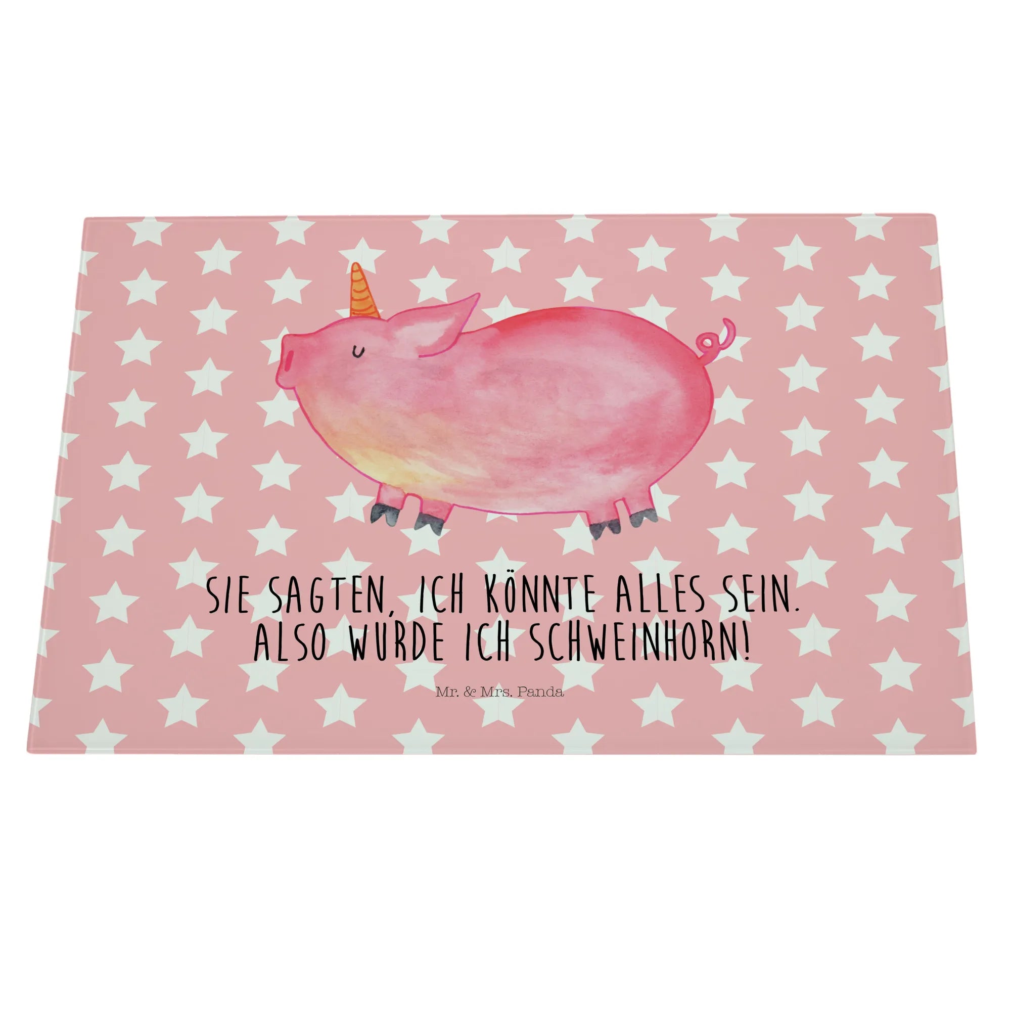 Glass chopping board unicorn Pig - Medium Glas Schneidbrett - with saying - White