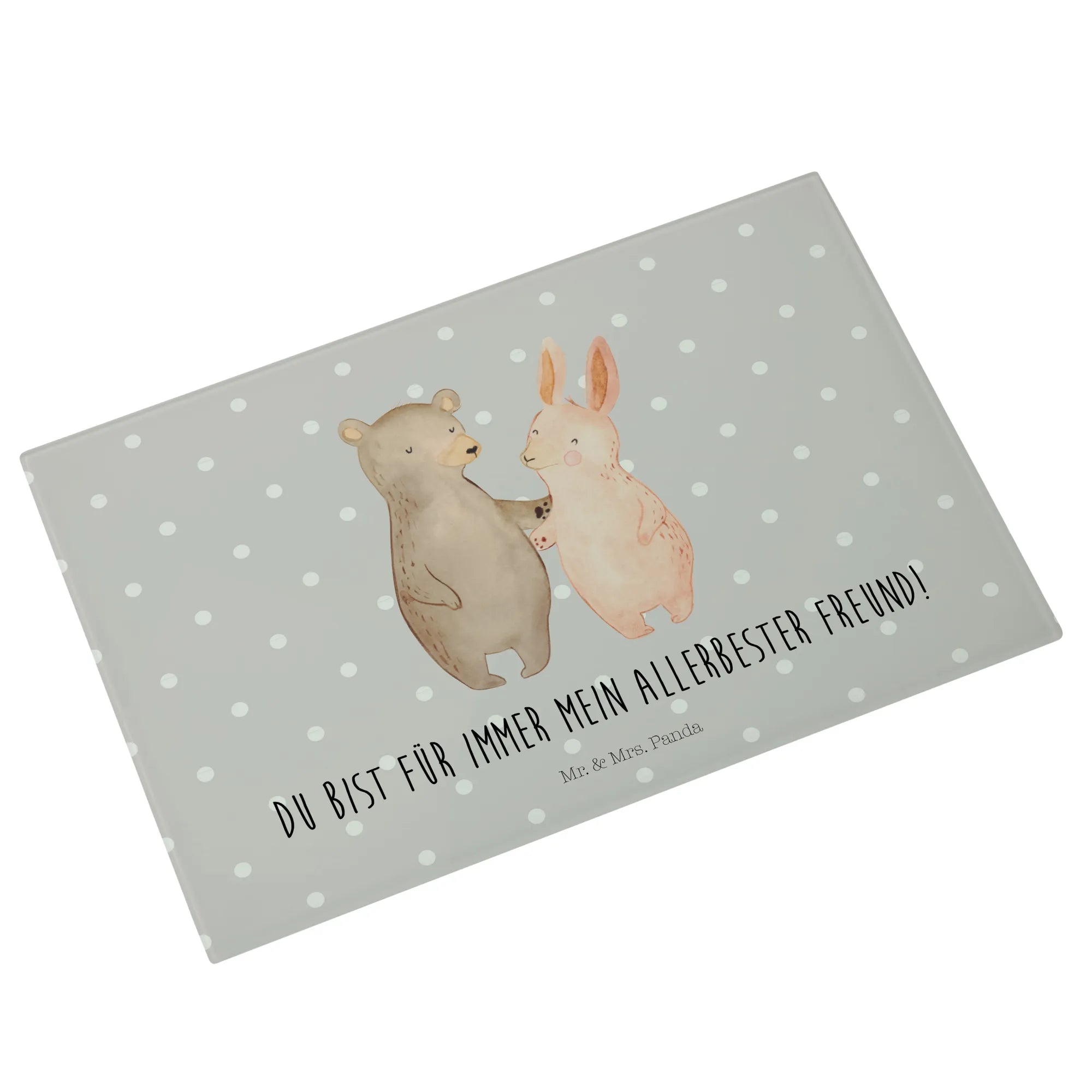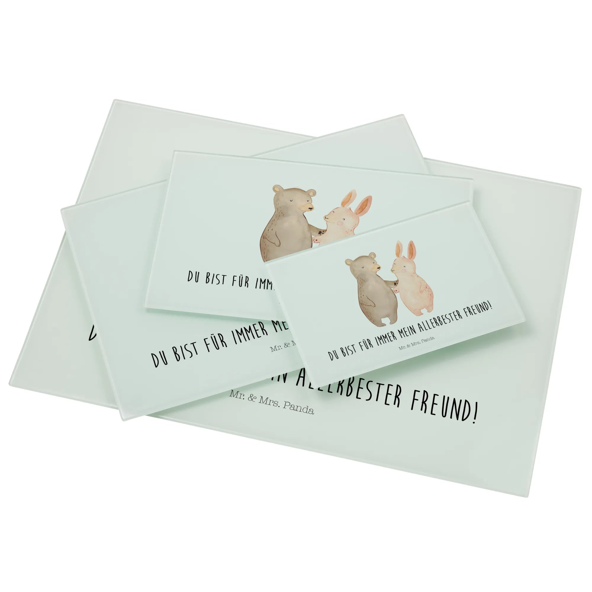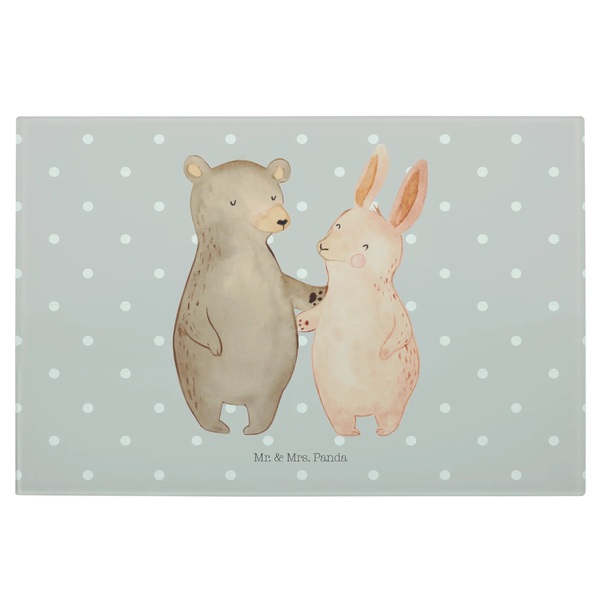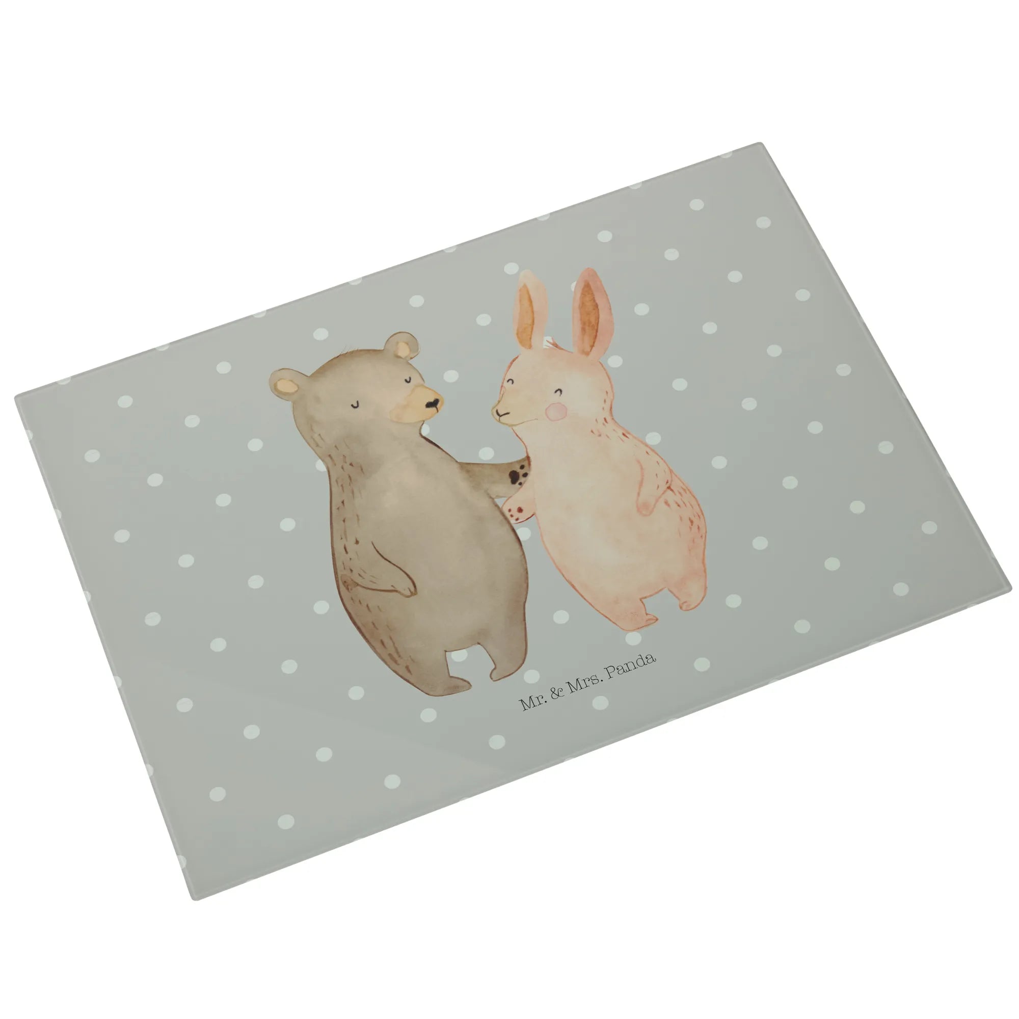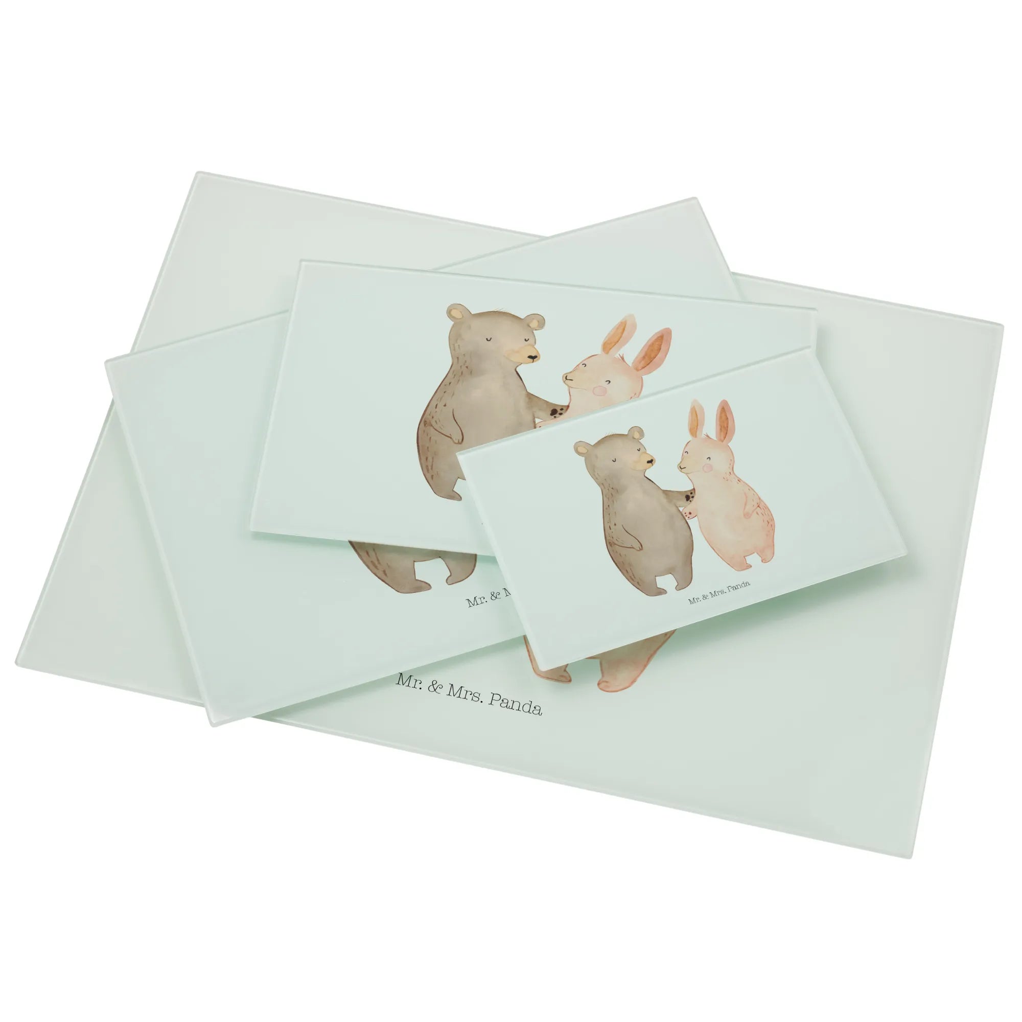 XL glass chopping board bear and rabbit Embrace - Medium Glas Schneidbrett - with saying - White