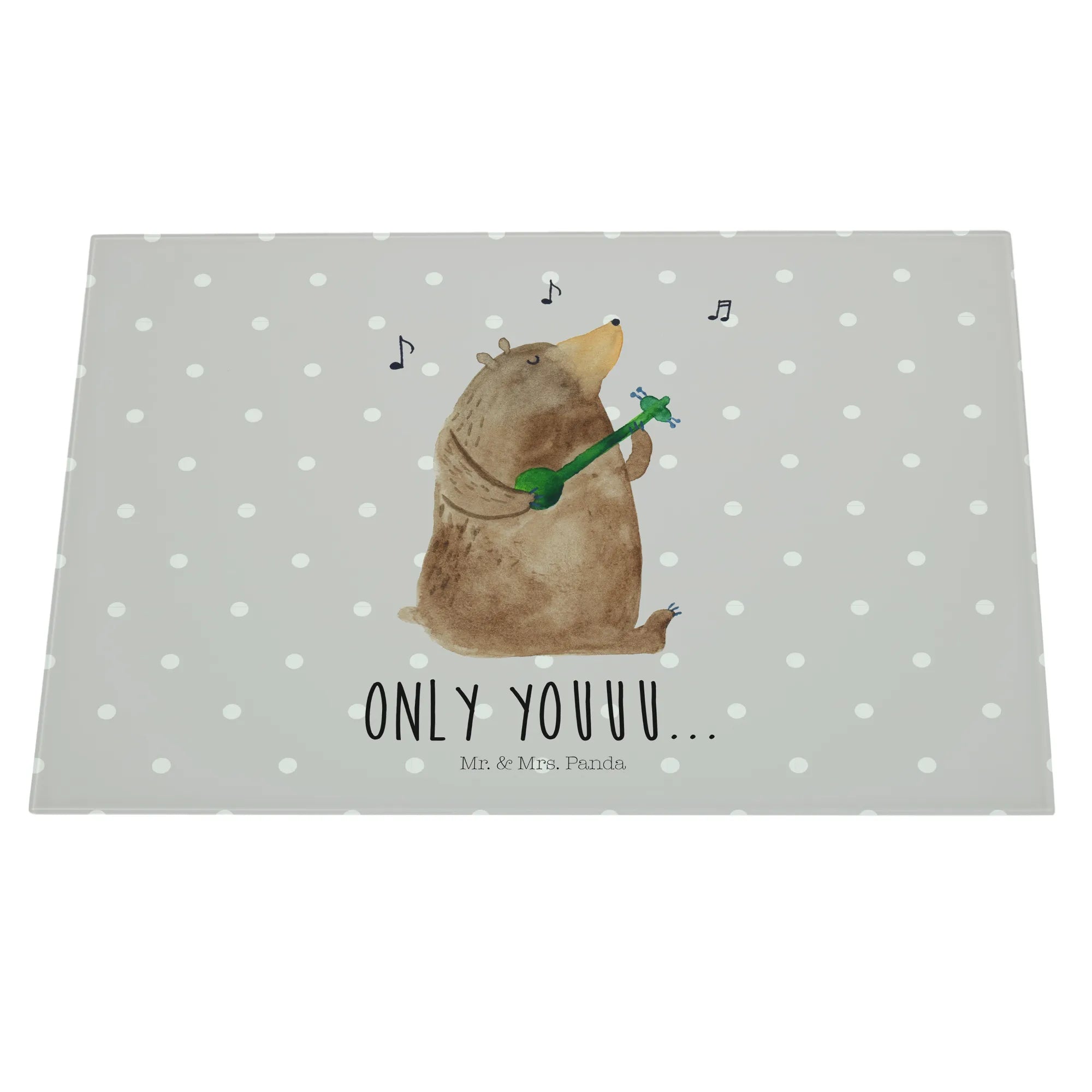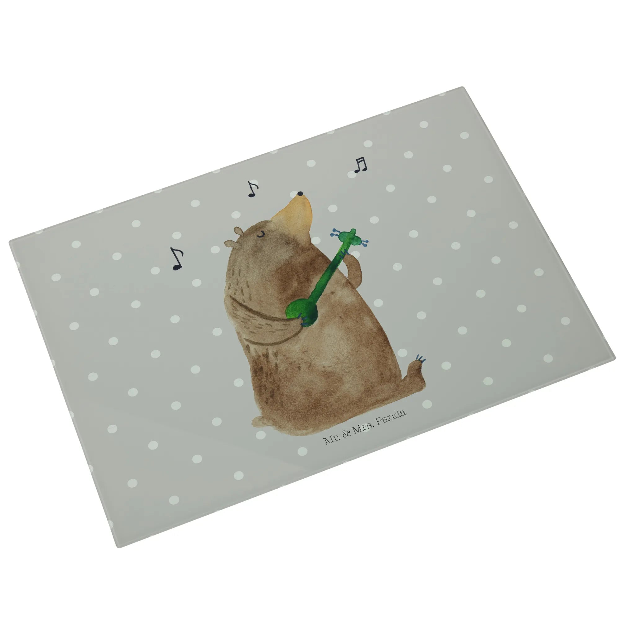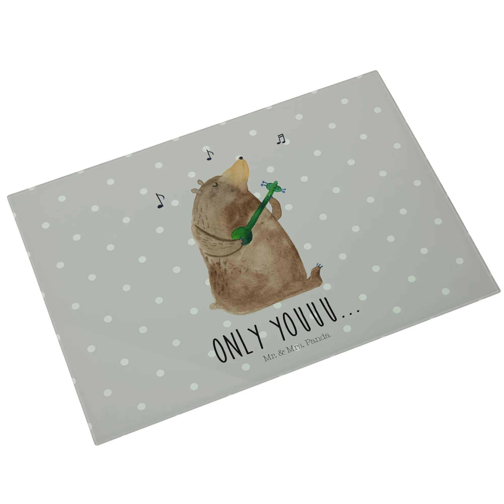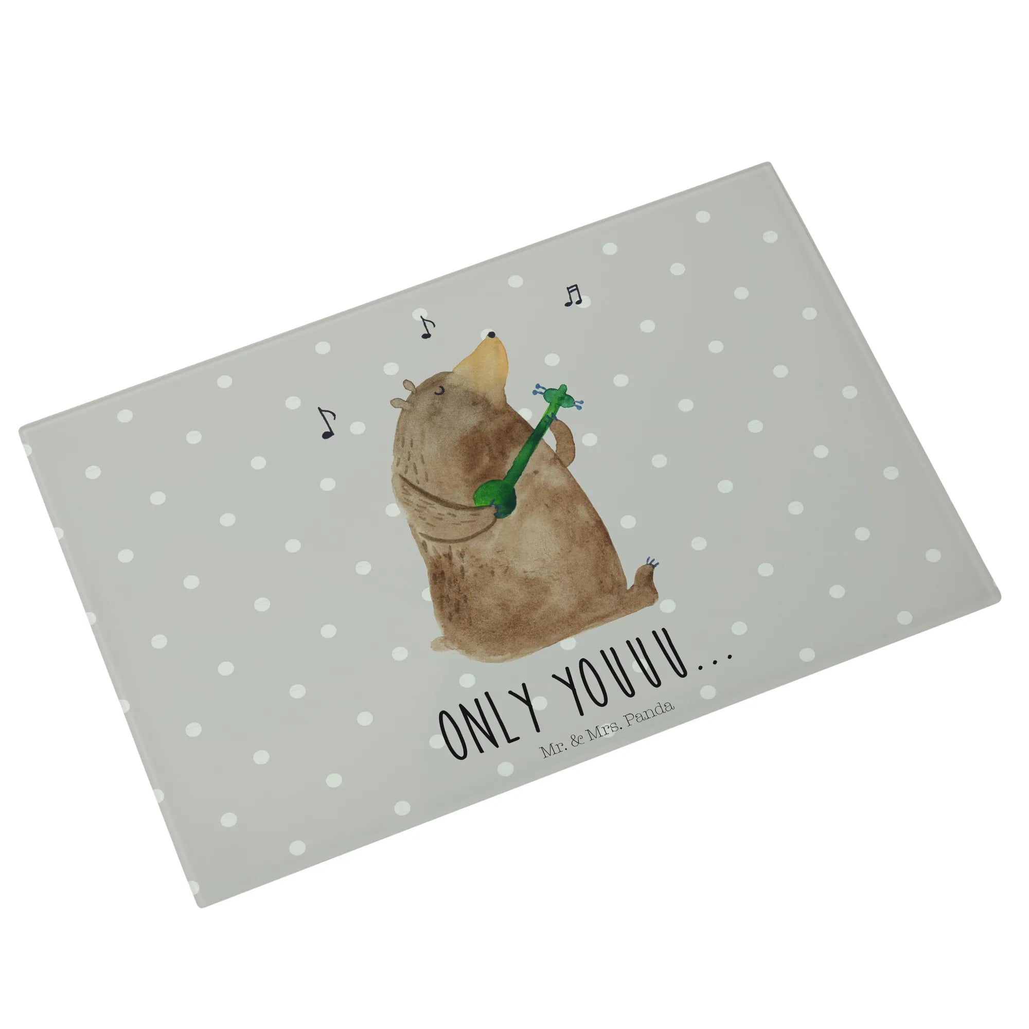 XL glass chopping board bear guitar - Medium Glass Cutting Board - with saying - Grey Pastel