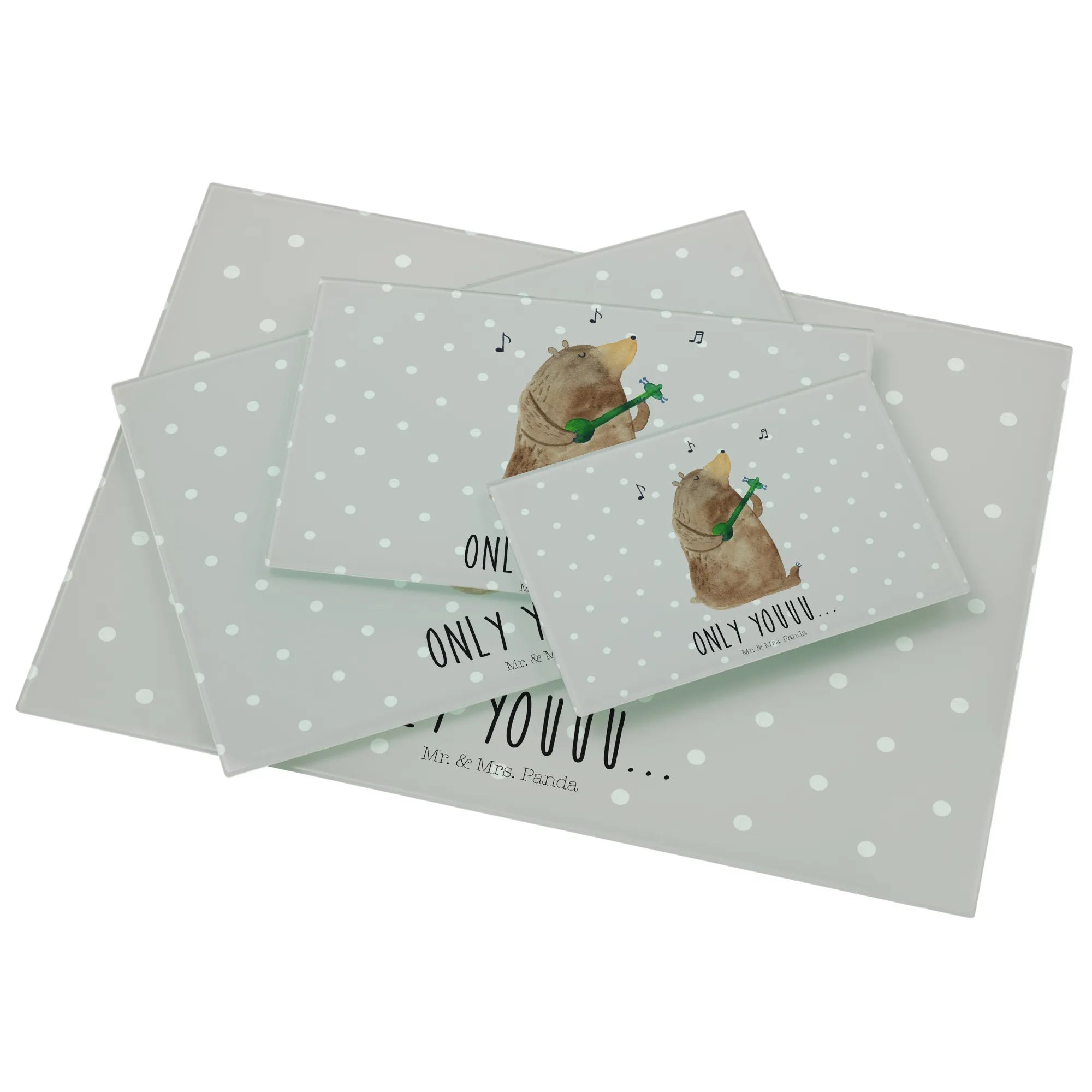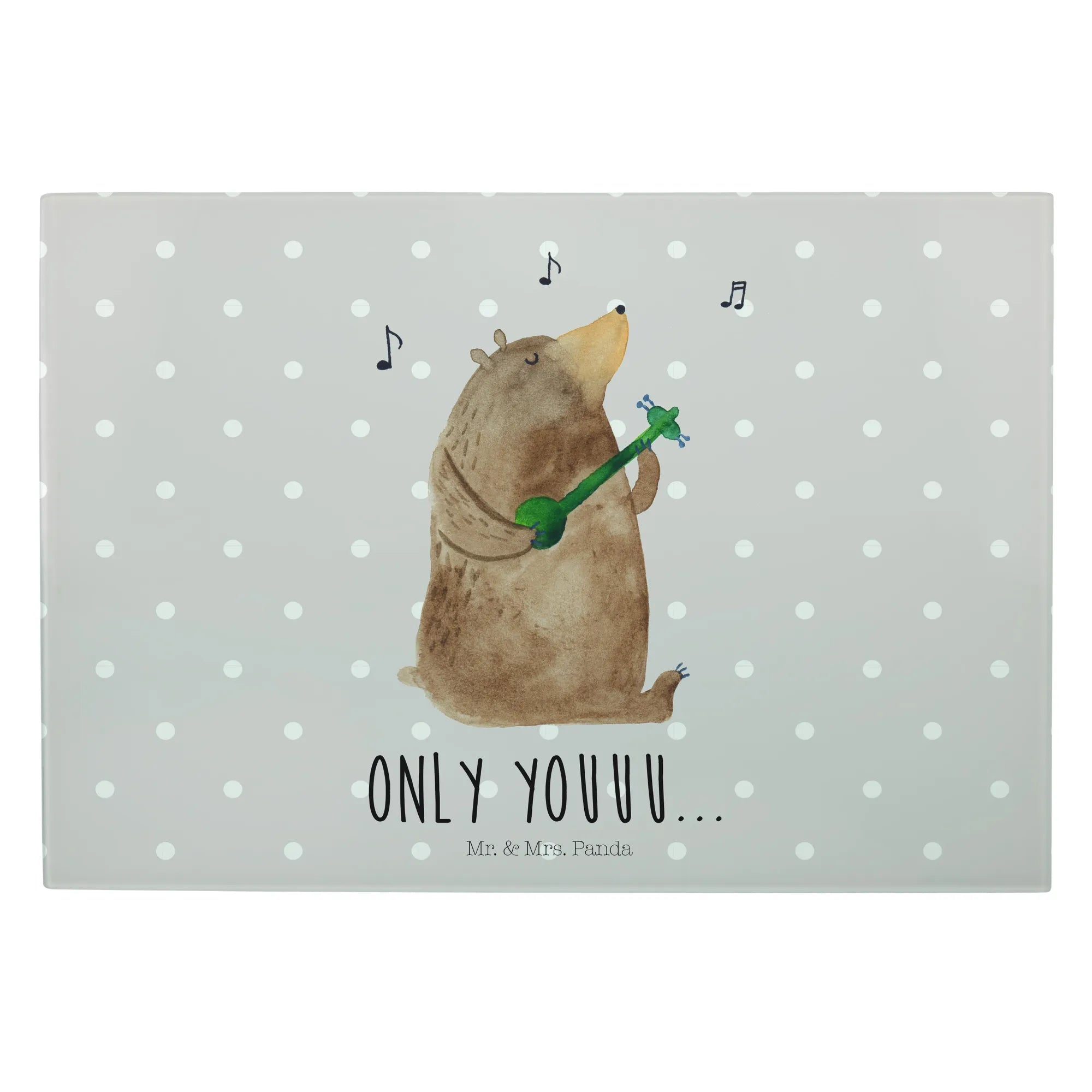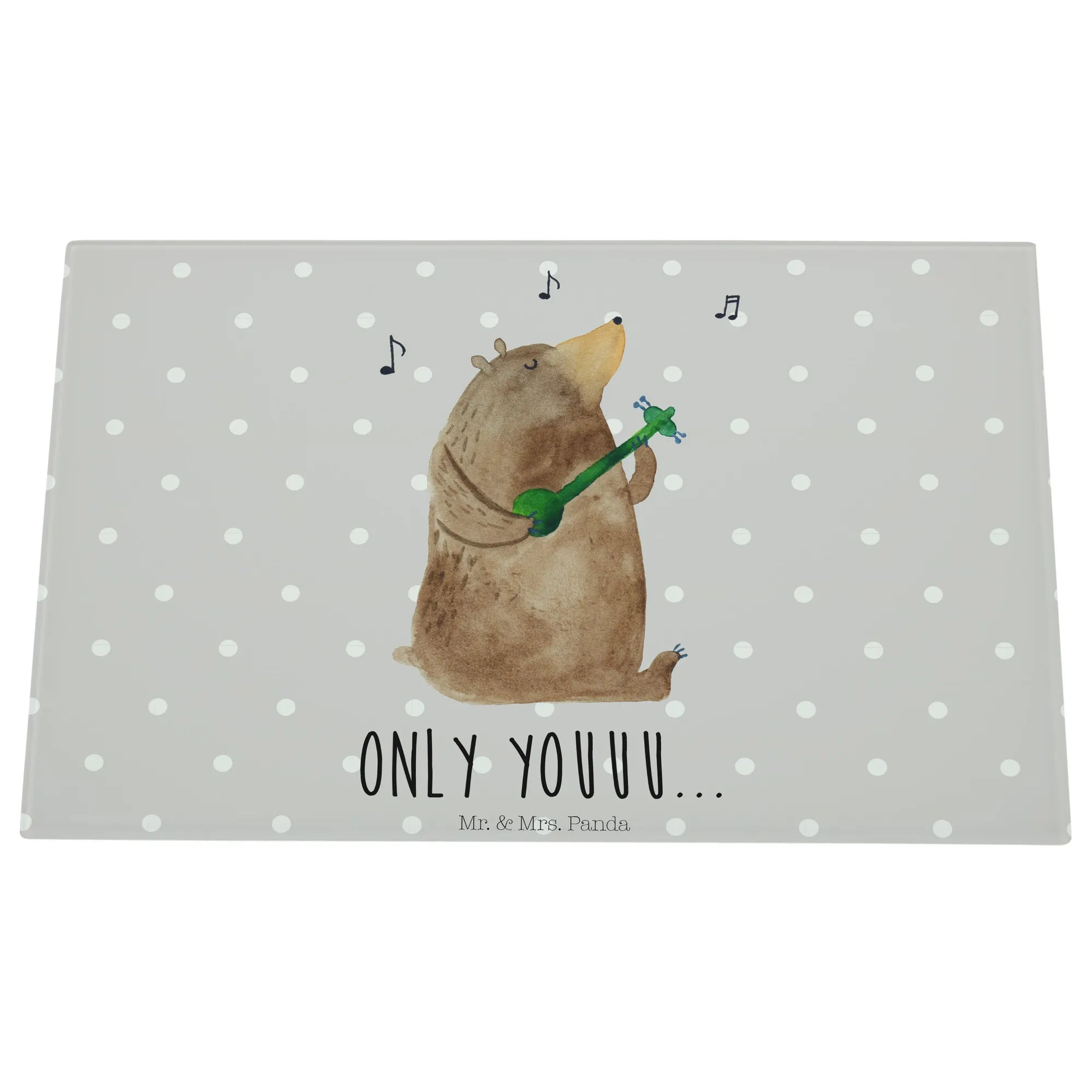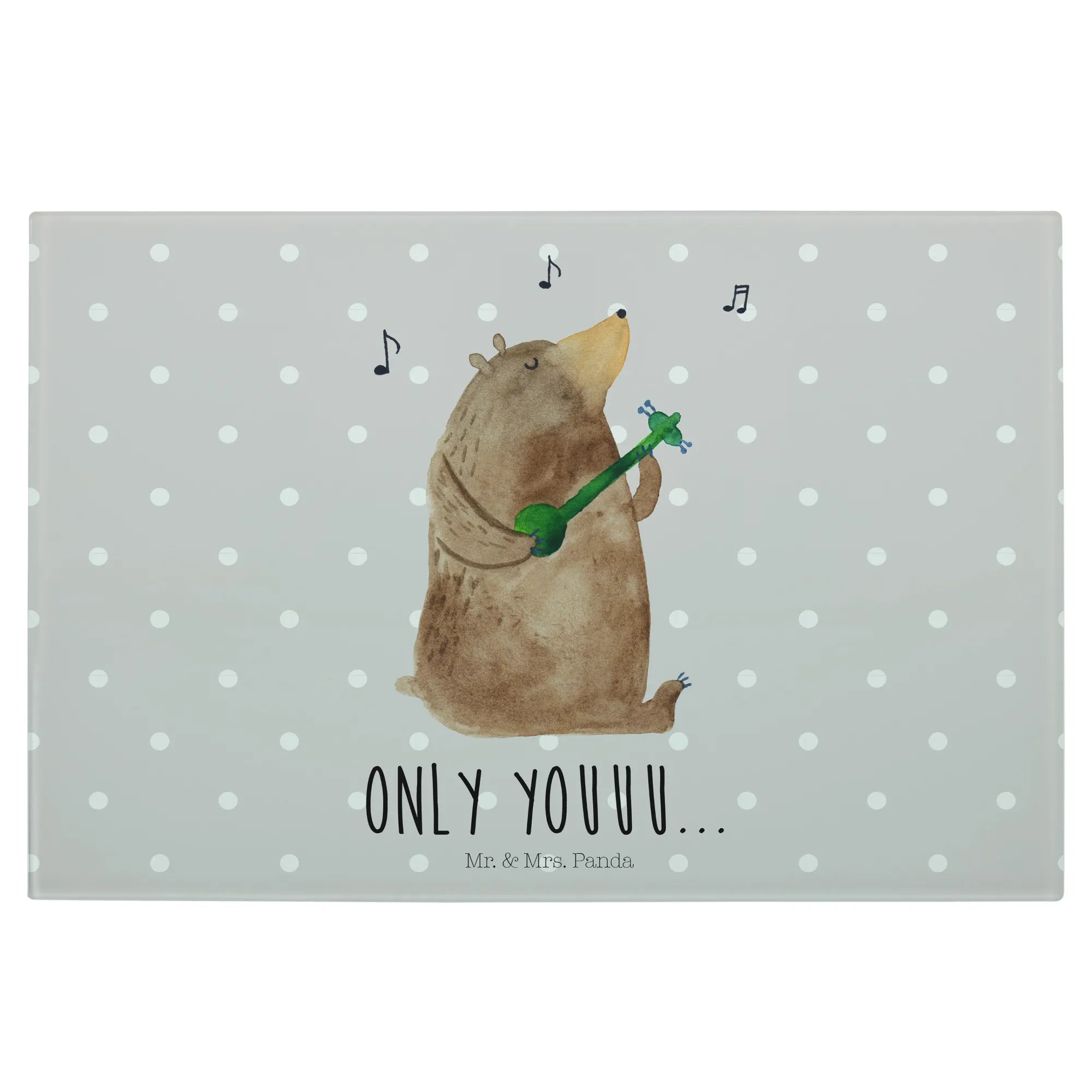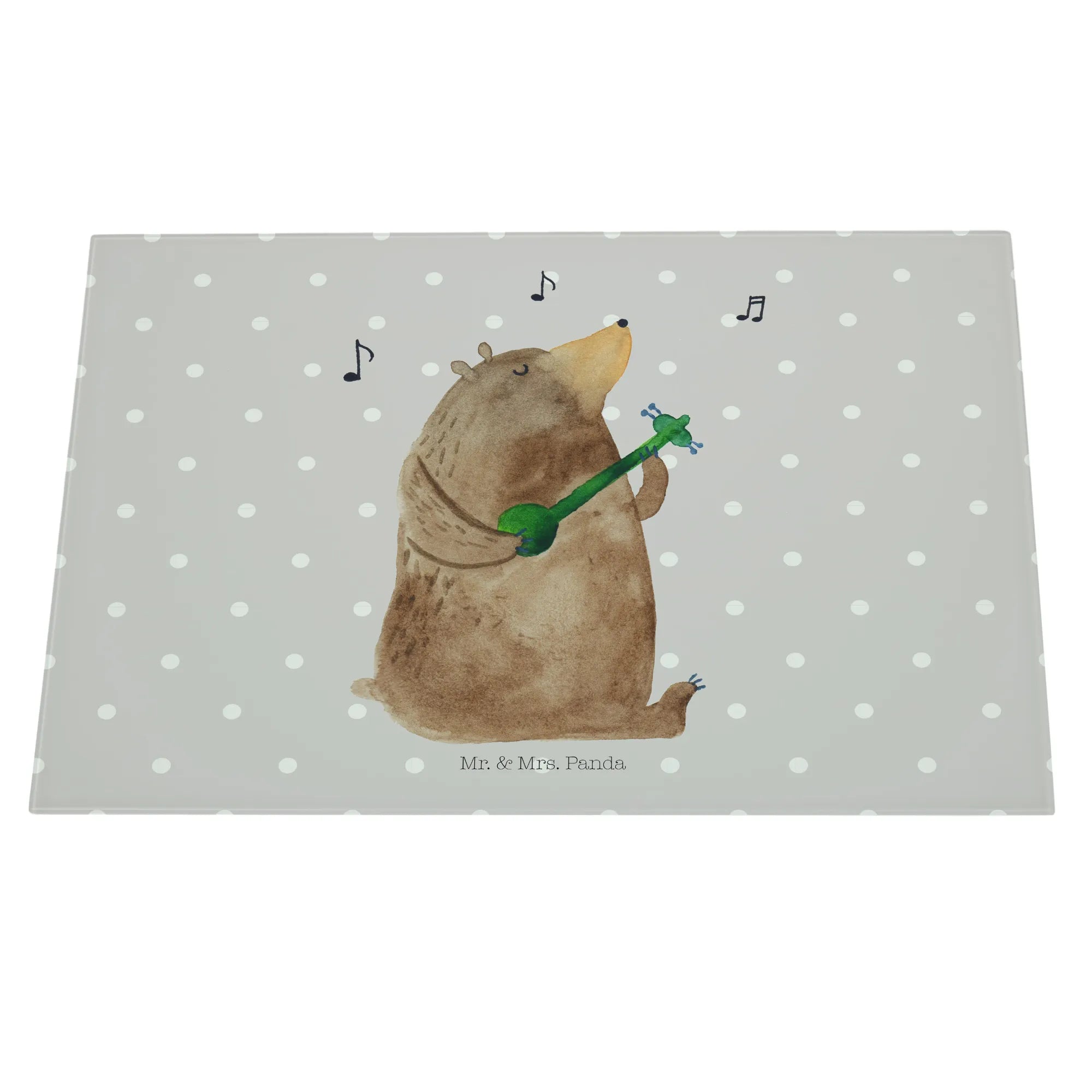 XL glass chopping board bear guitar - Medium Glass Cutting Board - with saying - Grey Pastel