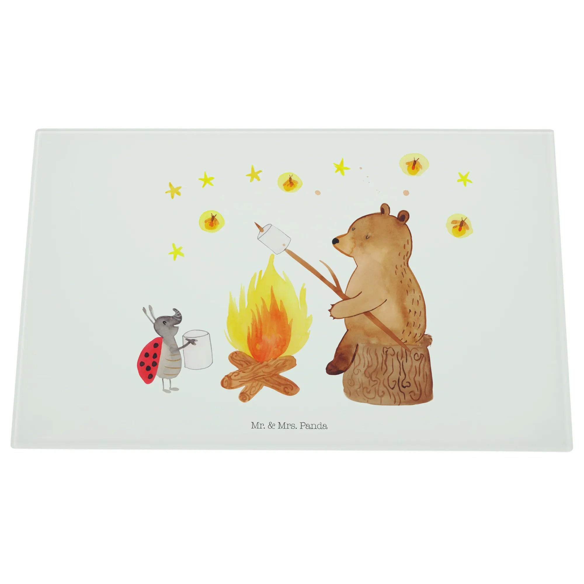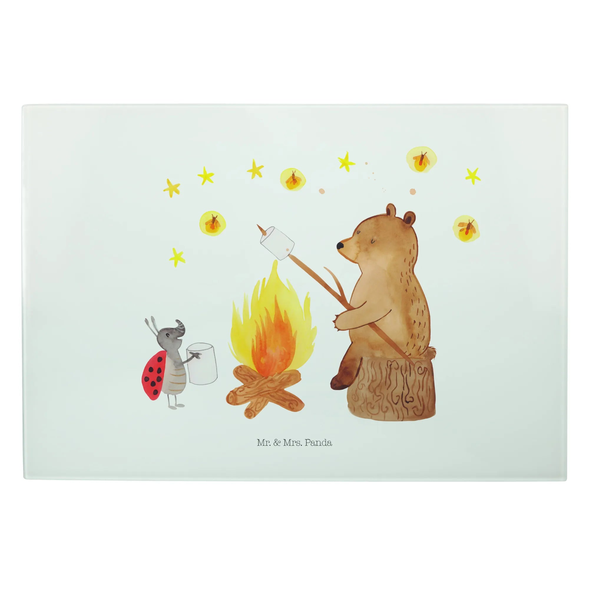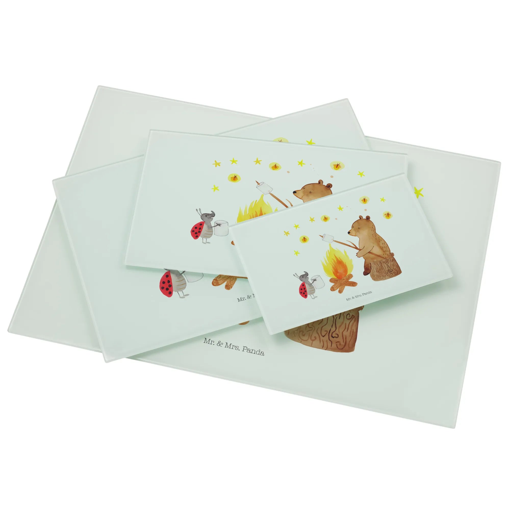XL glass chopping board Bear & Ladybird campfire - Medium Glass Cutting Board - with a saying