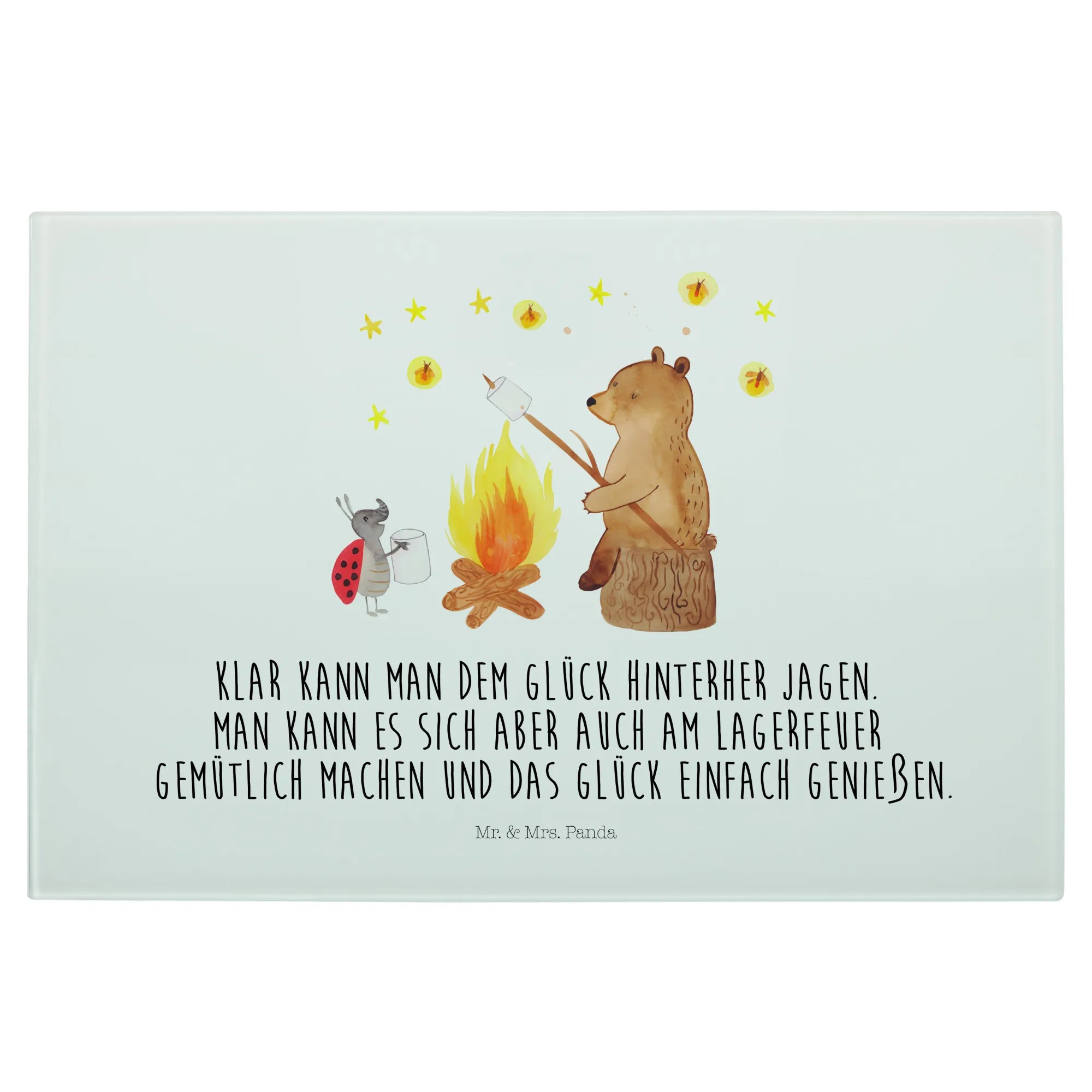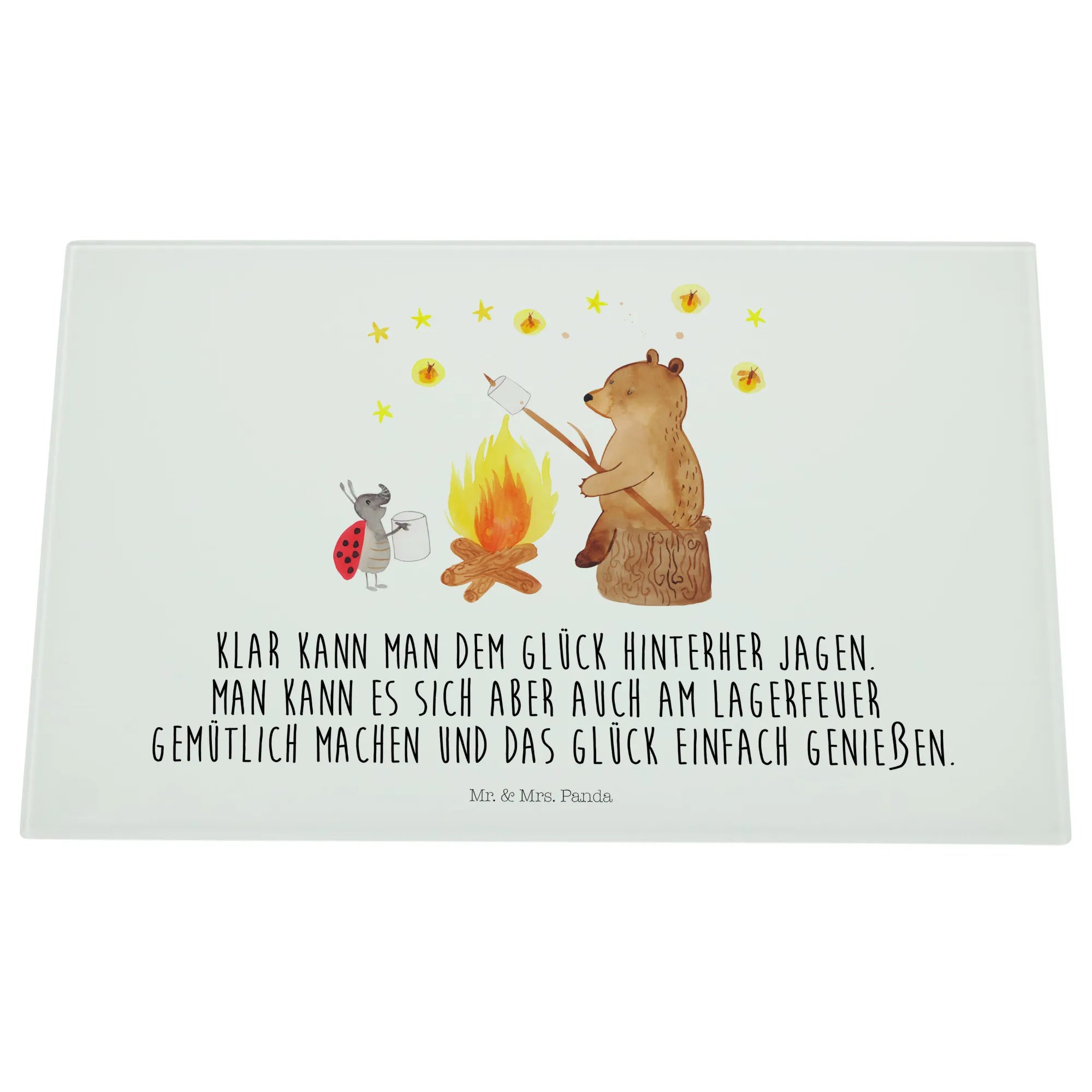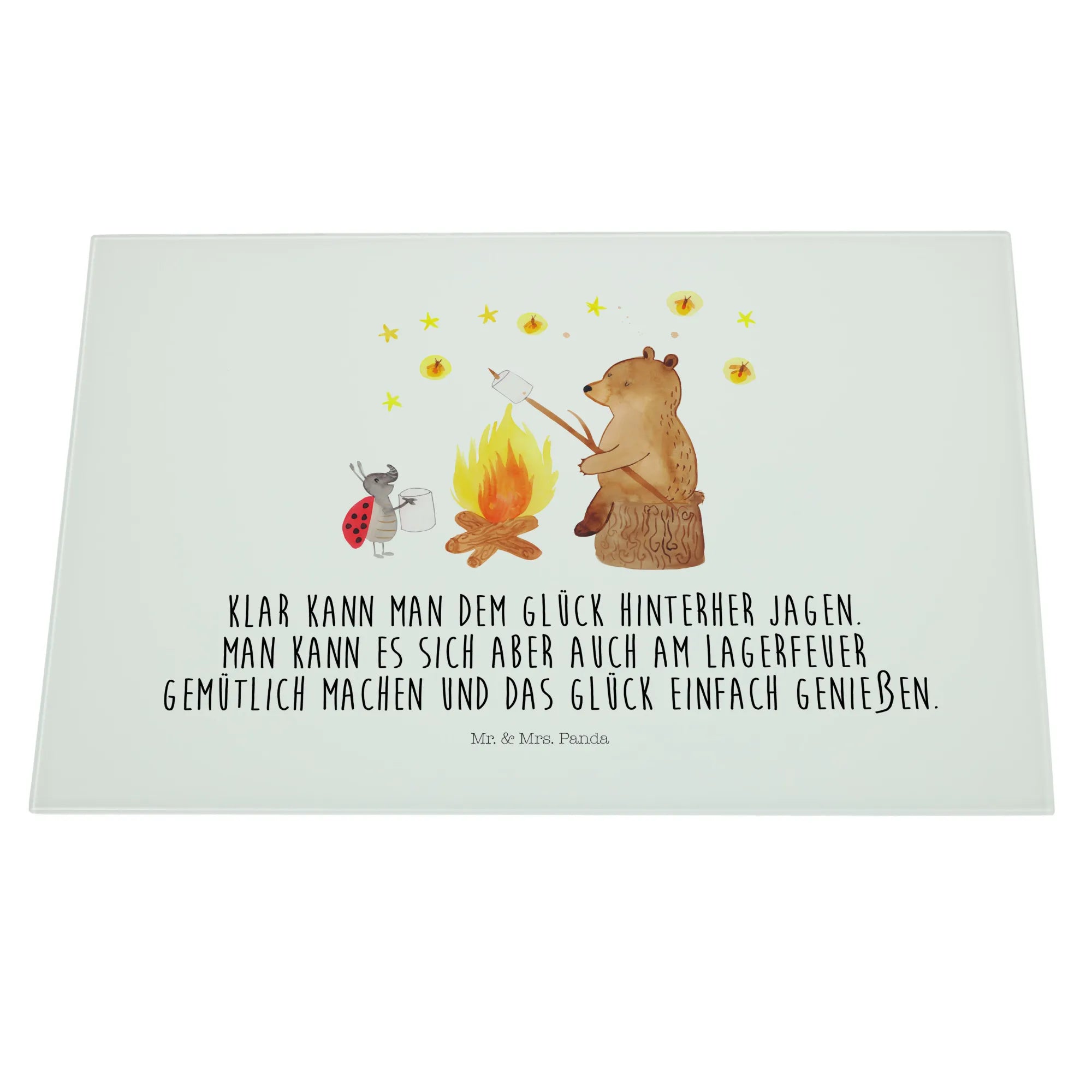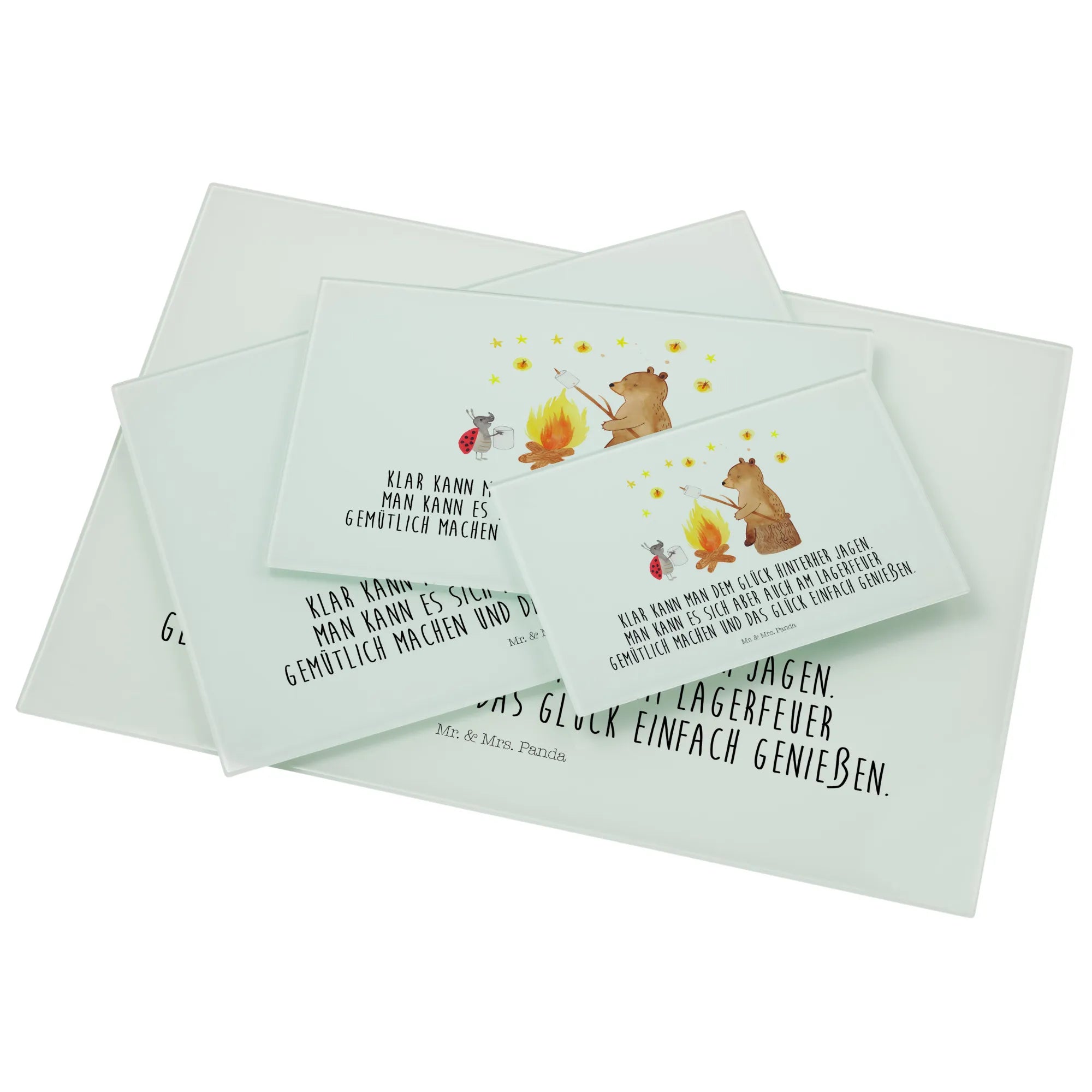 XL glass chopping board Bear & Ladybird campfire - Medium Glass Cutting Board - with a saying