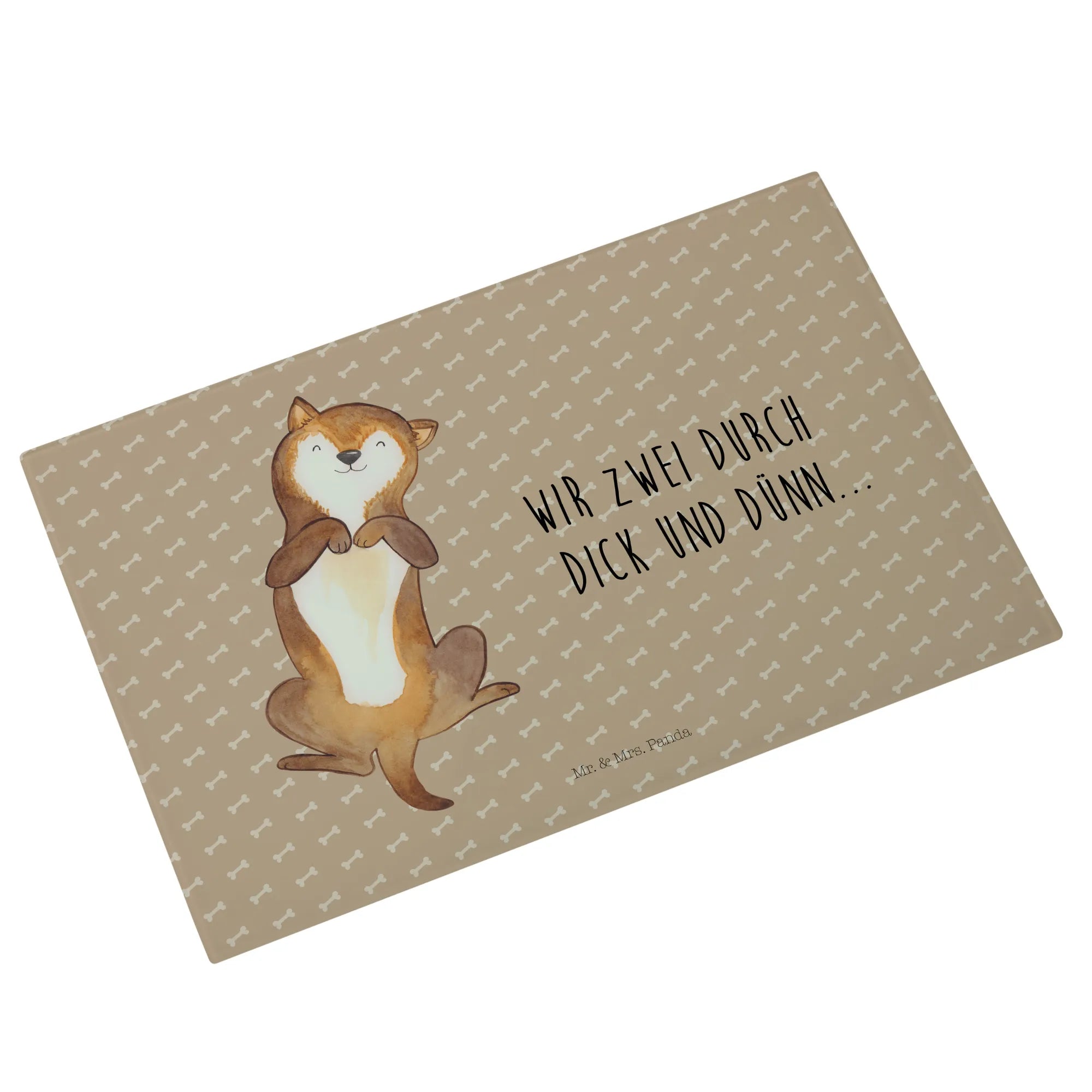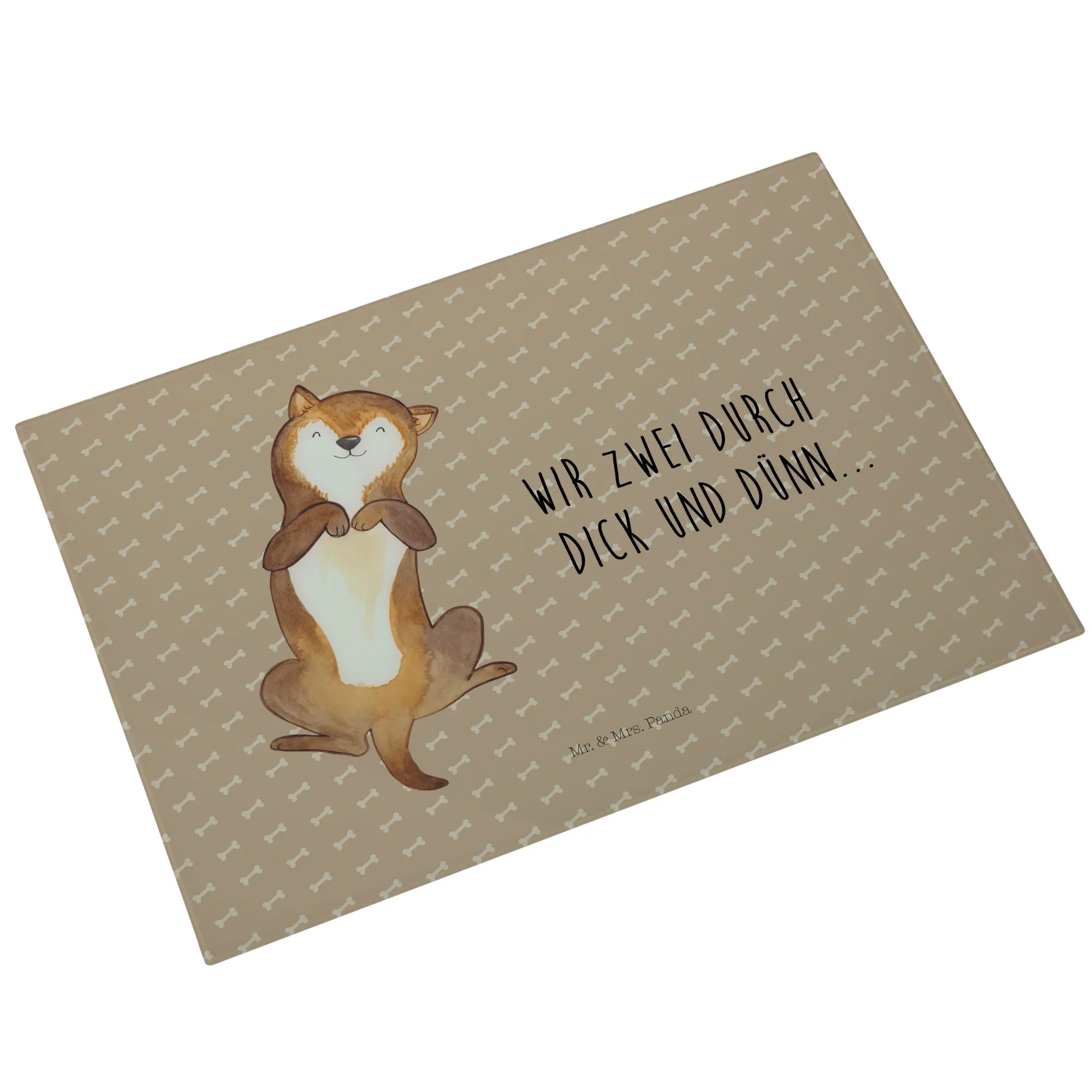 XL glass chopping board Dog Stroke - Medium Glass Cutting Board - with saying - White
