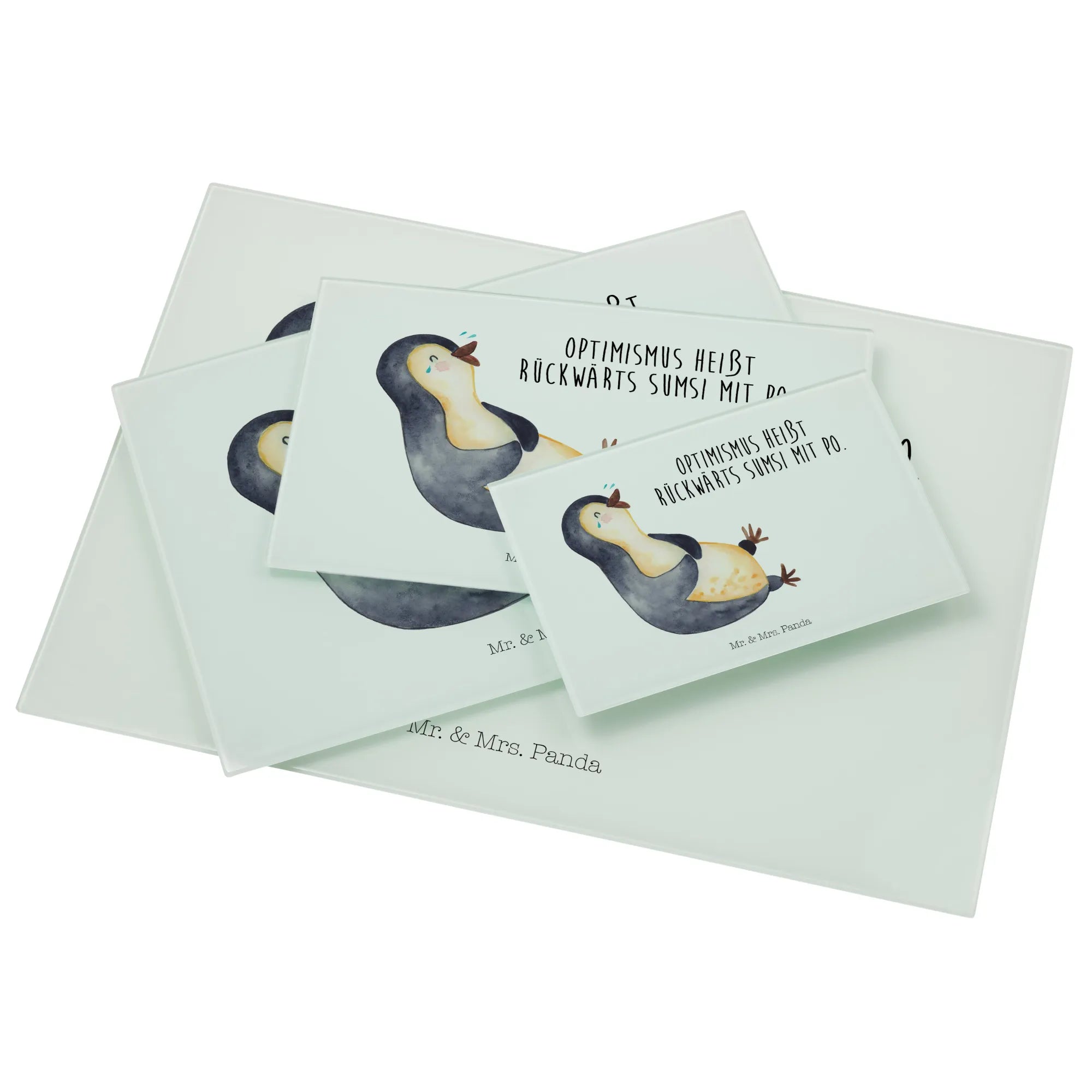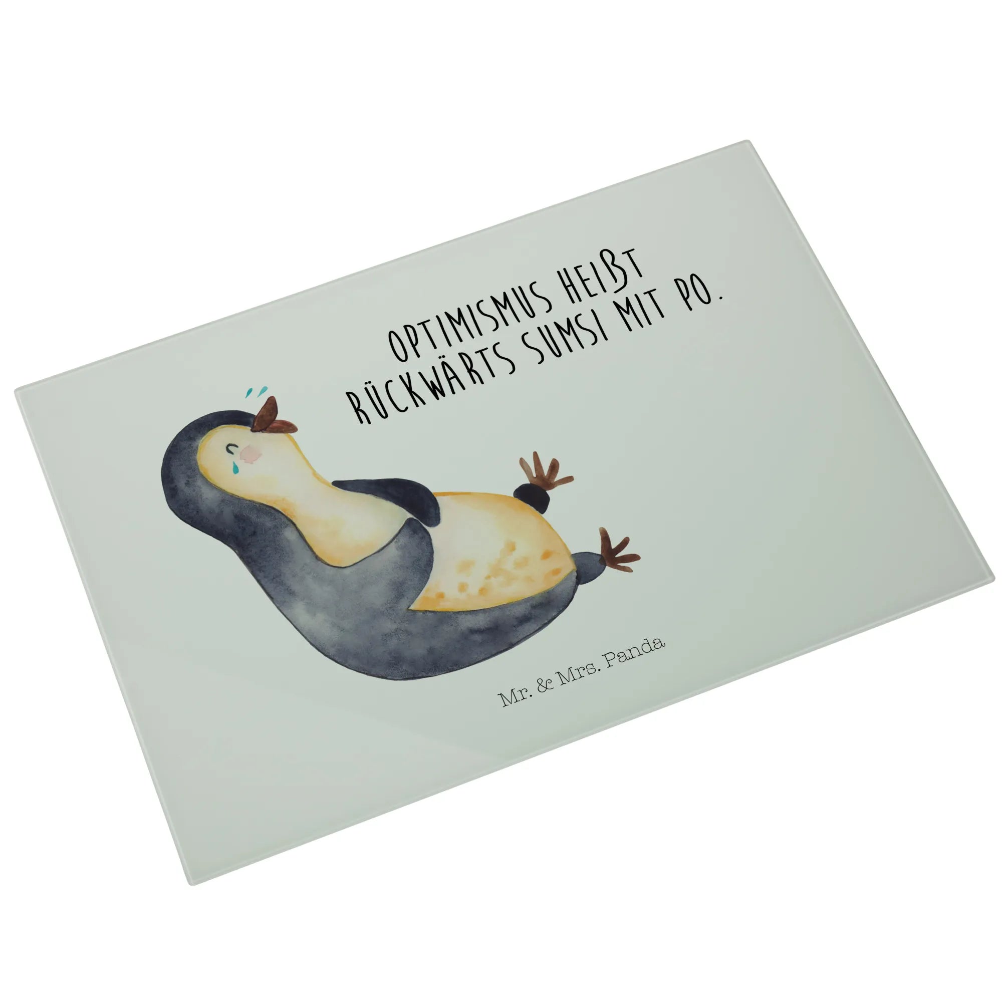 XL glass chopping board Penguin Laugh - Medium Glas Schneidbrett - with saying - White
