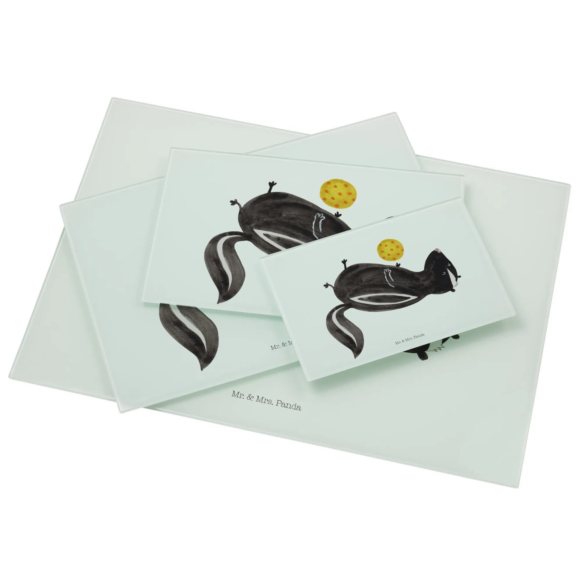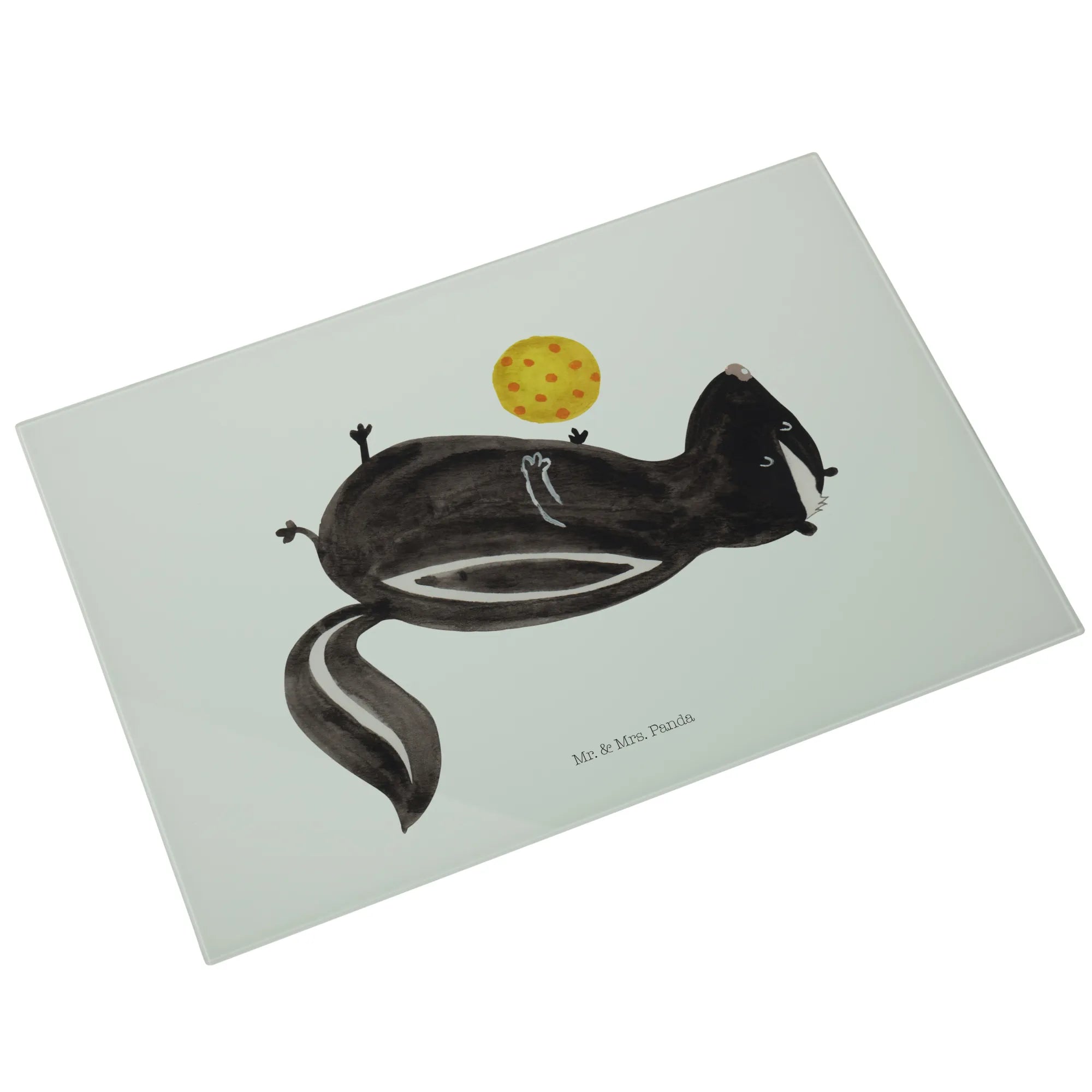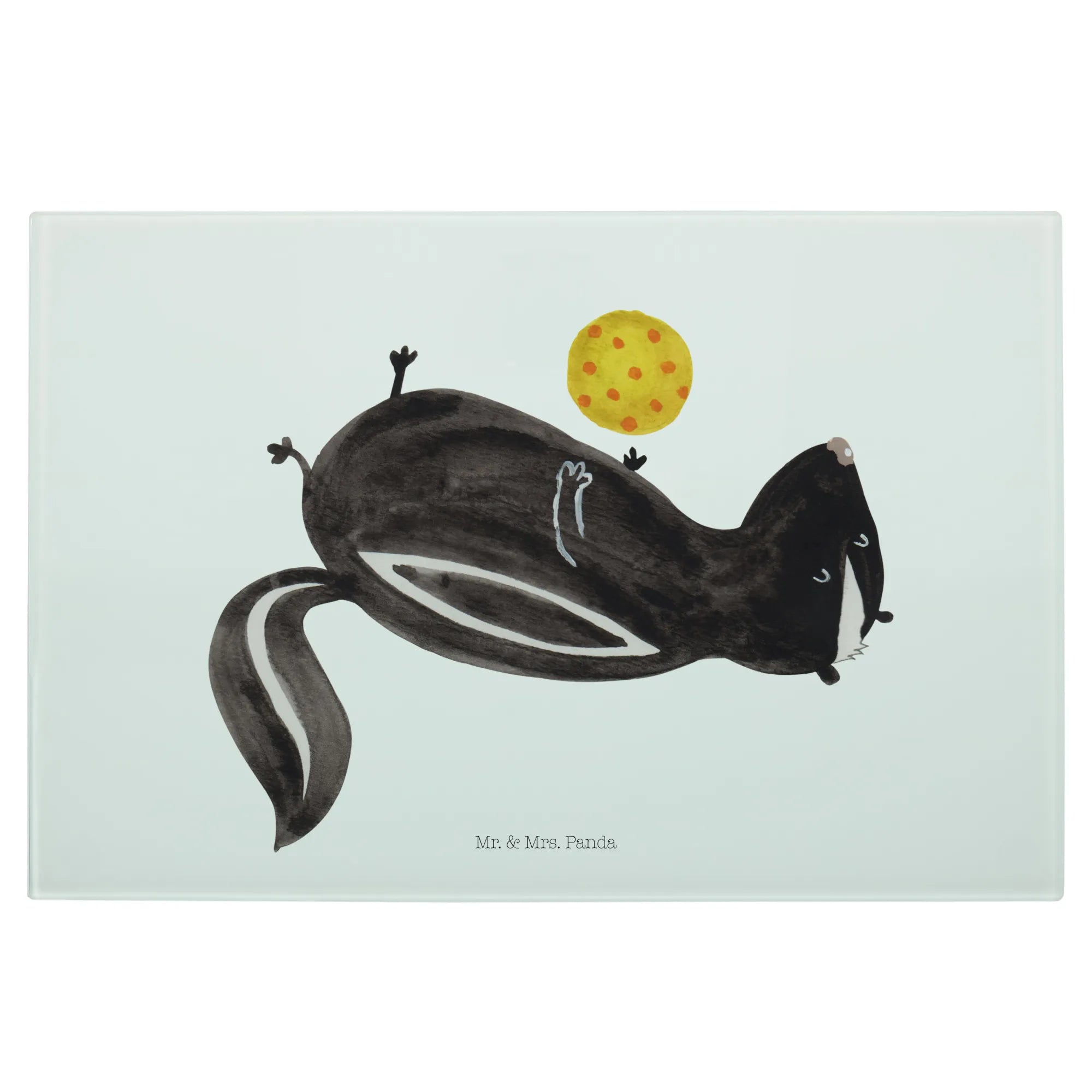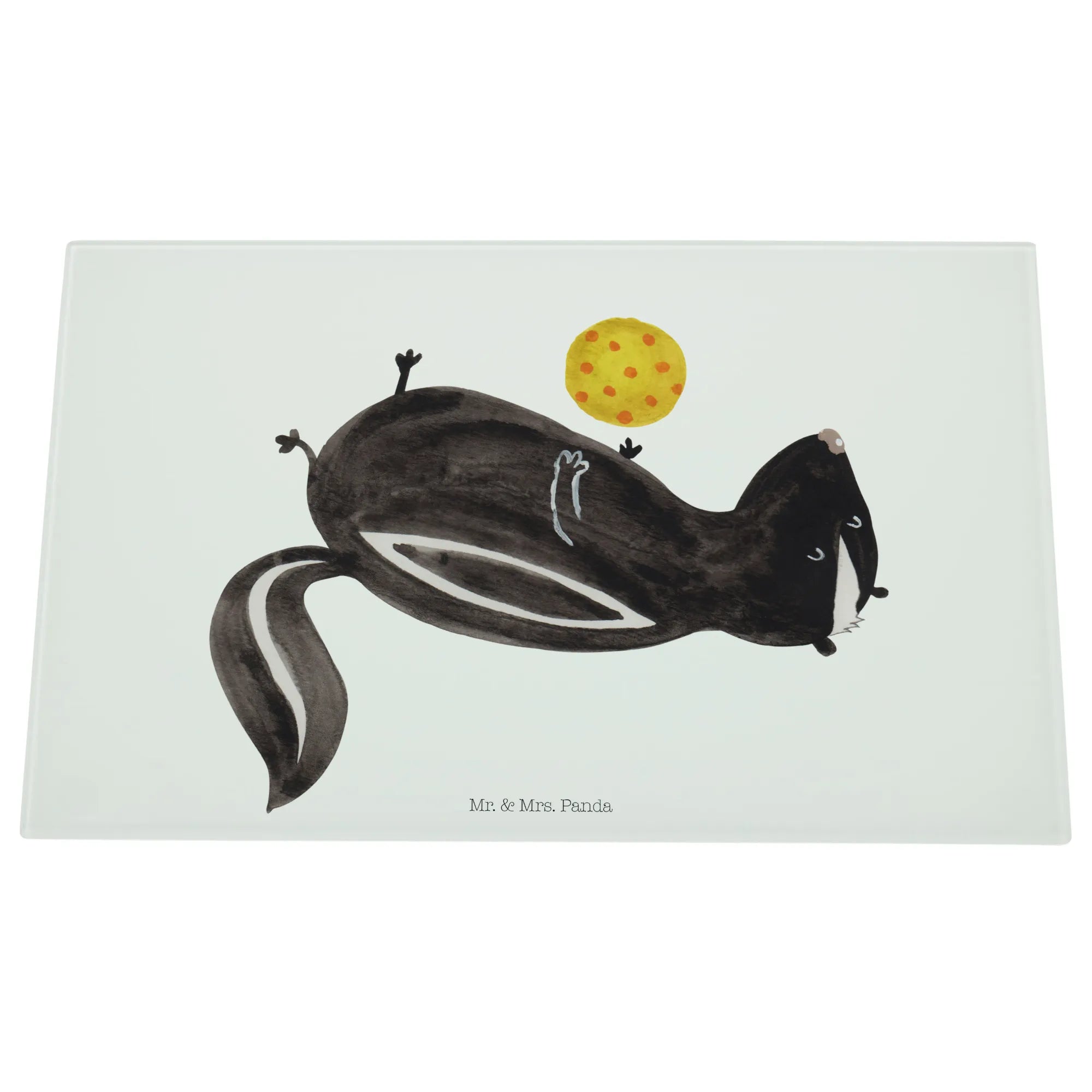 Introducing the delightful Glass Chopping Board featuring the cheerful Skunk Ball motif from the charming Skunk Collection by Mr. & Mrs. Panda!