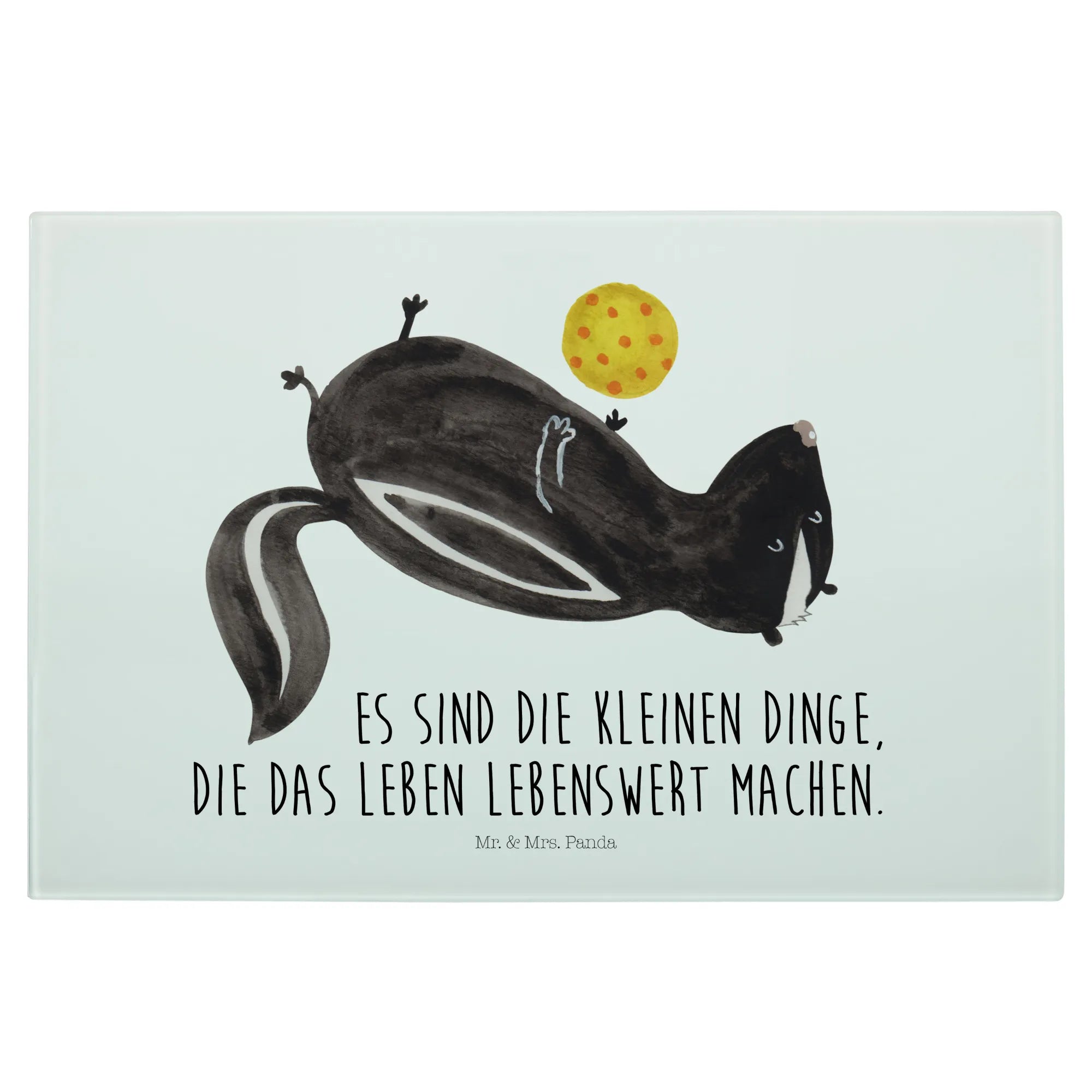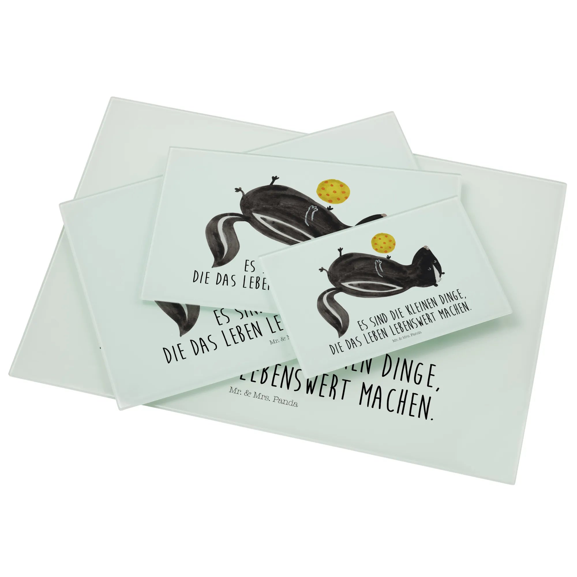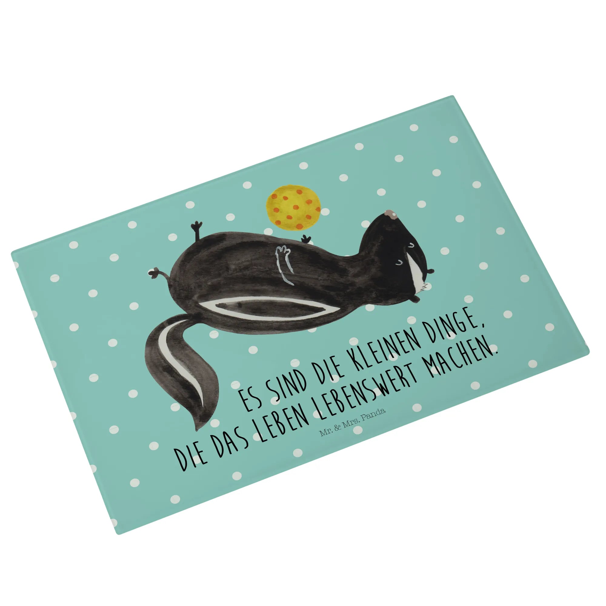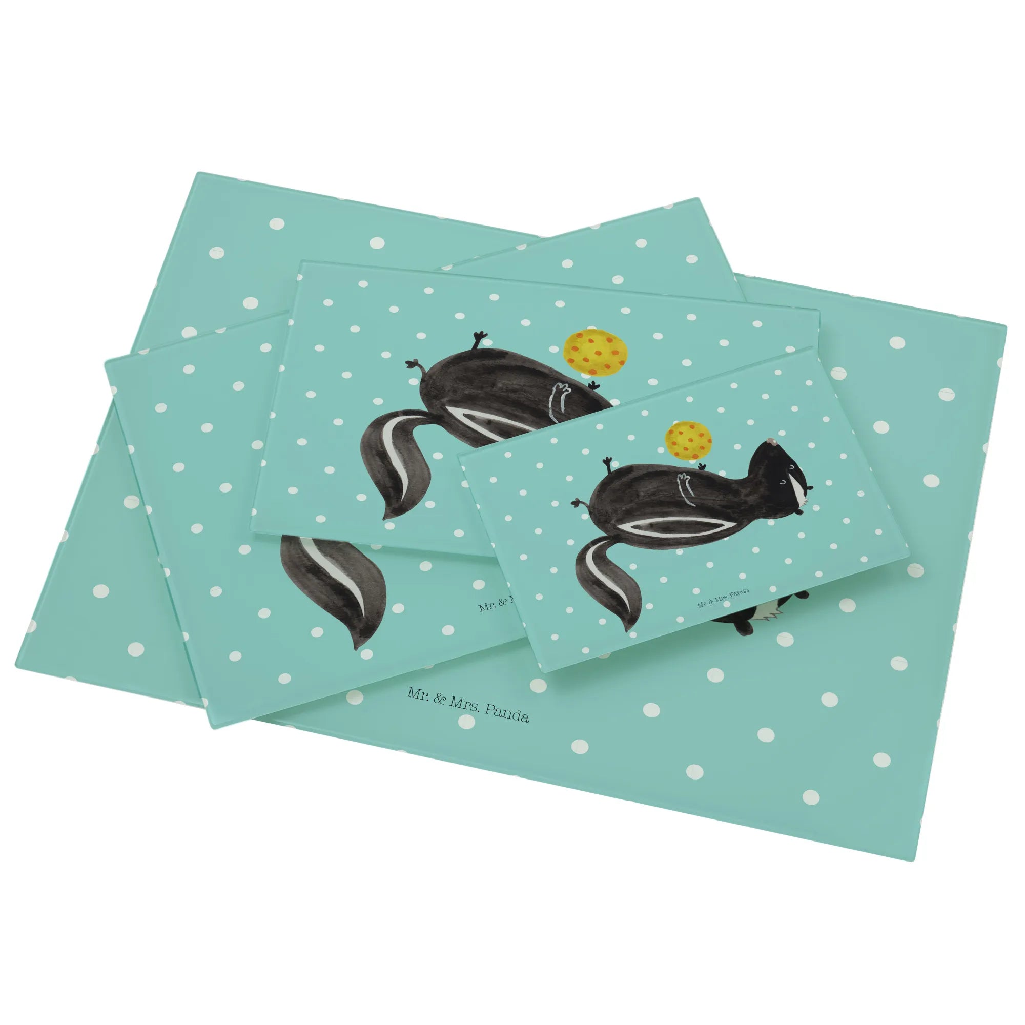 Introducing the delightful Glass Chopping Board featuring the cheerful Skunk Ball motif from the charming Skunk Collection by Mr. & Mrs. Panda!
