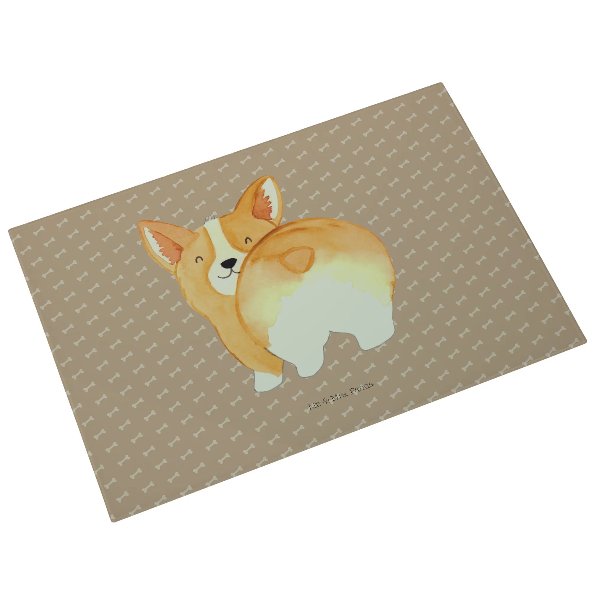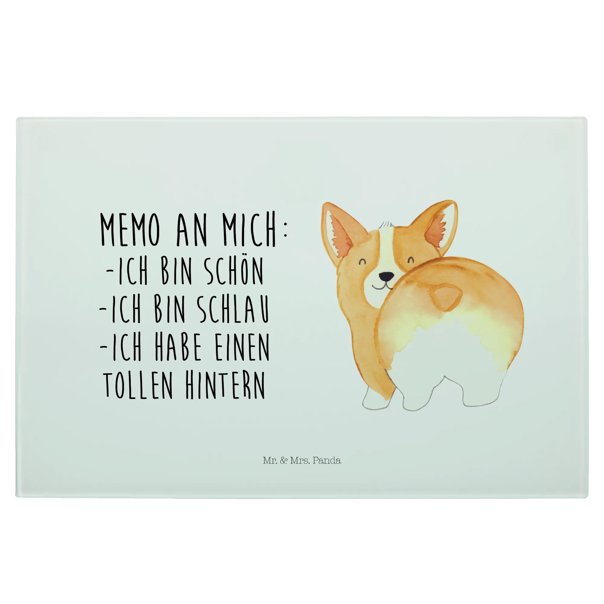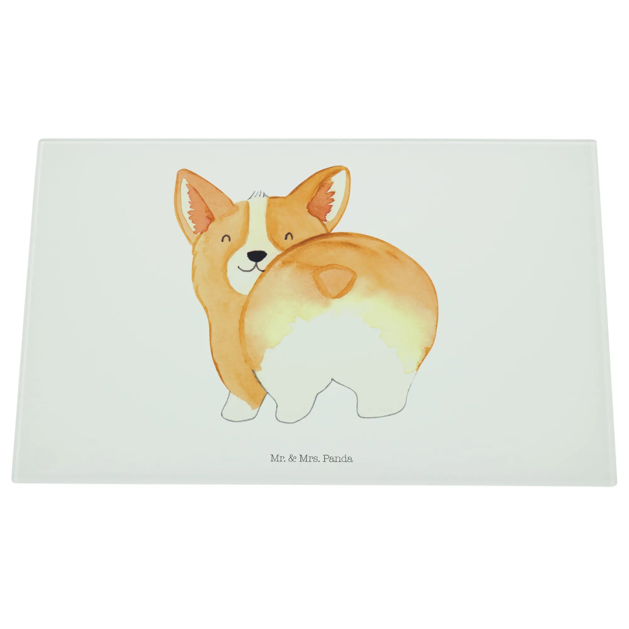Glass chopping board corgi buttocks - Medium Glas Schneidbrett - with saying - White