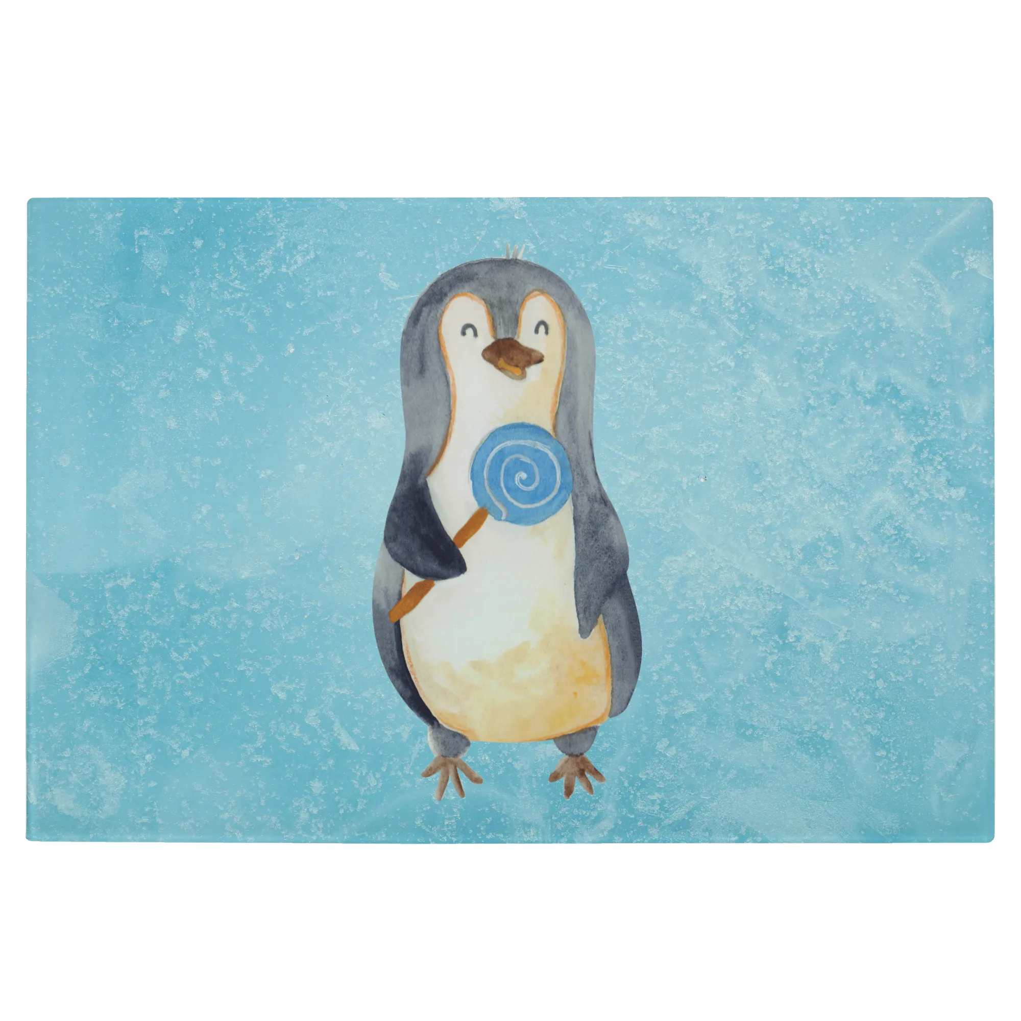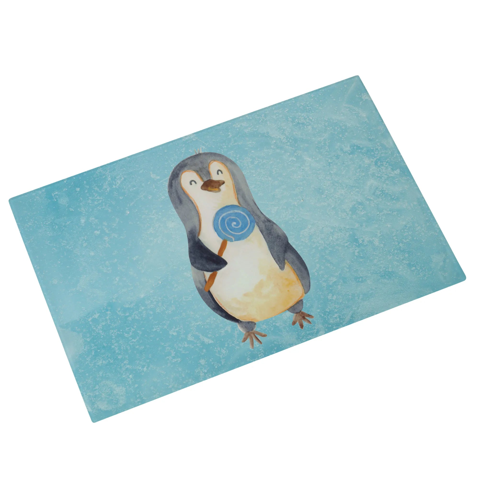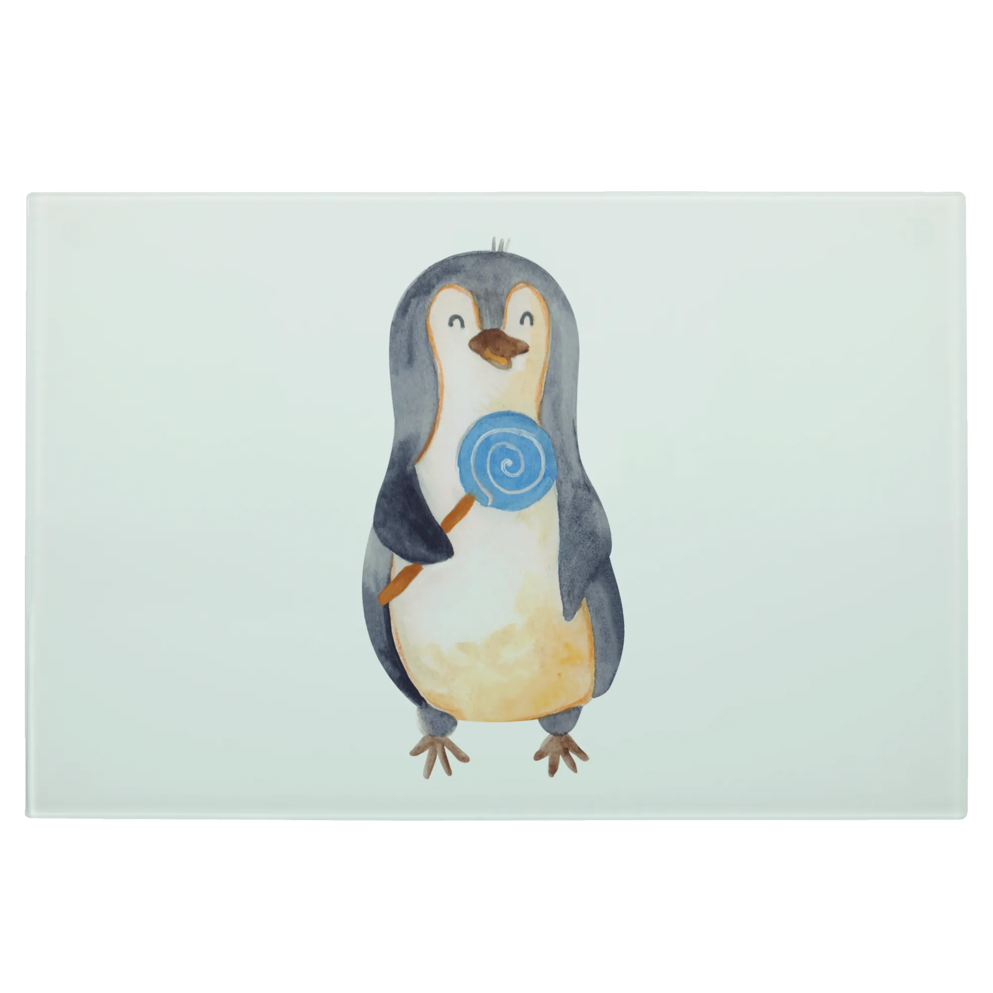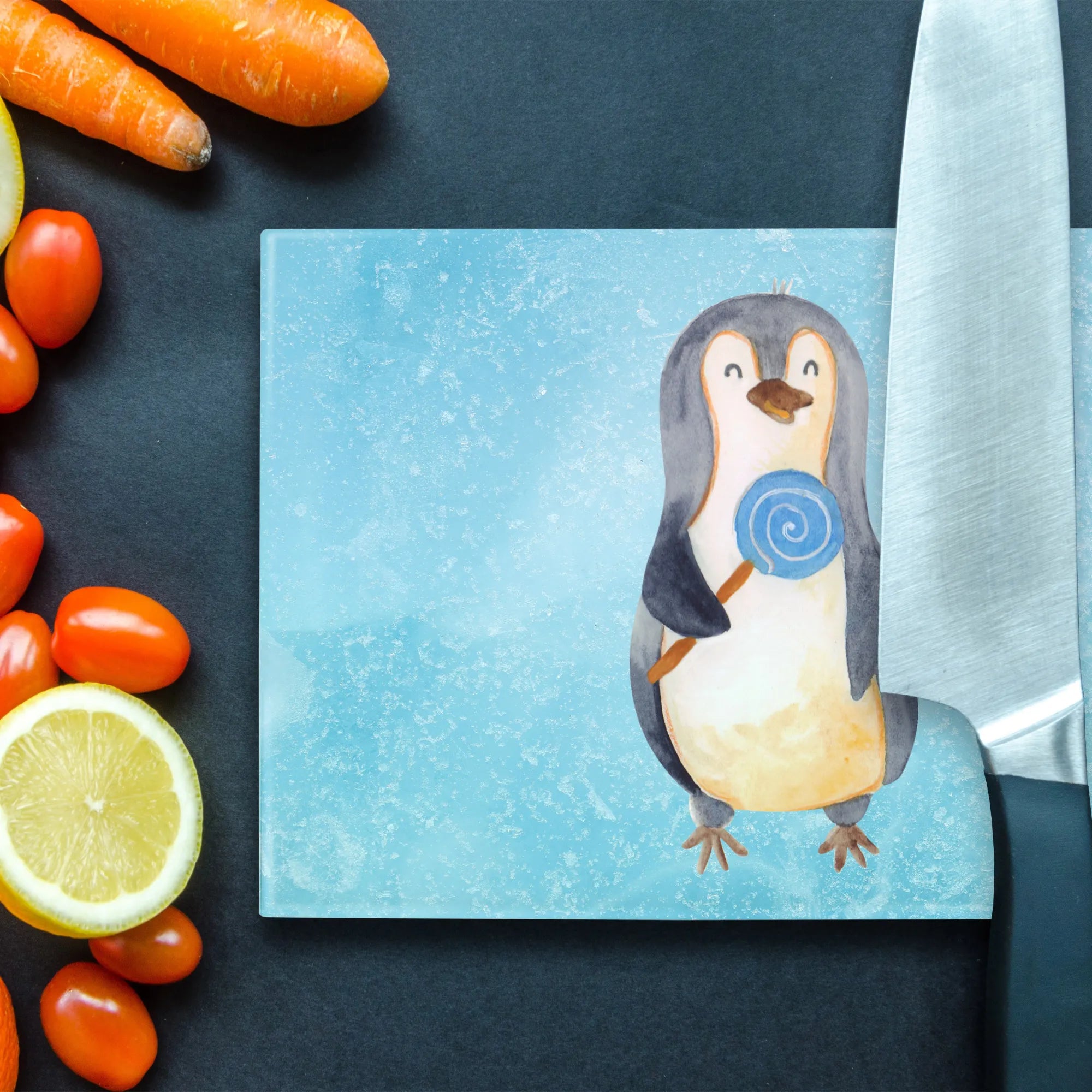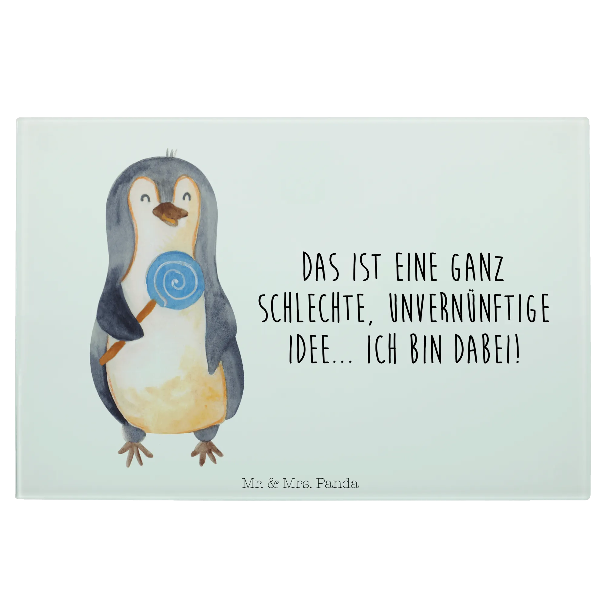 Glass chopping board Penguin lollipop - Medium Glas Schneidbrett - with saying - White