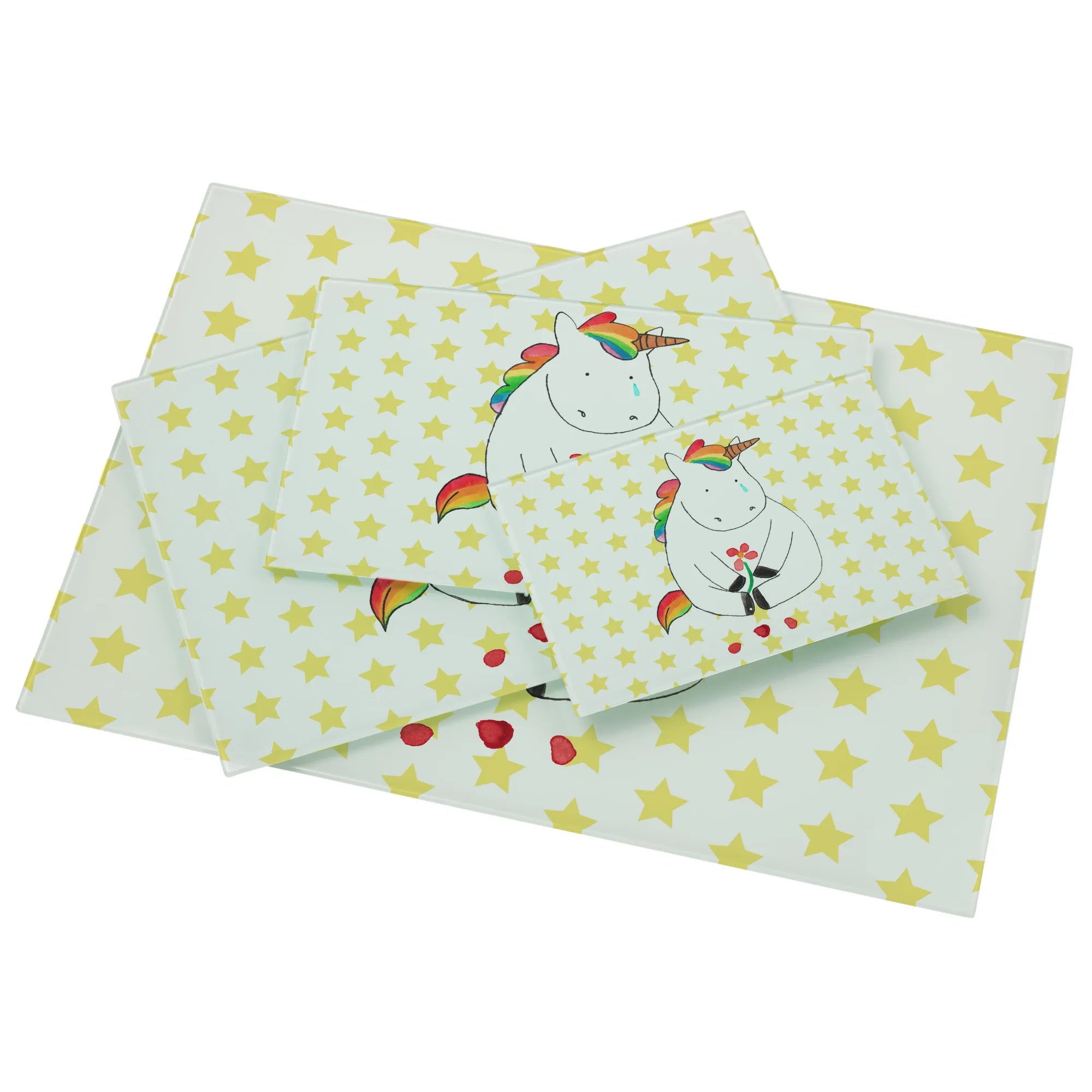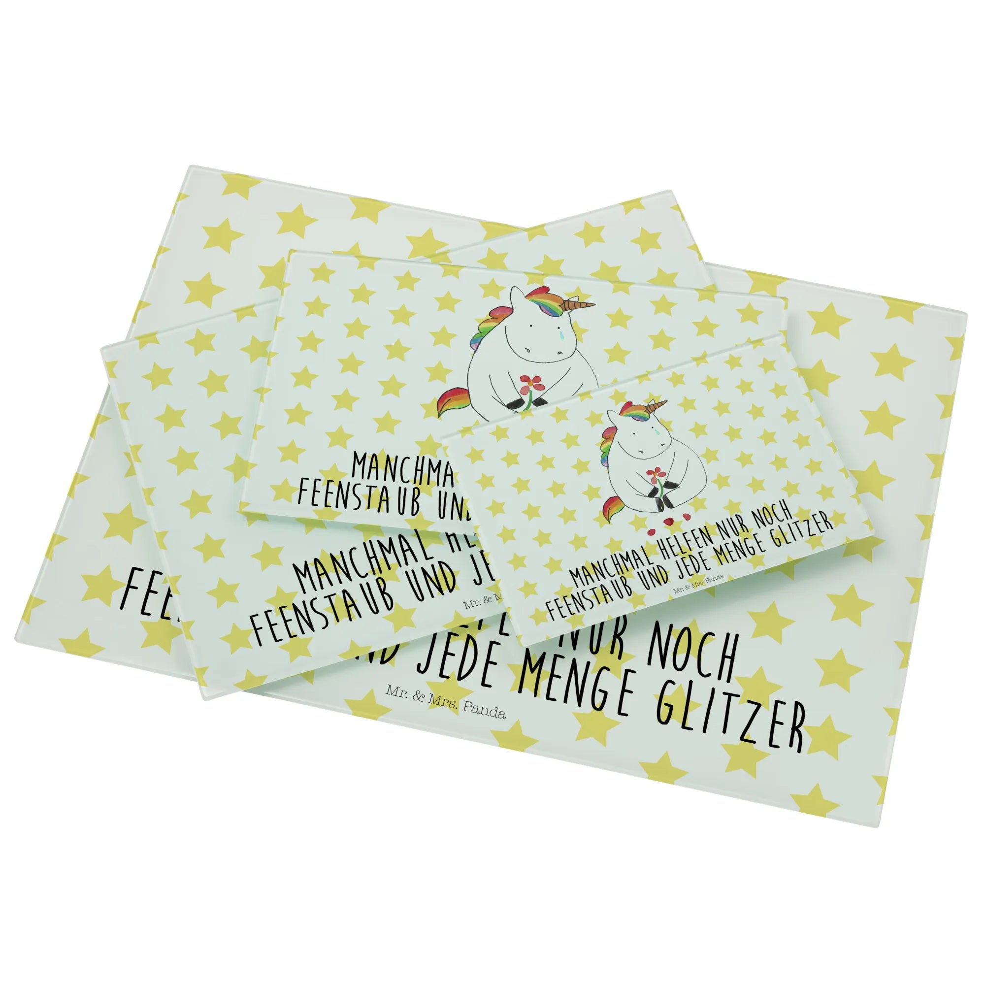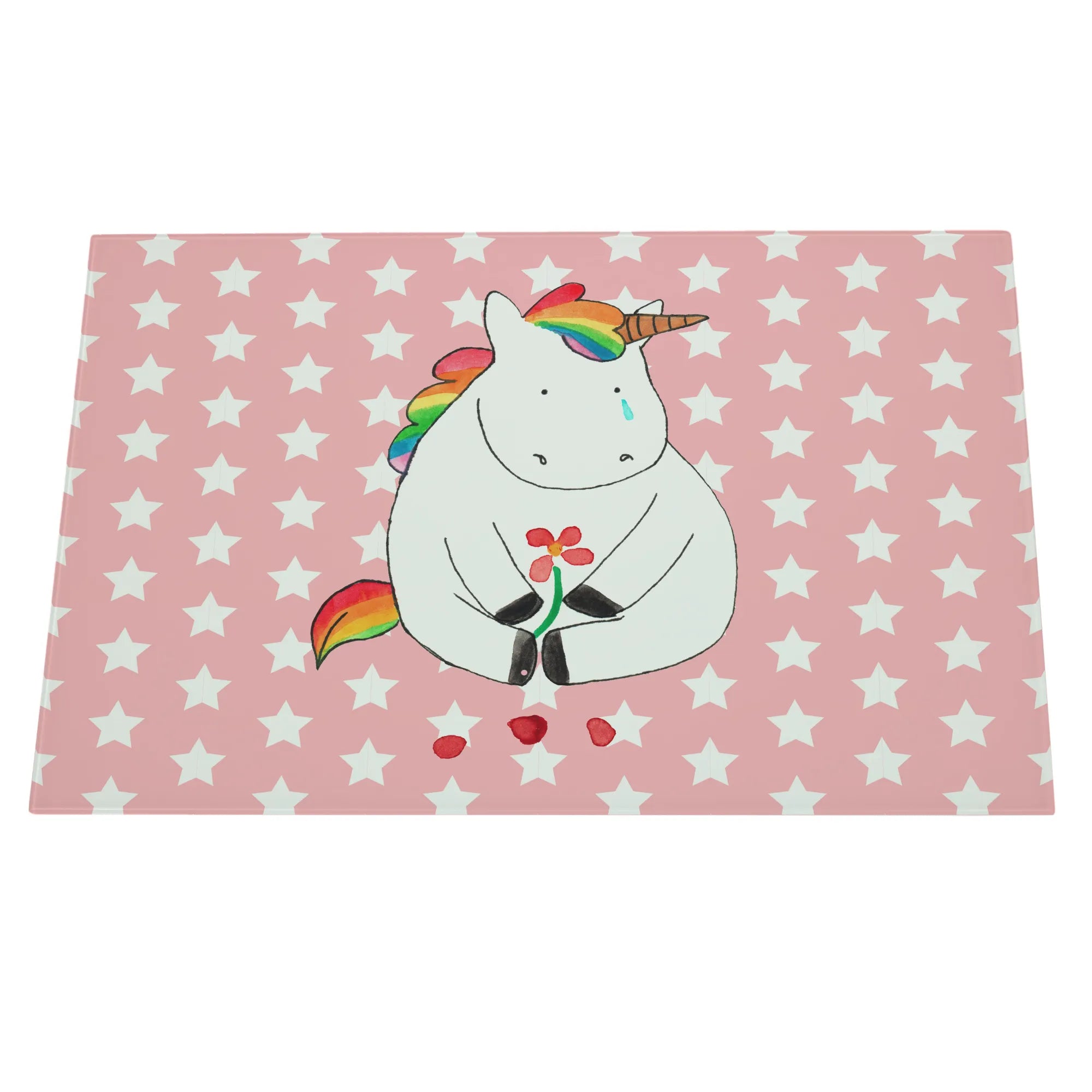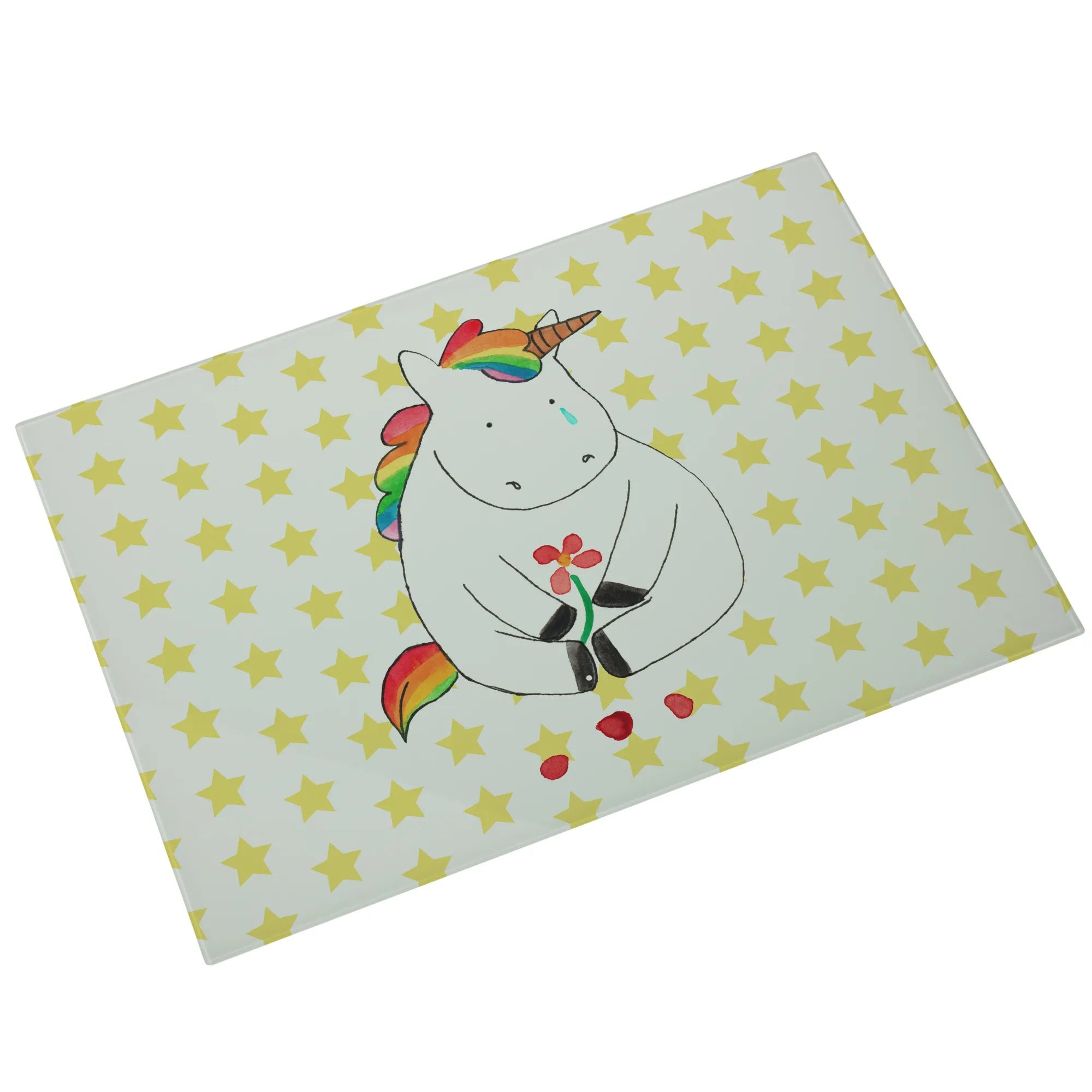 Glass chopping board unicorn Sad - Medium Glas Schneidbrett - with saying - White
