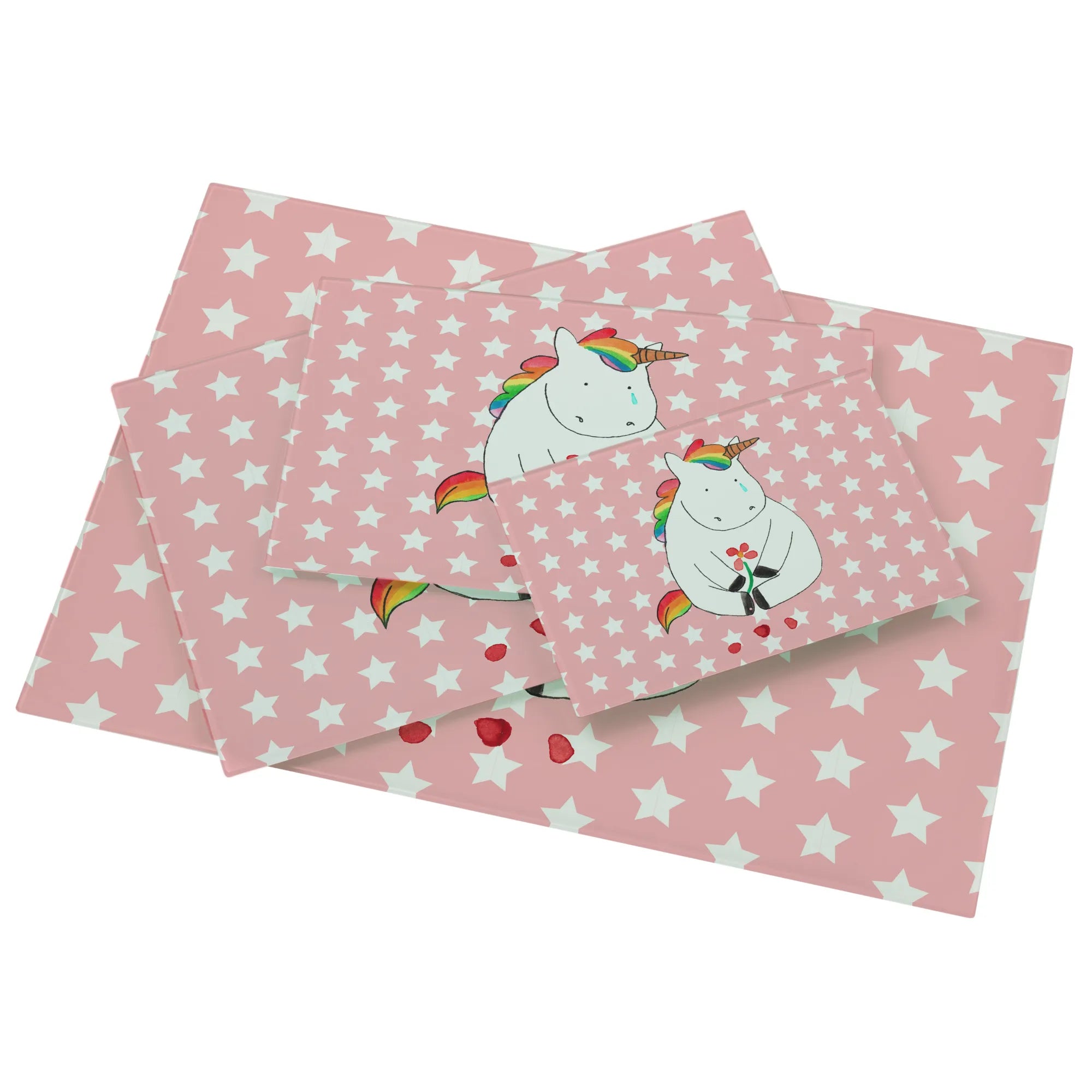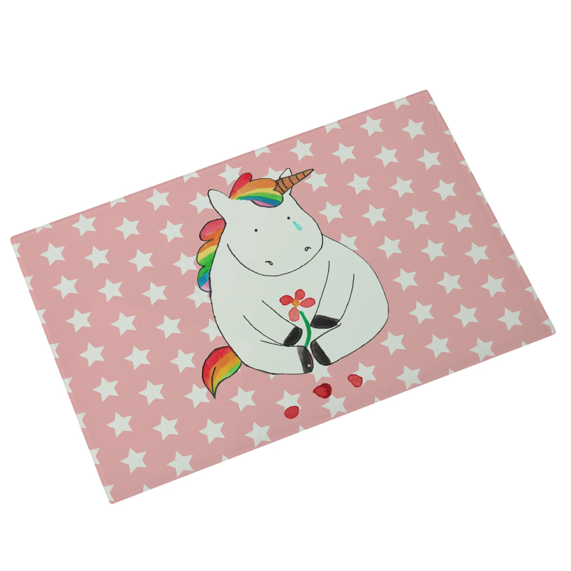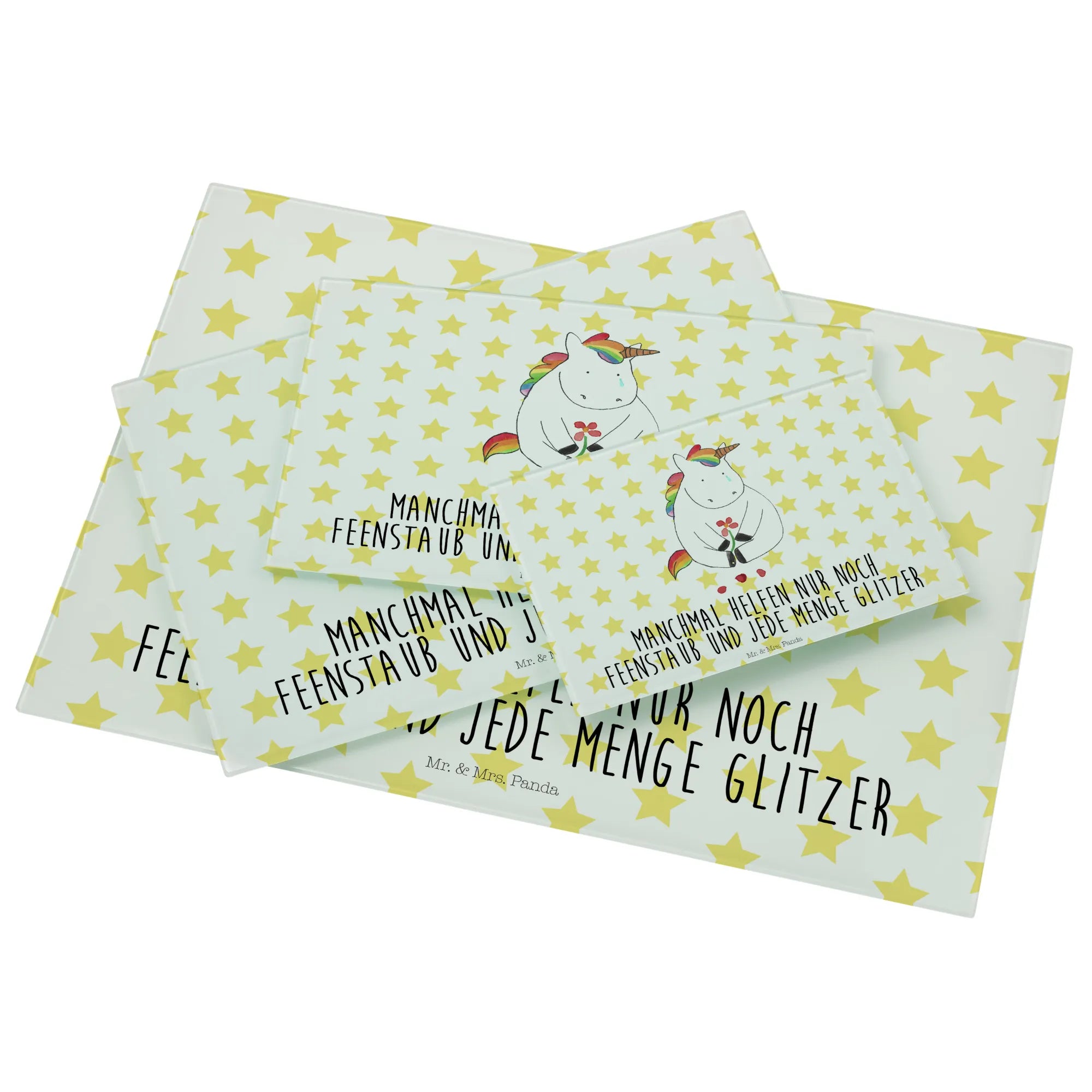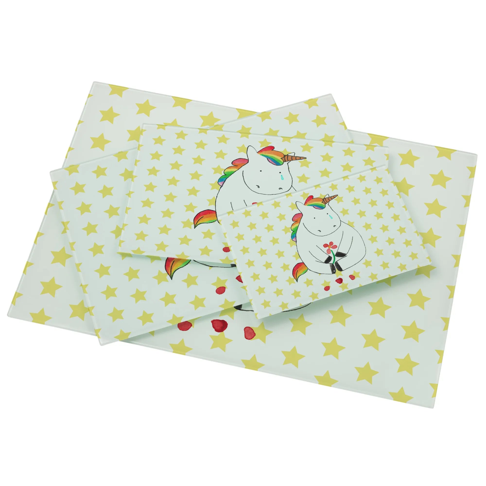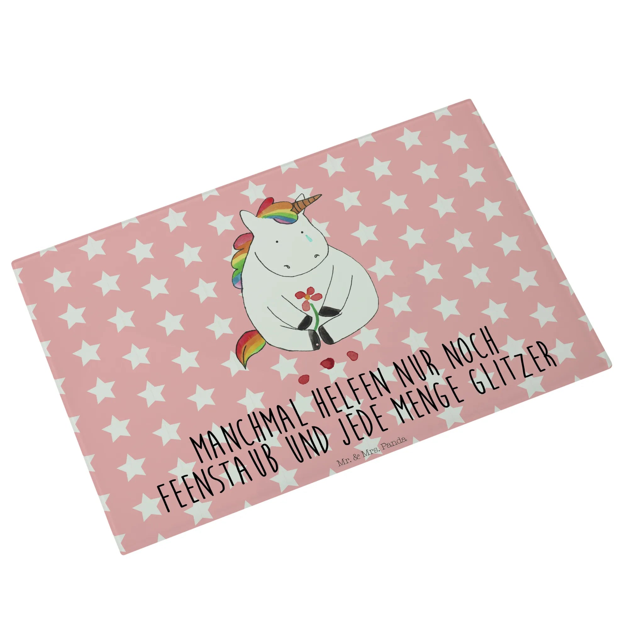 Glass chopping board unicorn Sad - Medium Glas Schneidbrett - with saying - White