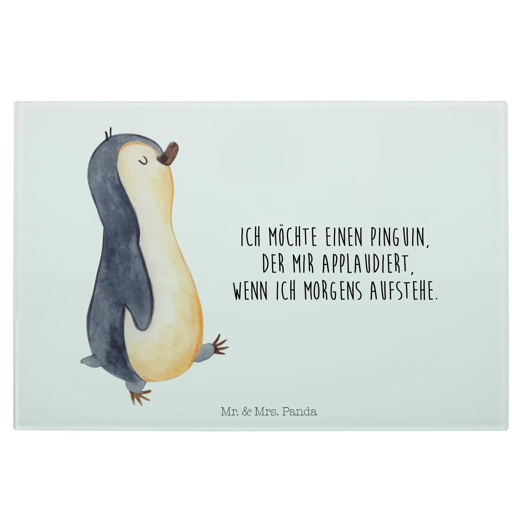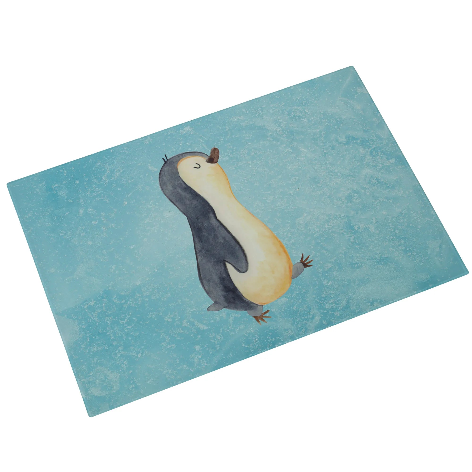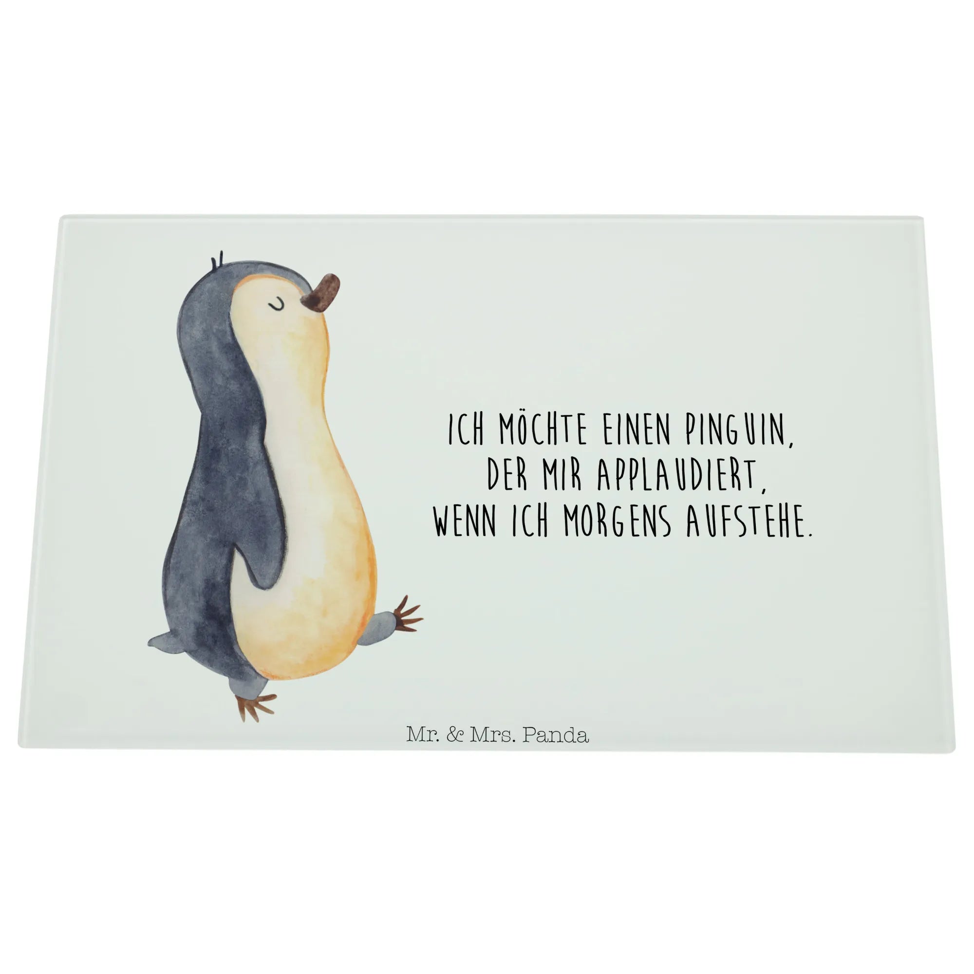 XL glass chopping board Penguin march - Medium Glas Schneidbrett - with saying - White