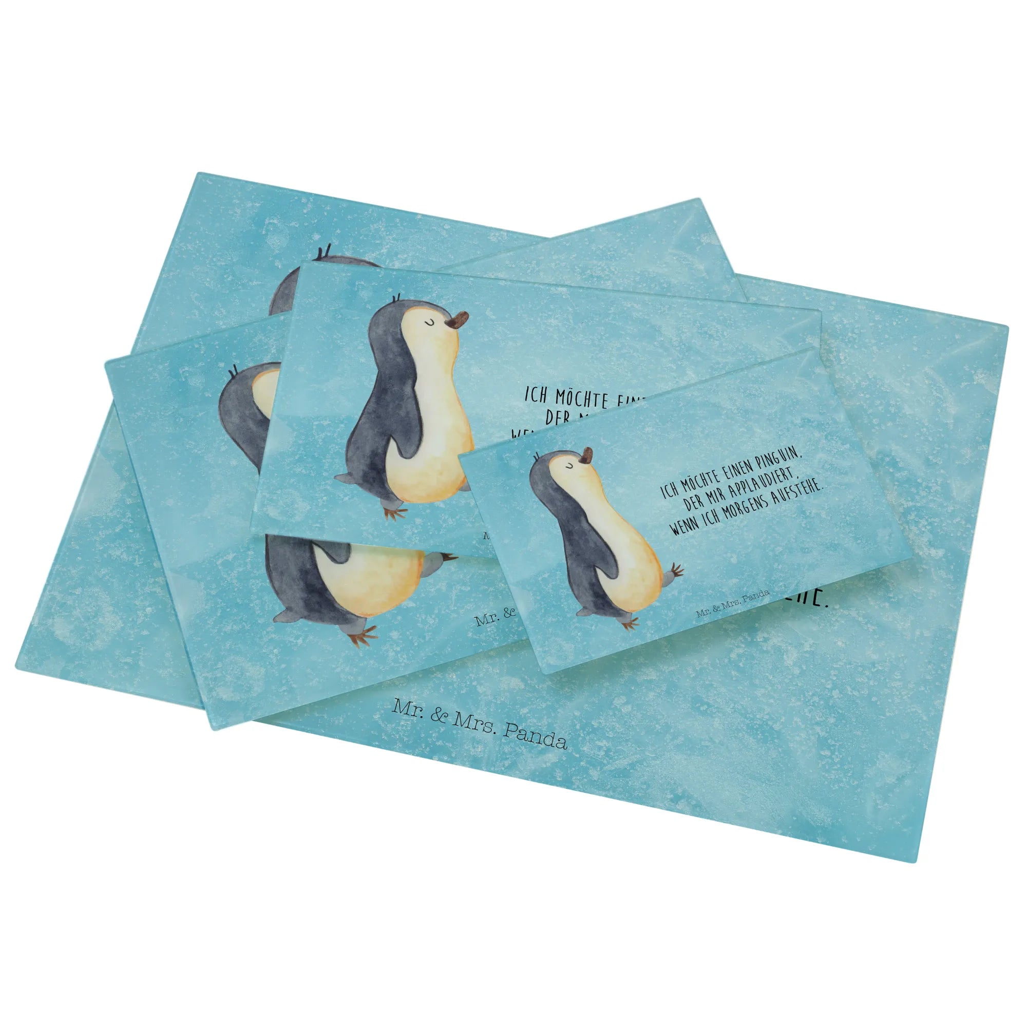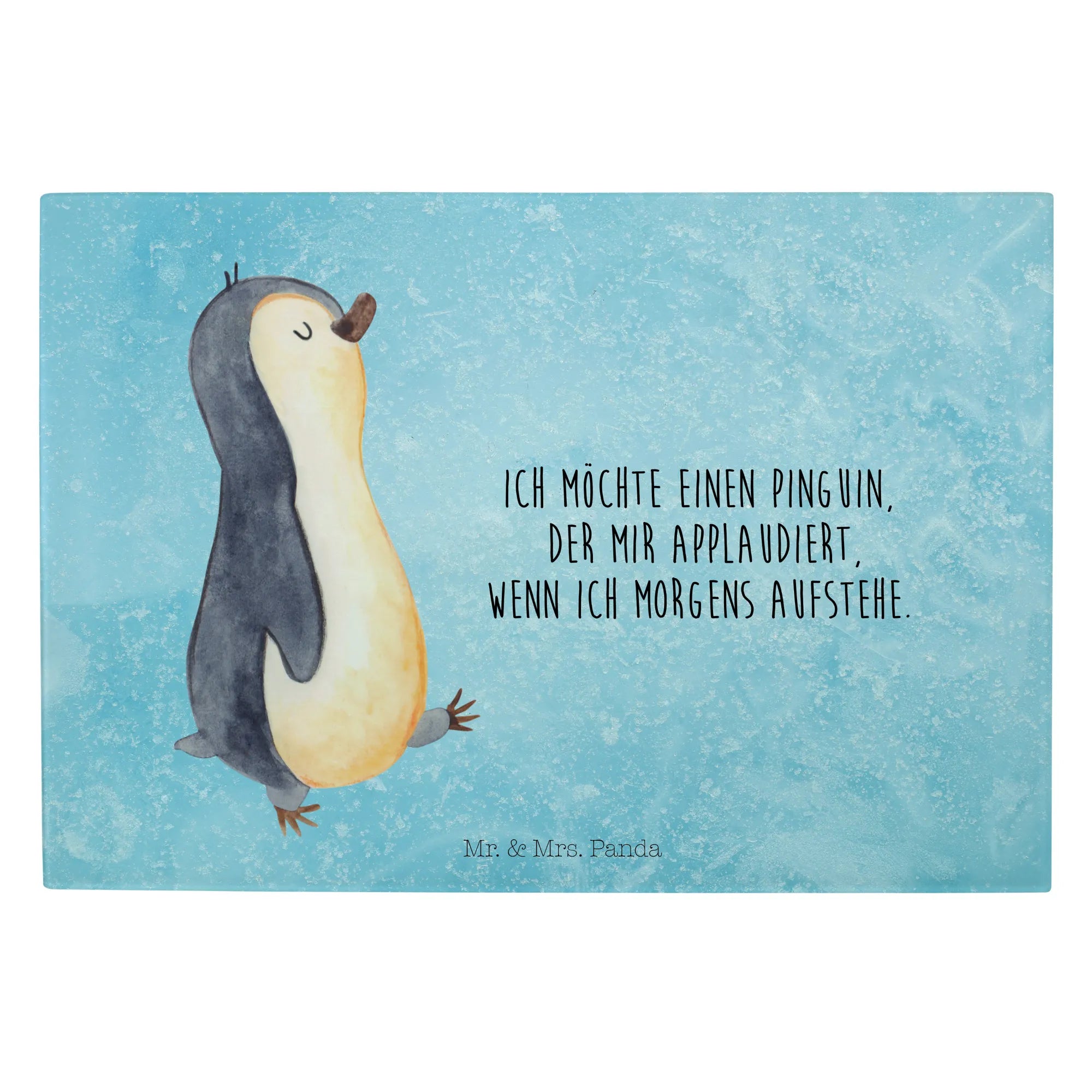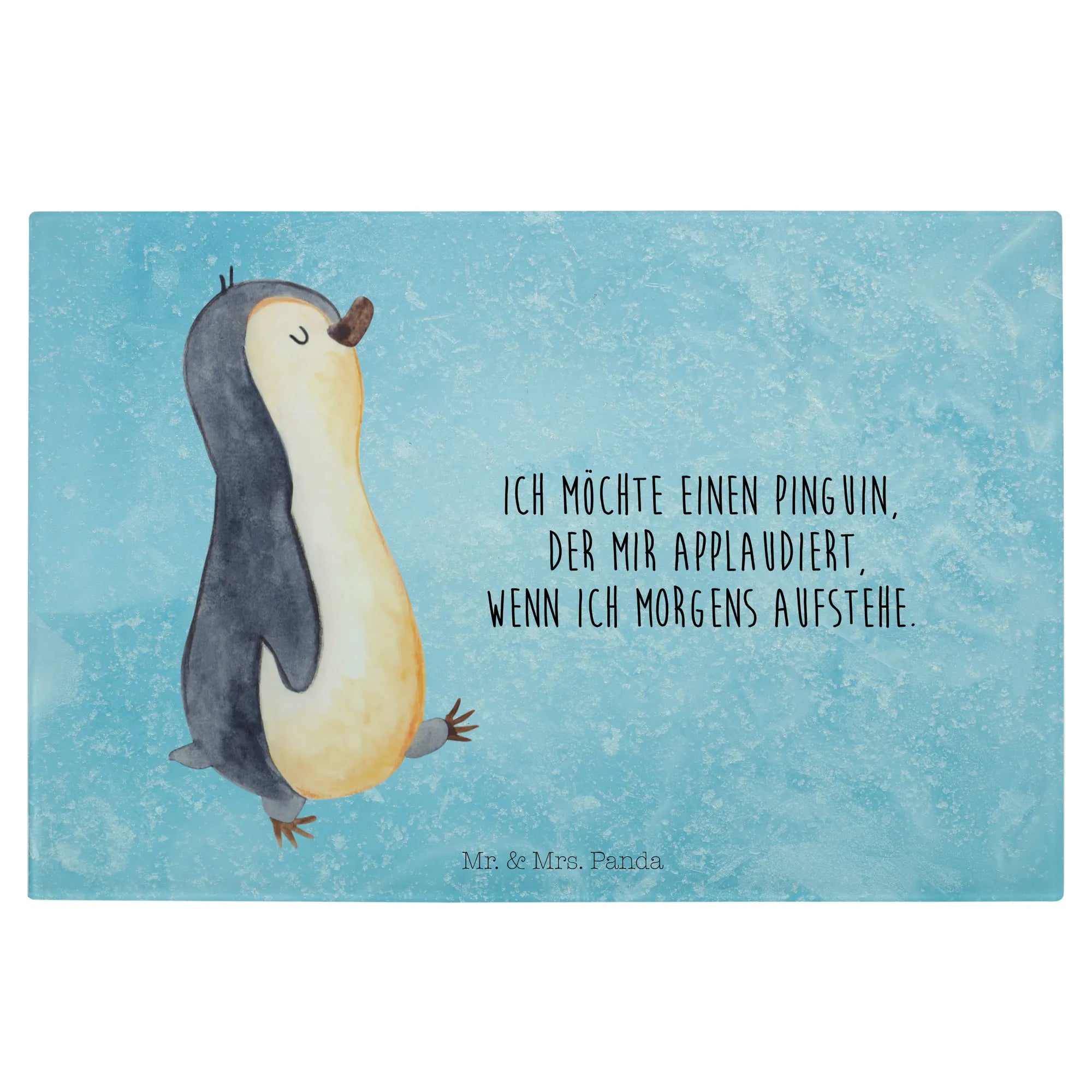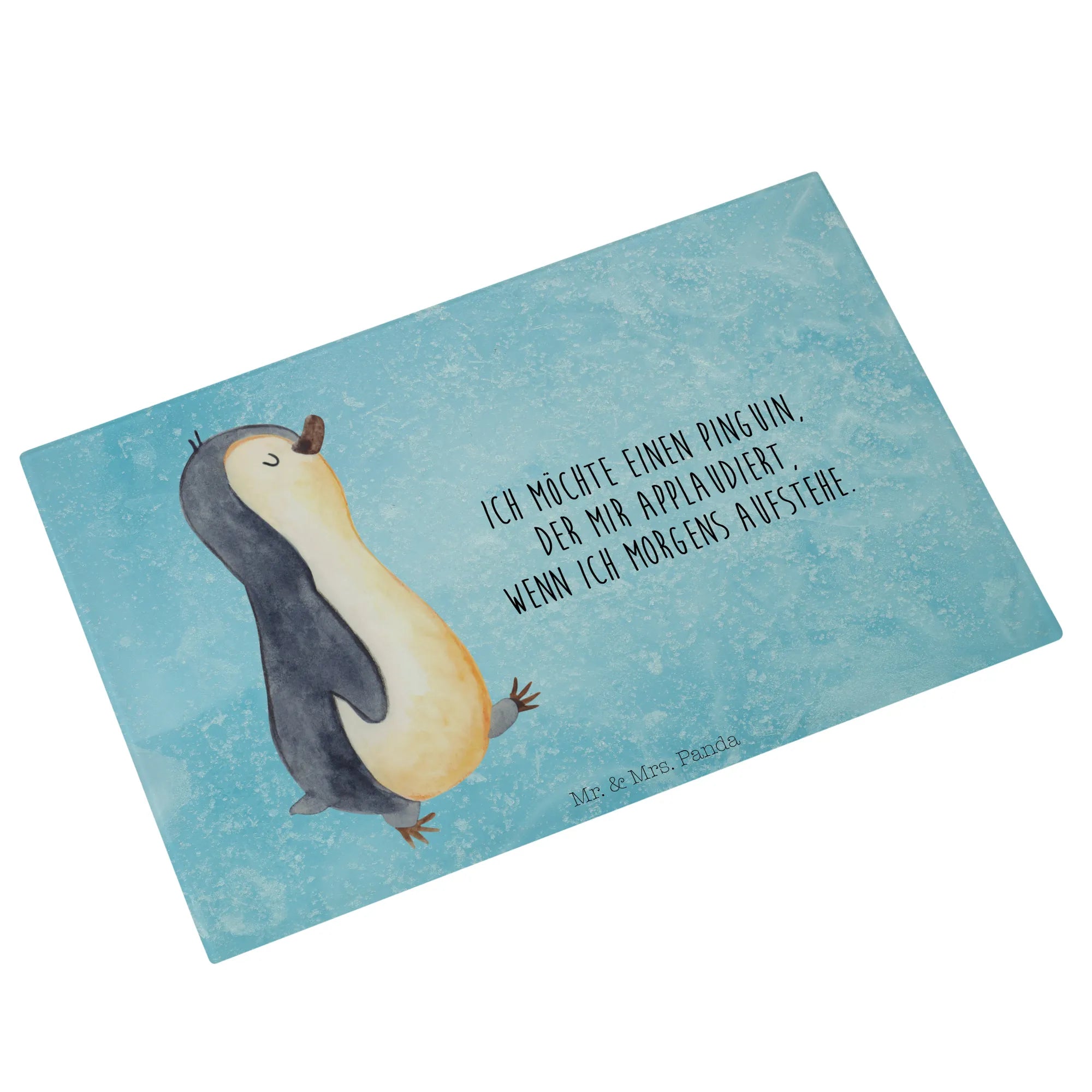 XL glass chopping board Penguin march - Medium Glas Schneidbrett - with saying - White