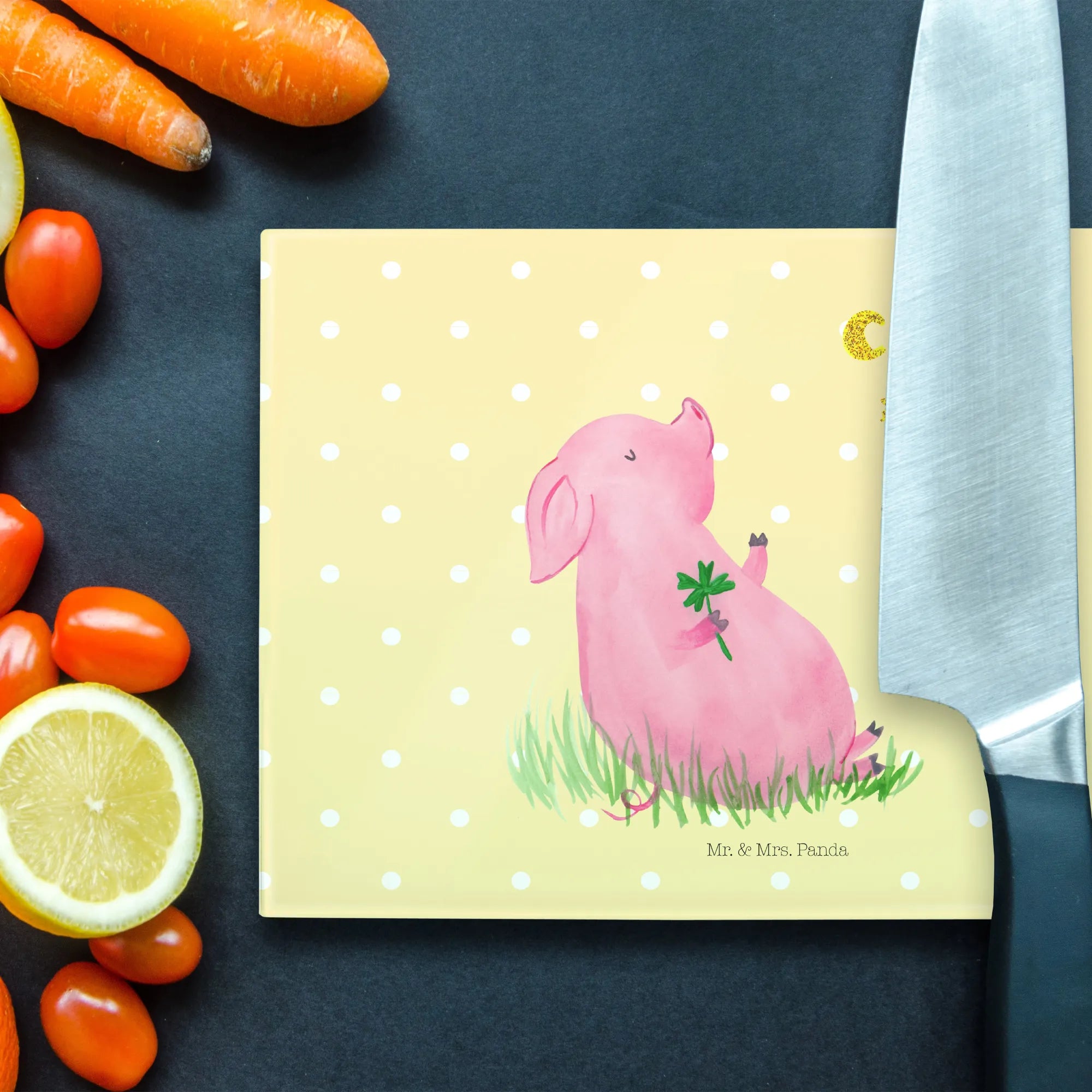 Introducing the Mr. & Mrs. Panda Glass Cutting Board featuring the adorable Lucky Pig from our beloved Small World collection! This charming cutting board is not just a practical tool for your kitchen, but also a delightful piece of art that brings a smile to your face every time you use it.