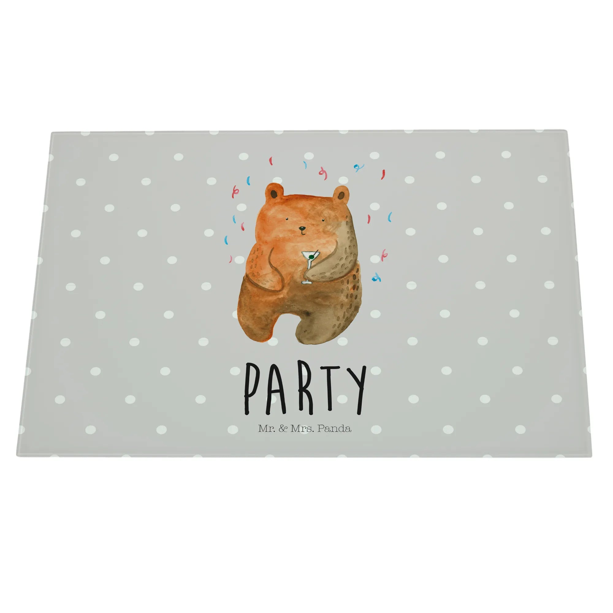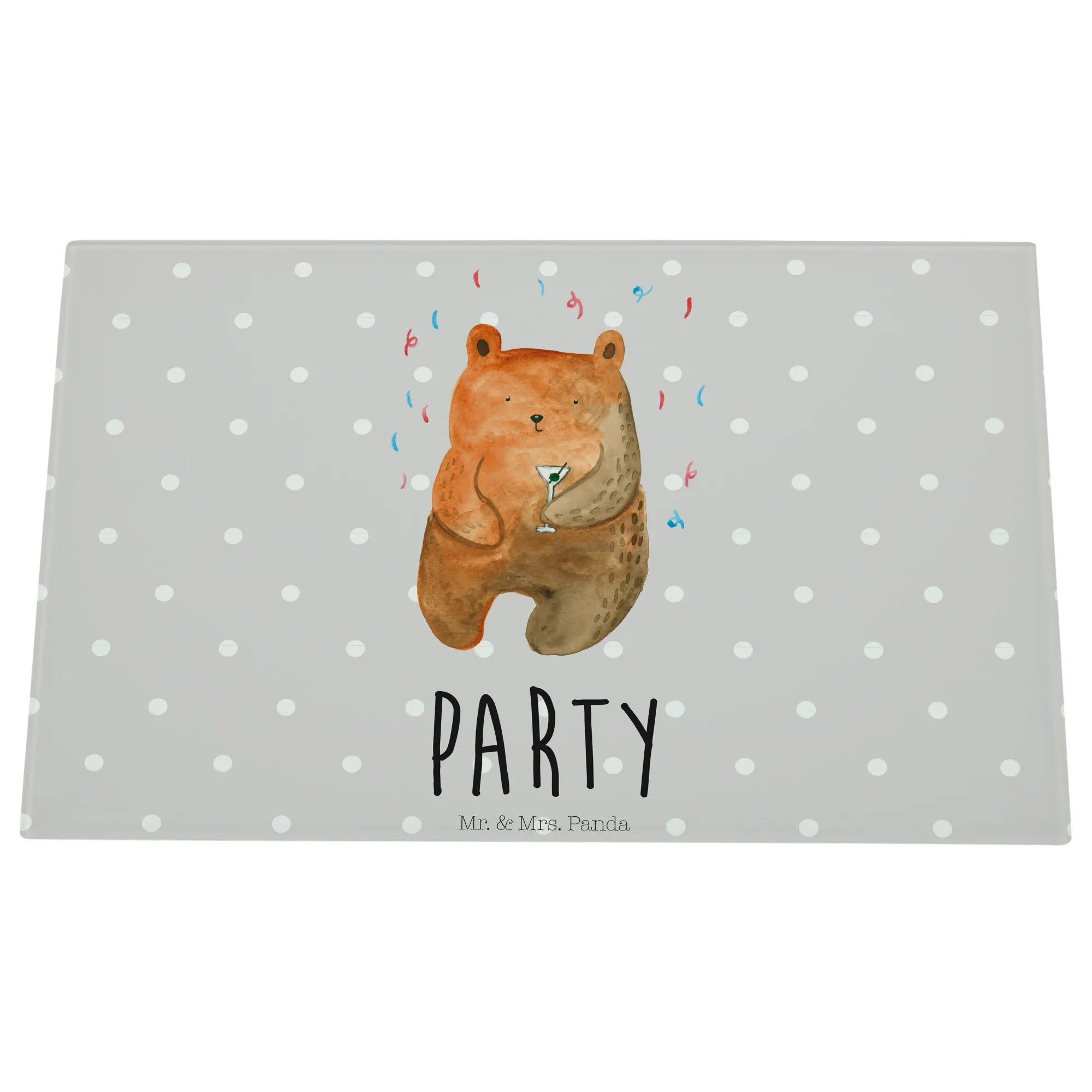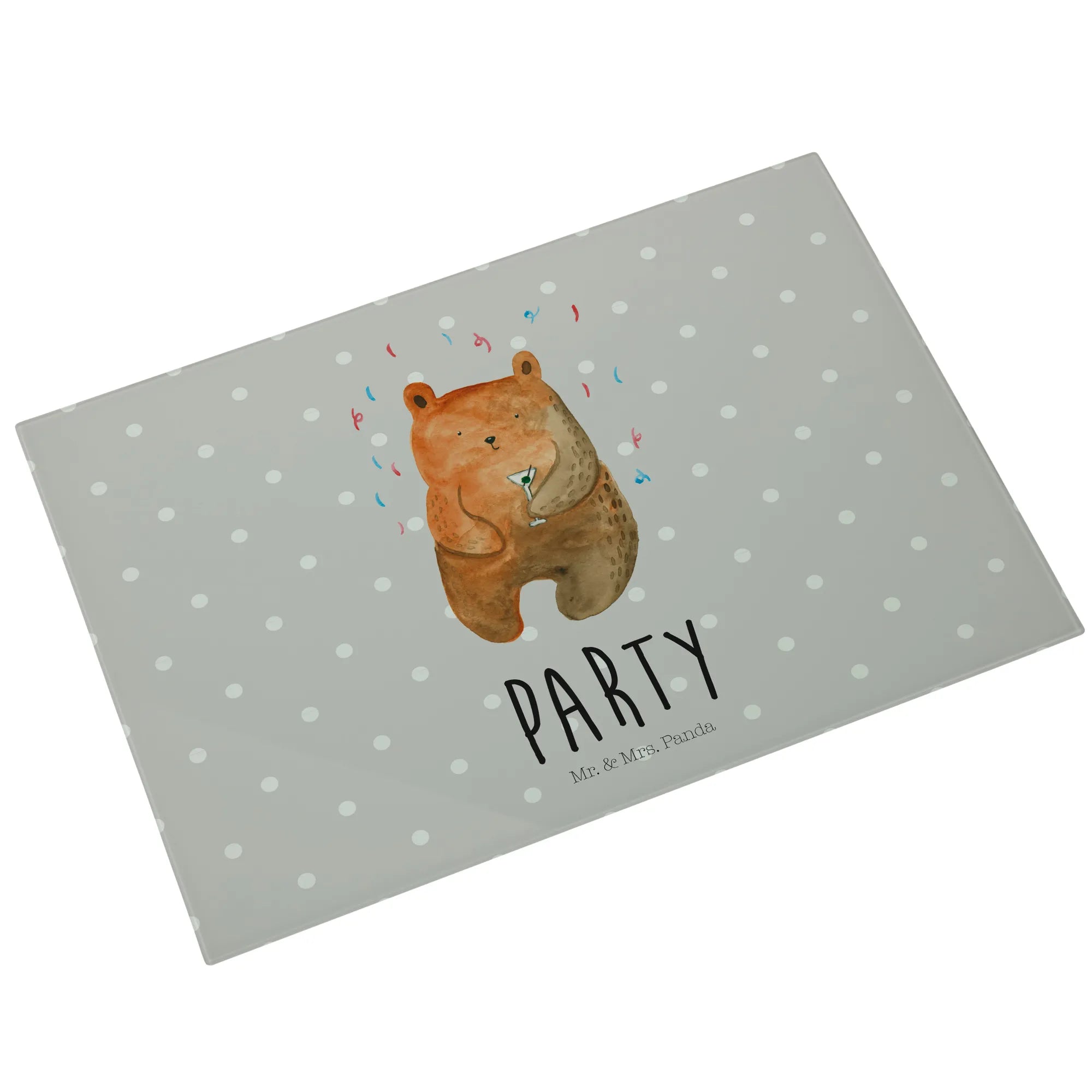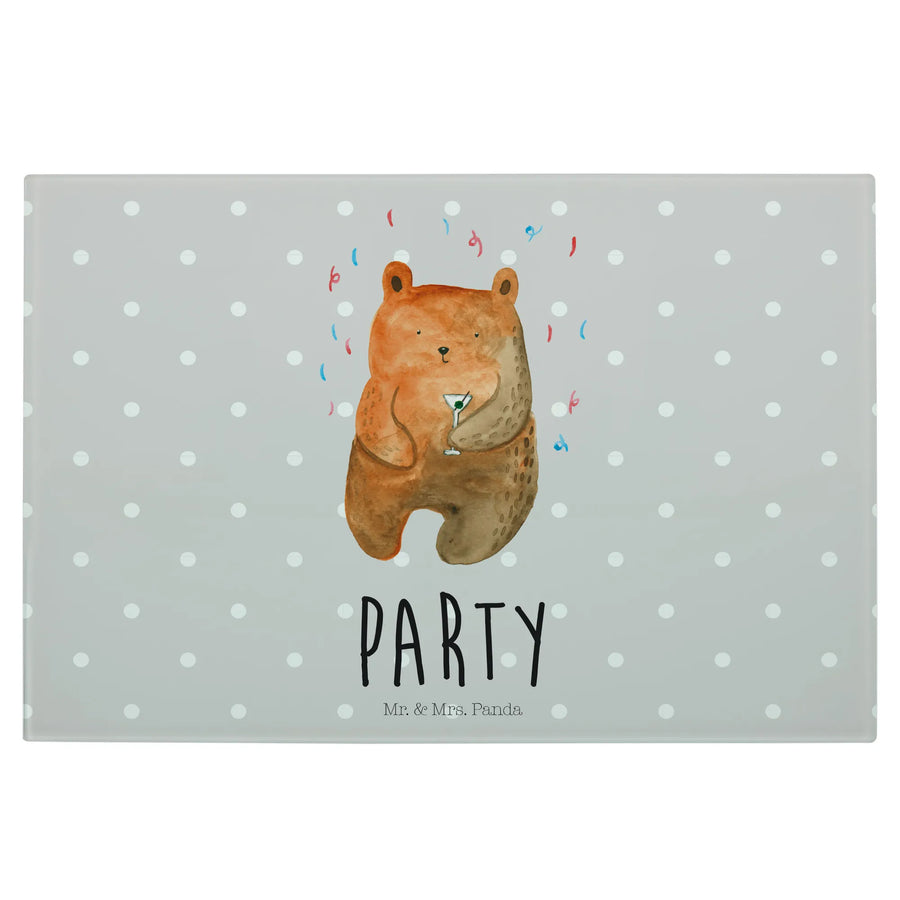 XL glass chopping board bear party - Medium Glas Schneidbrett - with saying - Pastel Gray