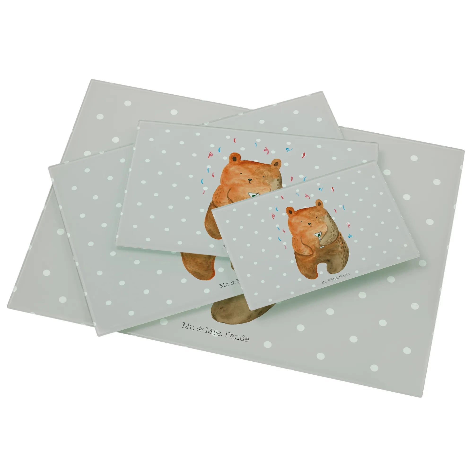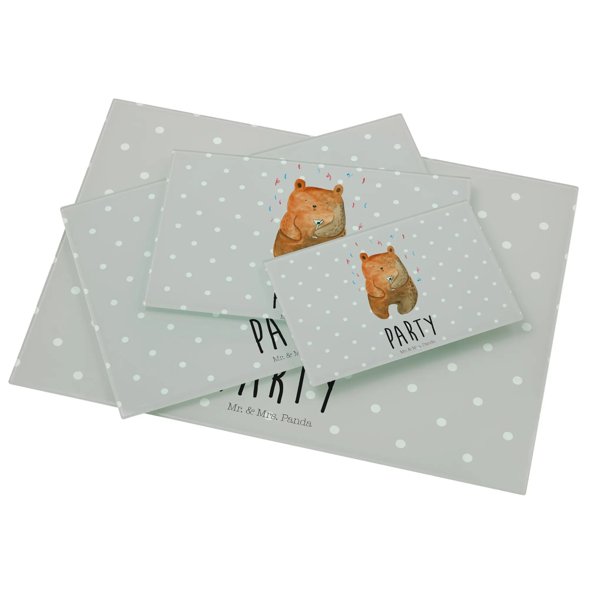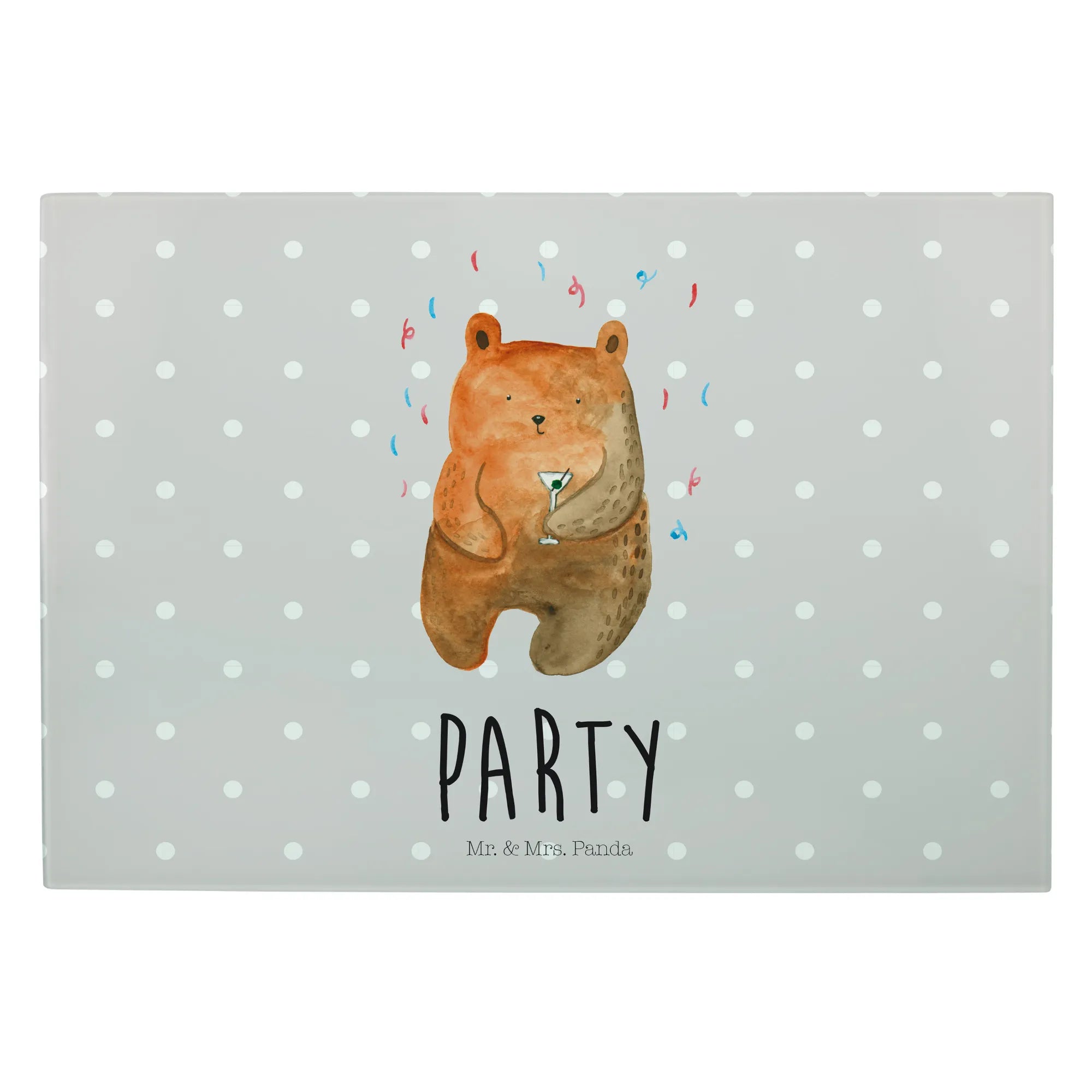 XL glass chopping board bear party - Medium Glas Schneidbrett - with saying - Pastel Gray