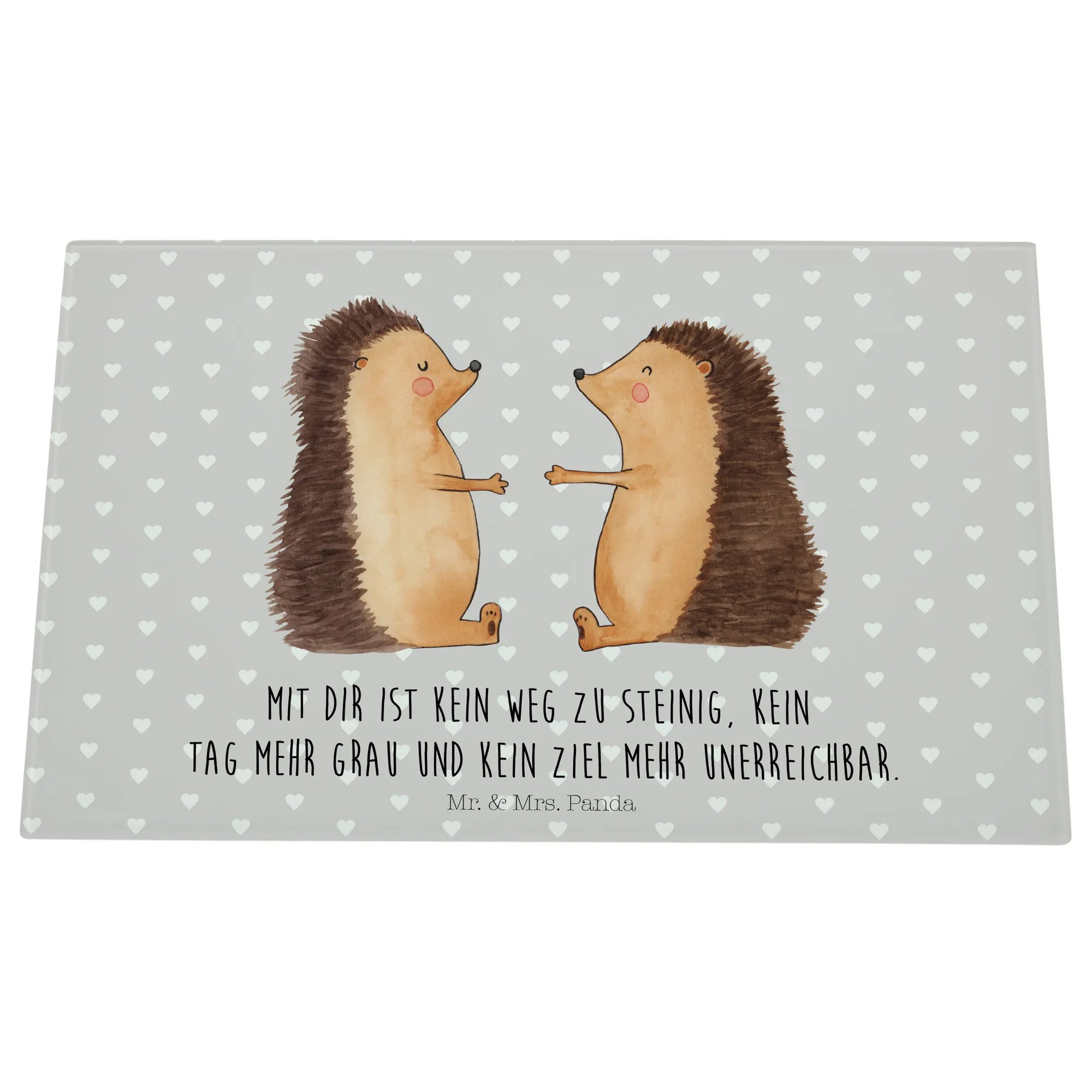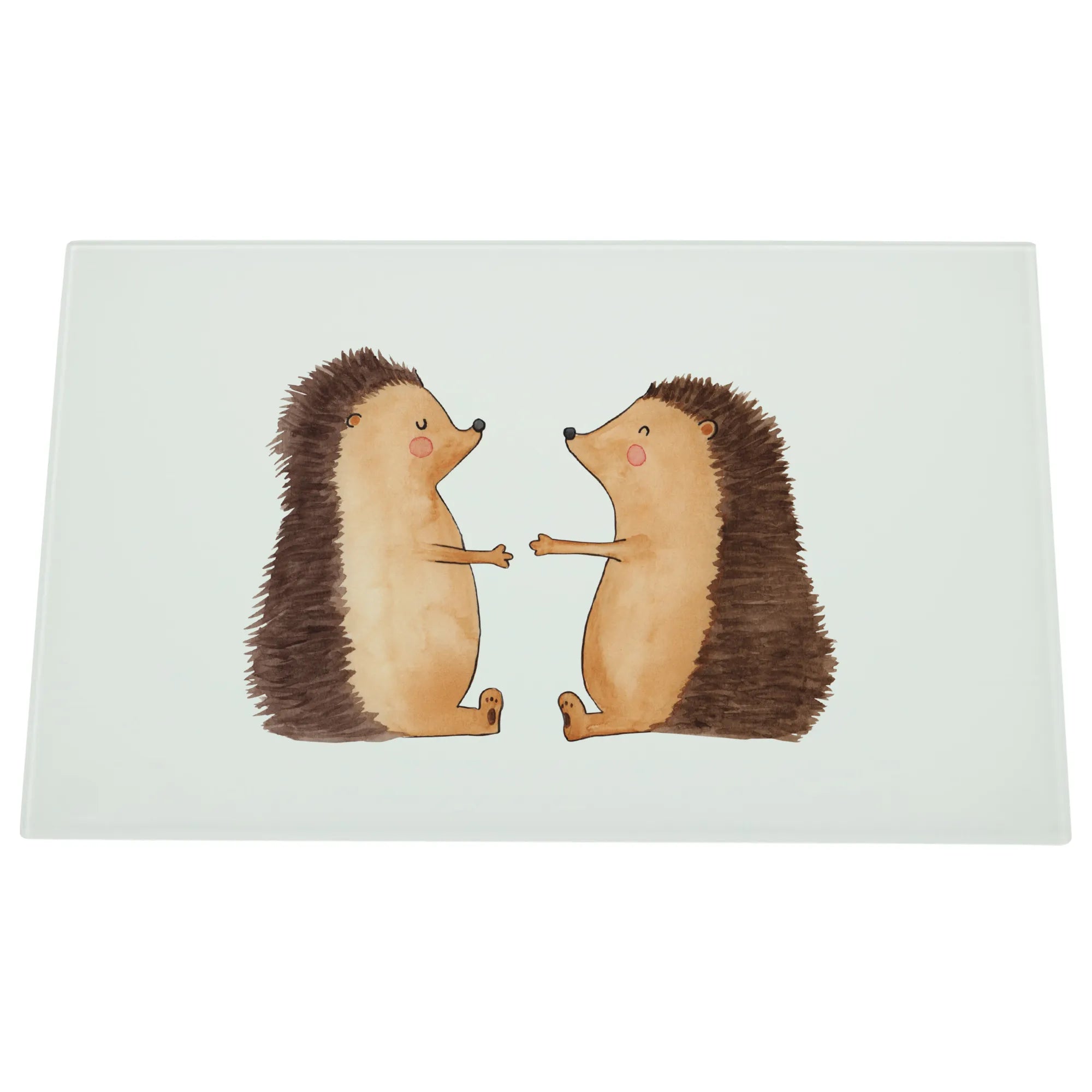 XL glass chopping board Hedgehogs in love - Medium Glas Schneidbrett - with saying - White