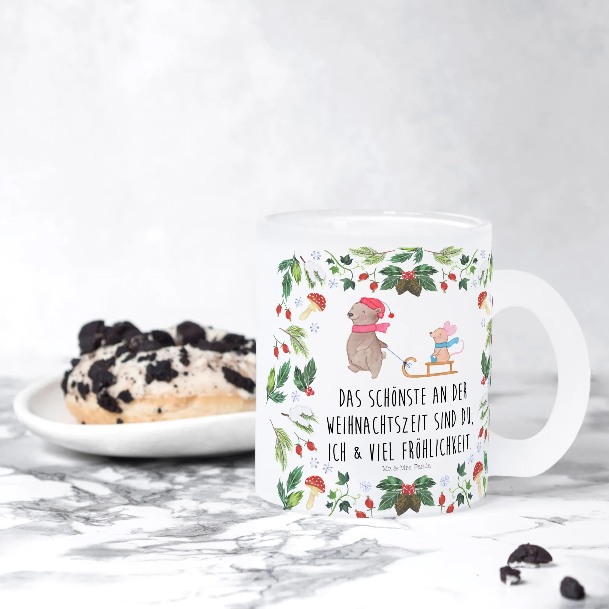 As a product of the Winter Collection by Mr. & Mrs. Panda, it embodies the loving, atmospheric spirit that defines this delightful season. Every design is hand-drawn with care, making each piece unique. This winter, make your tea time feel extra special—impress your guests or treat yourself with this lovely glass tea cup that celebrates the happiest moments of winter with you.
