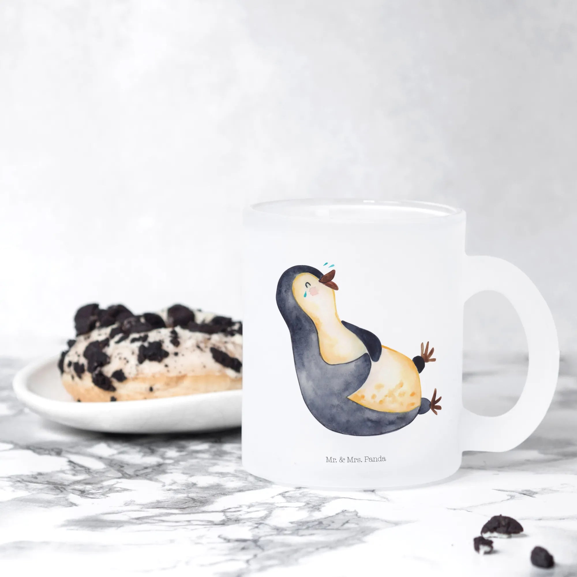 Introducing the delightful Glass Tea Cup featuring a laughing penguin from the Mr. & Mrs. Panda Penguin Collection! This charming cup is not just a perfect vessel for your favorite hot beverages but a cheerful ray of sunshine to brighten your day. Designed for those who cherish warmth, joy, and a sprinkle of humor in their life, this cup captures the essence of happiness with its adorable hand-drawn motif.
