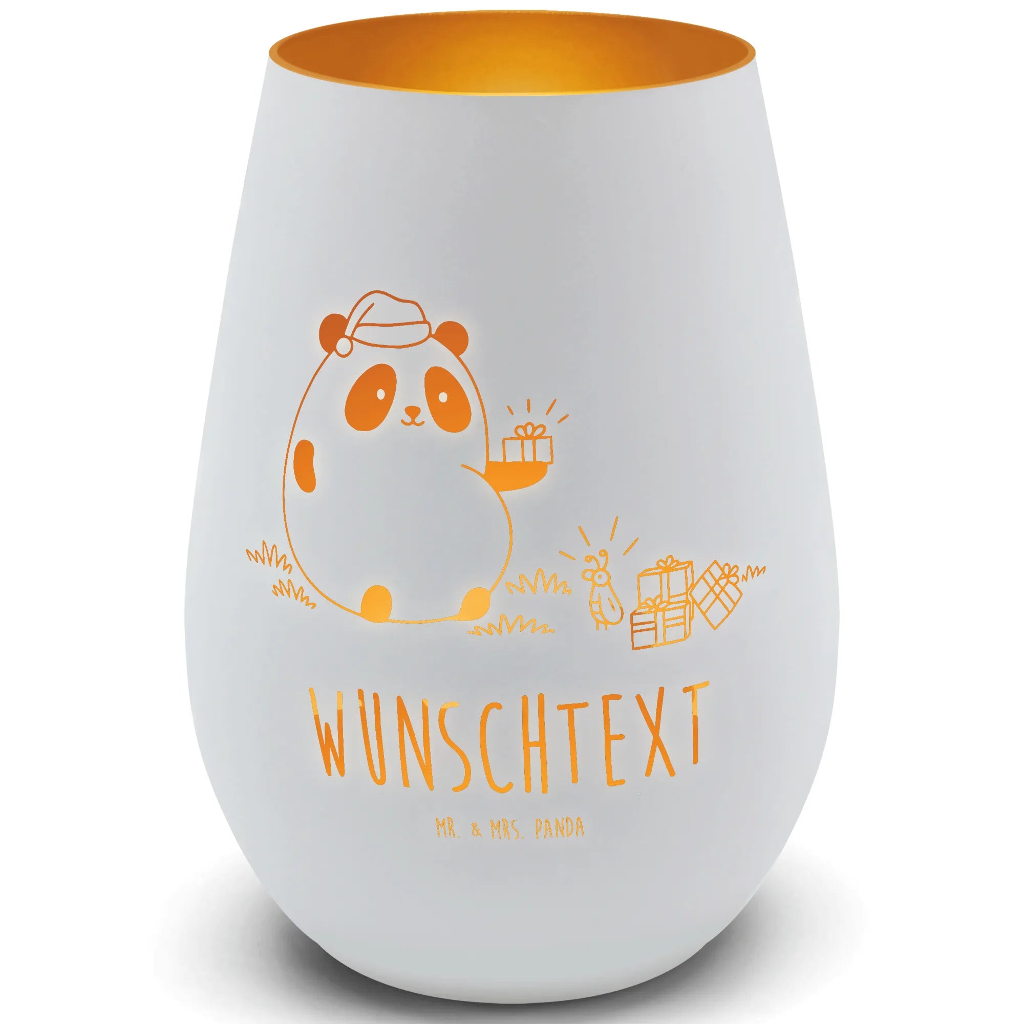 Gold Personalized Lantern Panda Christmas gift - White