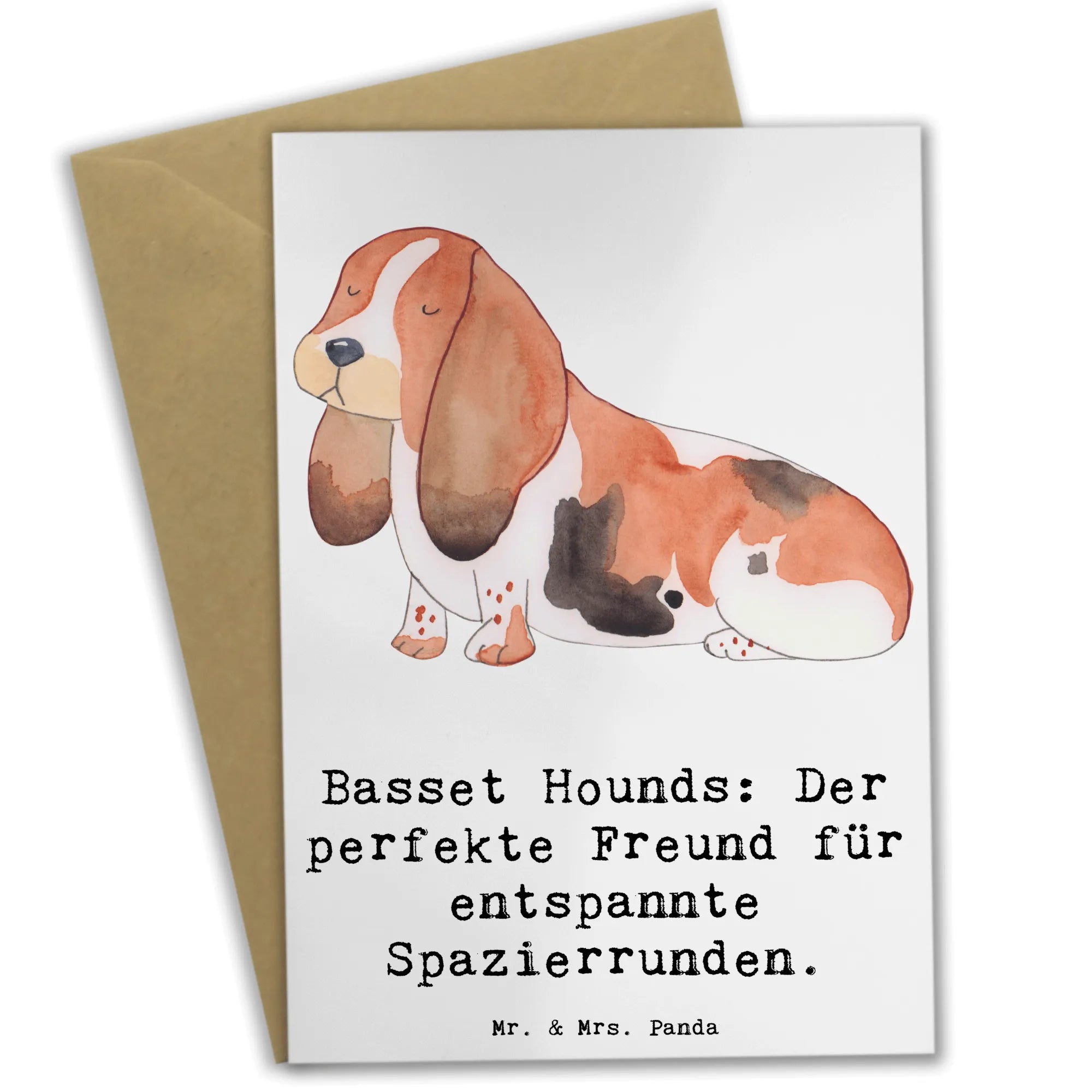 Greetings card Basset Hounds: Der perfekte Freund für entspannte Spazierrunden. - White