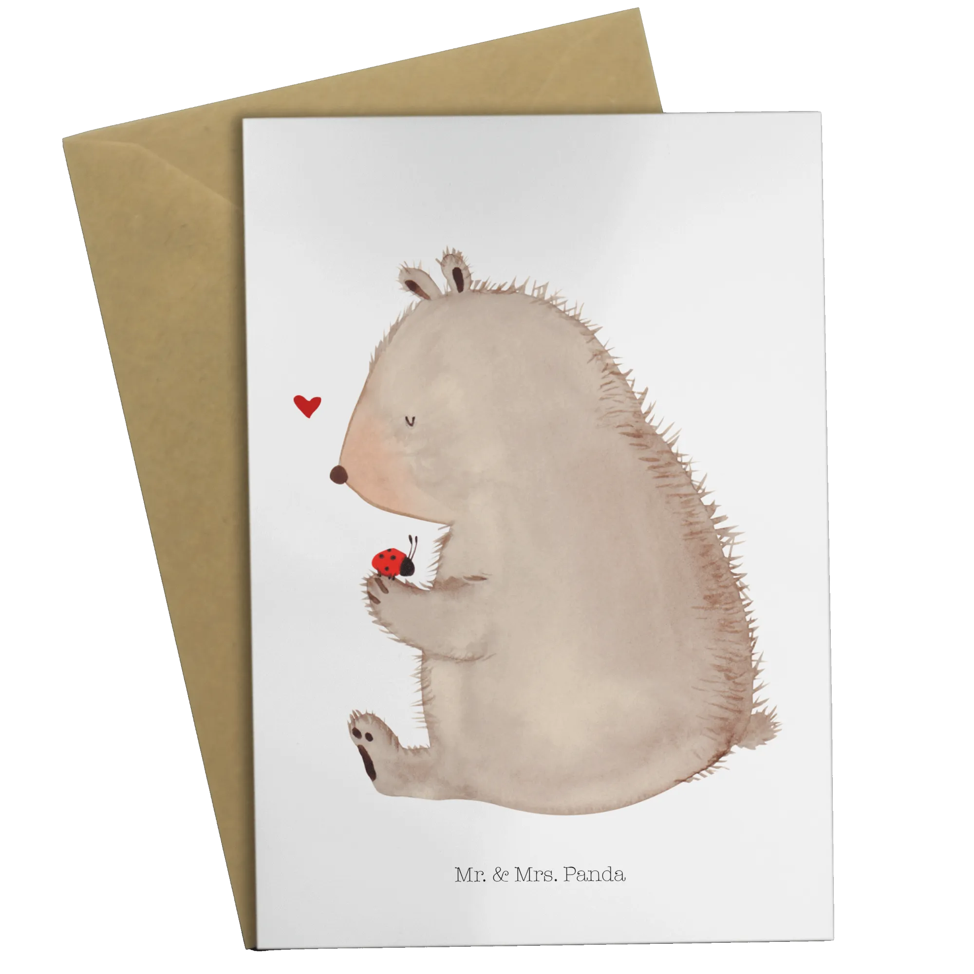 Are you searching for the perfect gift that spreads joy and love? Look no further than the adorable Greetings Card featuring a Bear with a lovely ladybird from the charming Mr. & Mrs. Panda collection! This delightful card is a wonderful way to express your heartfelt emotions for countless occasions.
