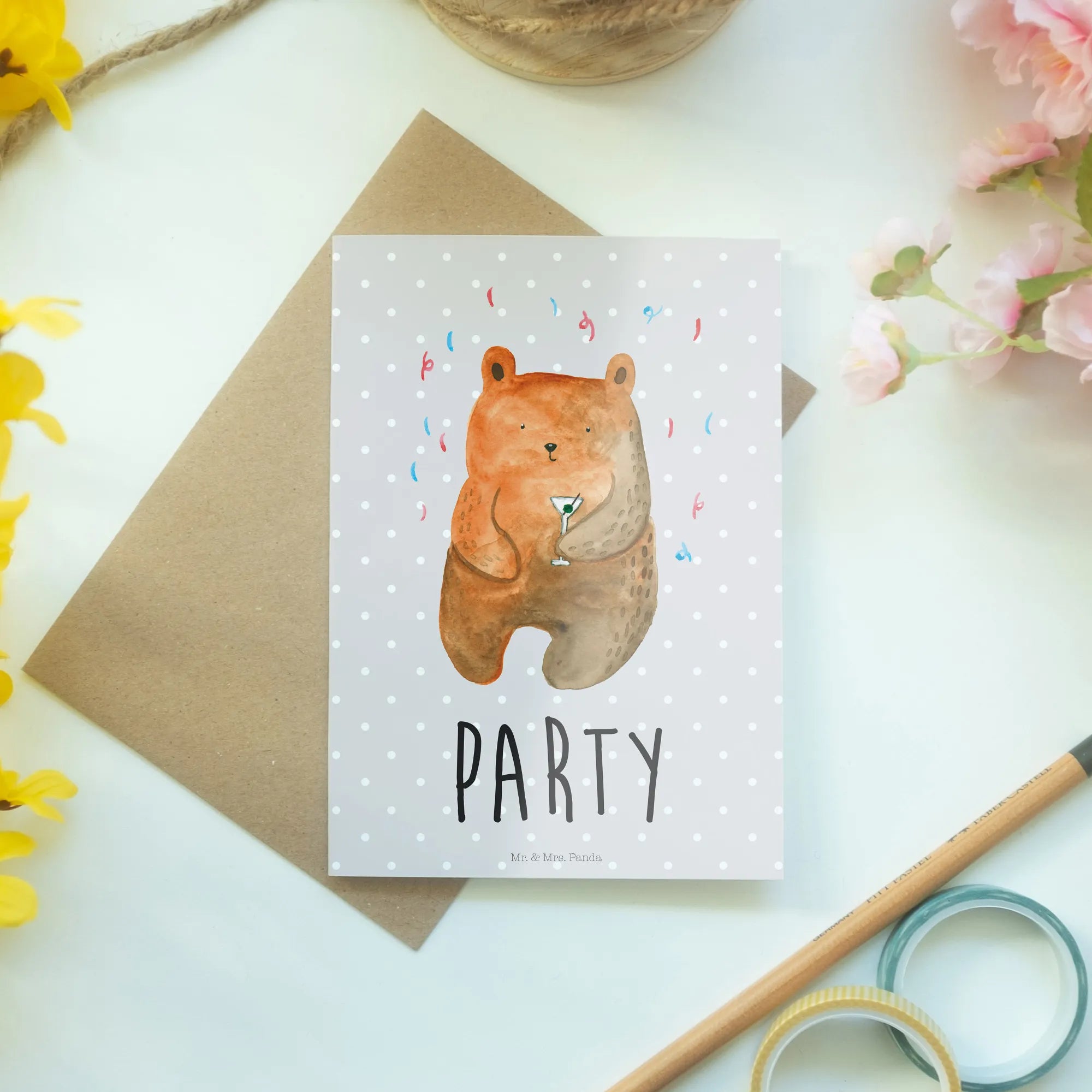 Imagine the smile on your friend’s face as they open this Bear Party card! It's the ultimate birthday present addition for those who seemingly have everything, or even just a whimsical note for a party invitation. Birthdays and celebrations are all about spreading cheer, and what better way to encapsulate this sentiment than with a unique card that speaks volumes of happiness? The special Bear Party collection by Mr. & Mrs. Panda is meticulously designed, with every detail lovingly illustrated by Mrs. Panda, ensuring that your card is not just a card but a piece of art filled with good vibes!