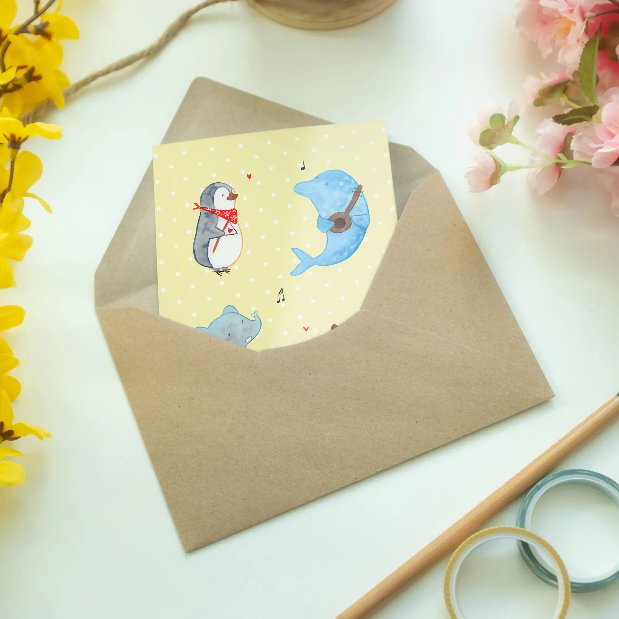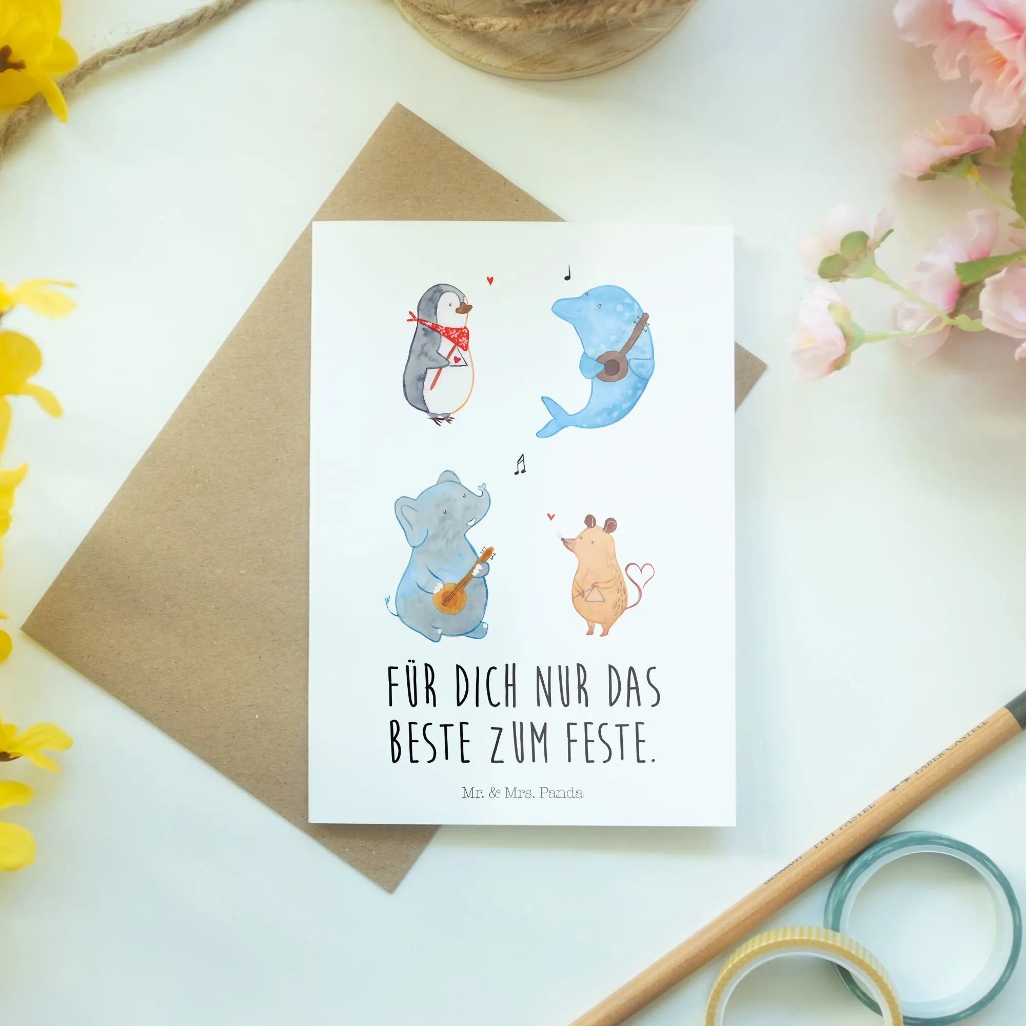 Looking for the perfect way to send your love and best wishes? The Big Band Greetings Card from the Small World collection by Mr. & Mrs. Panda is your go-to choice! This delightful card, featuring a charming design with a penguin, a mouse, a dolphin, and an elephant joyfully playing music together, brings smiles and happiness to every occasion.