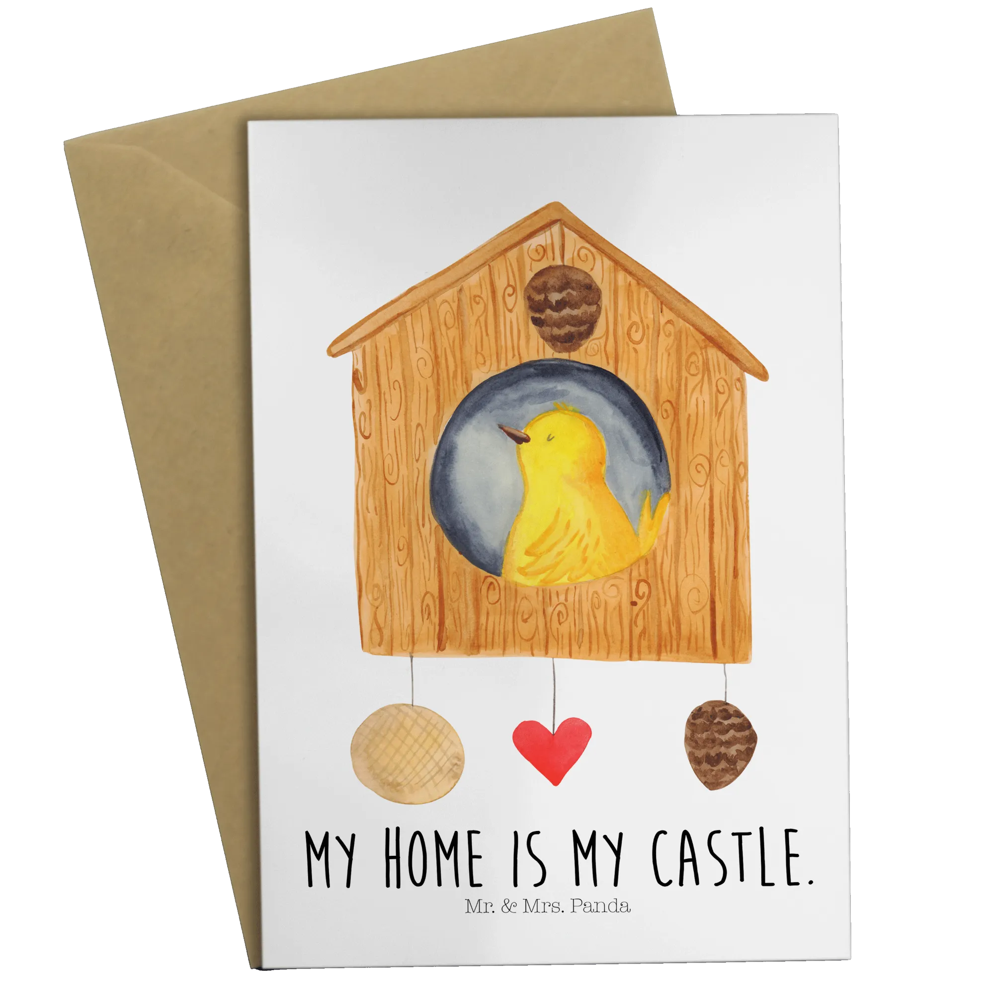 This charming card features a whimsical illustration of a cheerful little bird proudly perched in its cozy birdhouse. It’s the perfect way to convey your love for home, family, and all the little moments that make life so special.