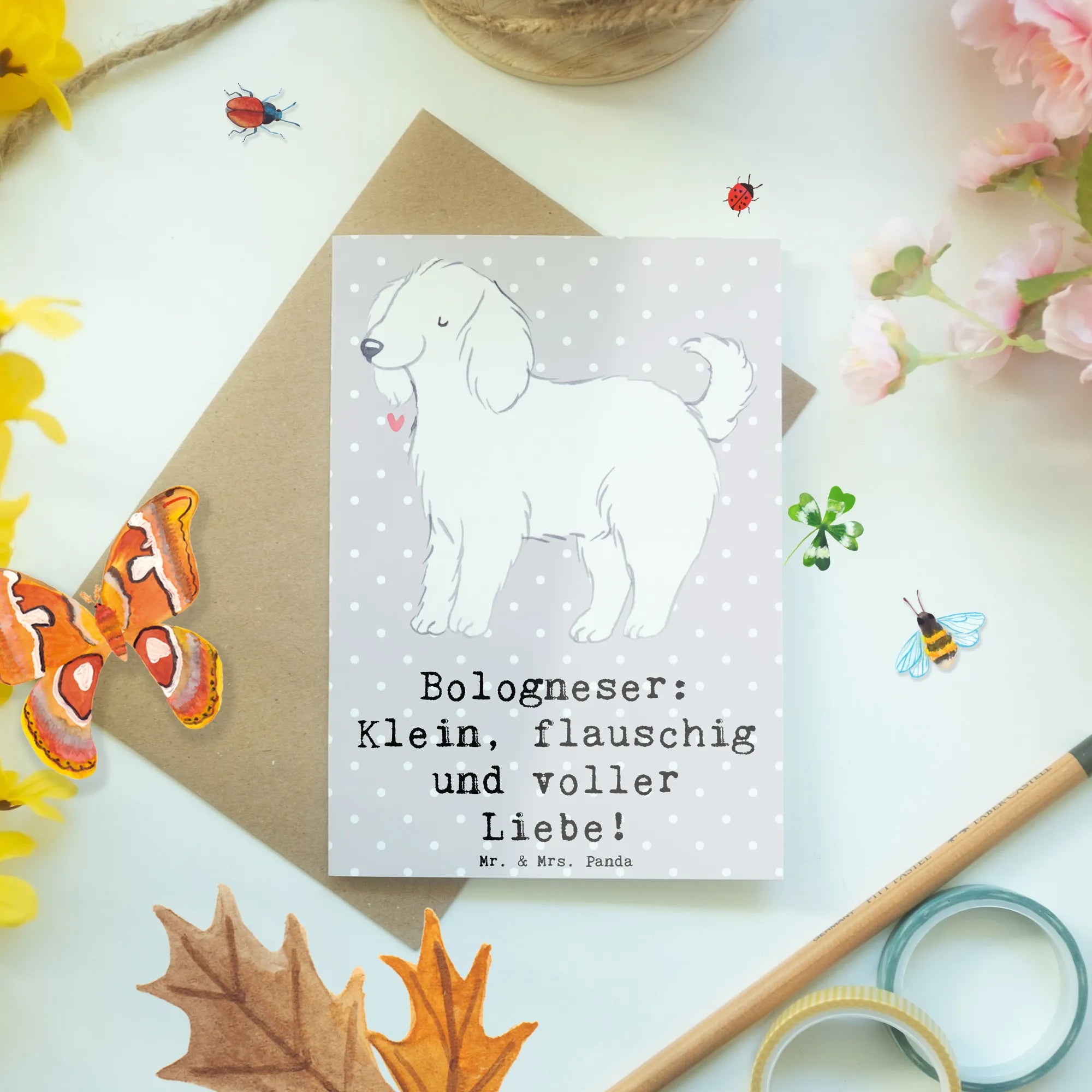 Greetings card Bologneser: Klein, flauschig und voller Liebe! - White