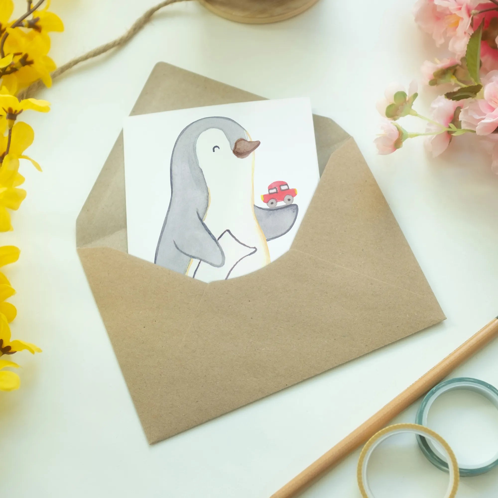 With its captivating design featuring a cute penguin with car documents in one hand and a toy car in the other, it'll surely bring a smile to any automotive professional’s face! Let’s face it, finding a trusted car dealer is an art in itself. A little token like this card is a thoughtful gesture that shows how much you value their service and expertise.