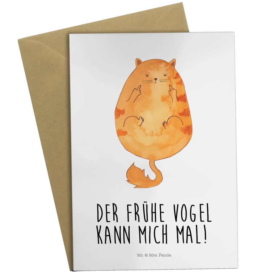 Greetings card Cat Early riser - with a saying - White