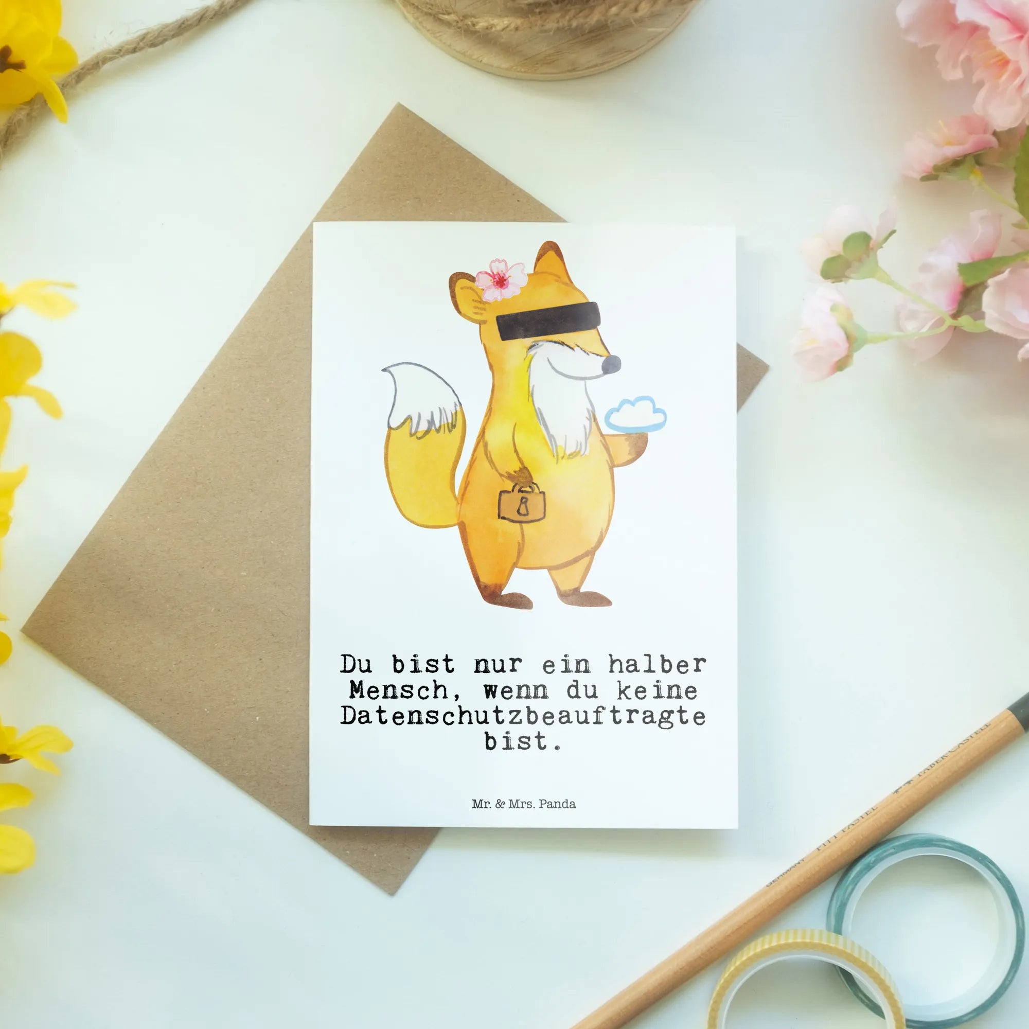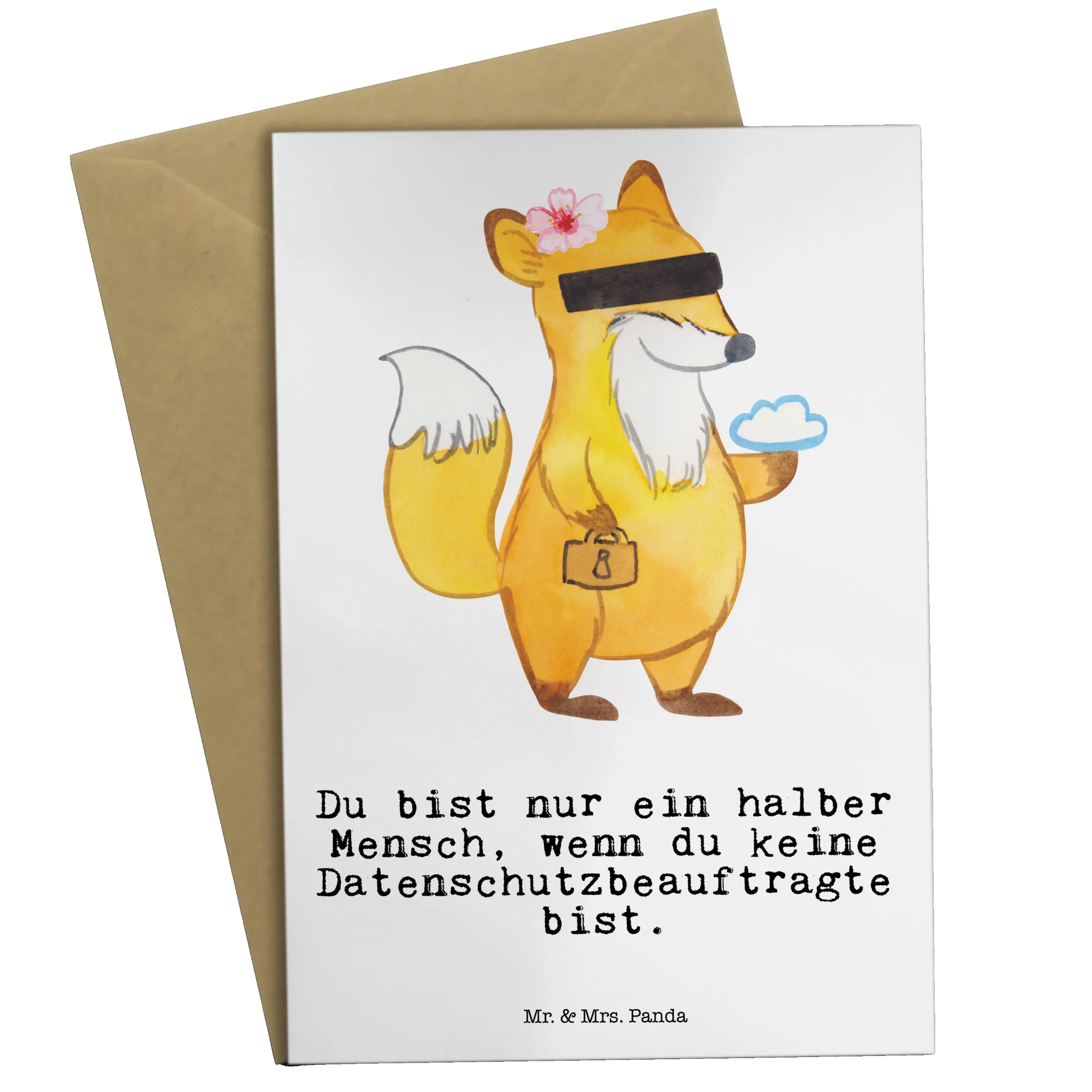 Are you looking for the perfect gift idea for a data protection officer? Look no further than this delightful greetings card from Mr. & Mrs. Panda! Crafted with love and care, this card is not just a piece of paper; it’s a heartwarming gesture that any dedicated data protection professional would cherish. With a charming motif of our clever fox holding a padlock, this card embodies the essence of a Datenschützerin, whose passion for privacy and security is evident in her work.