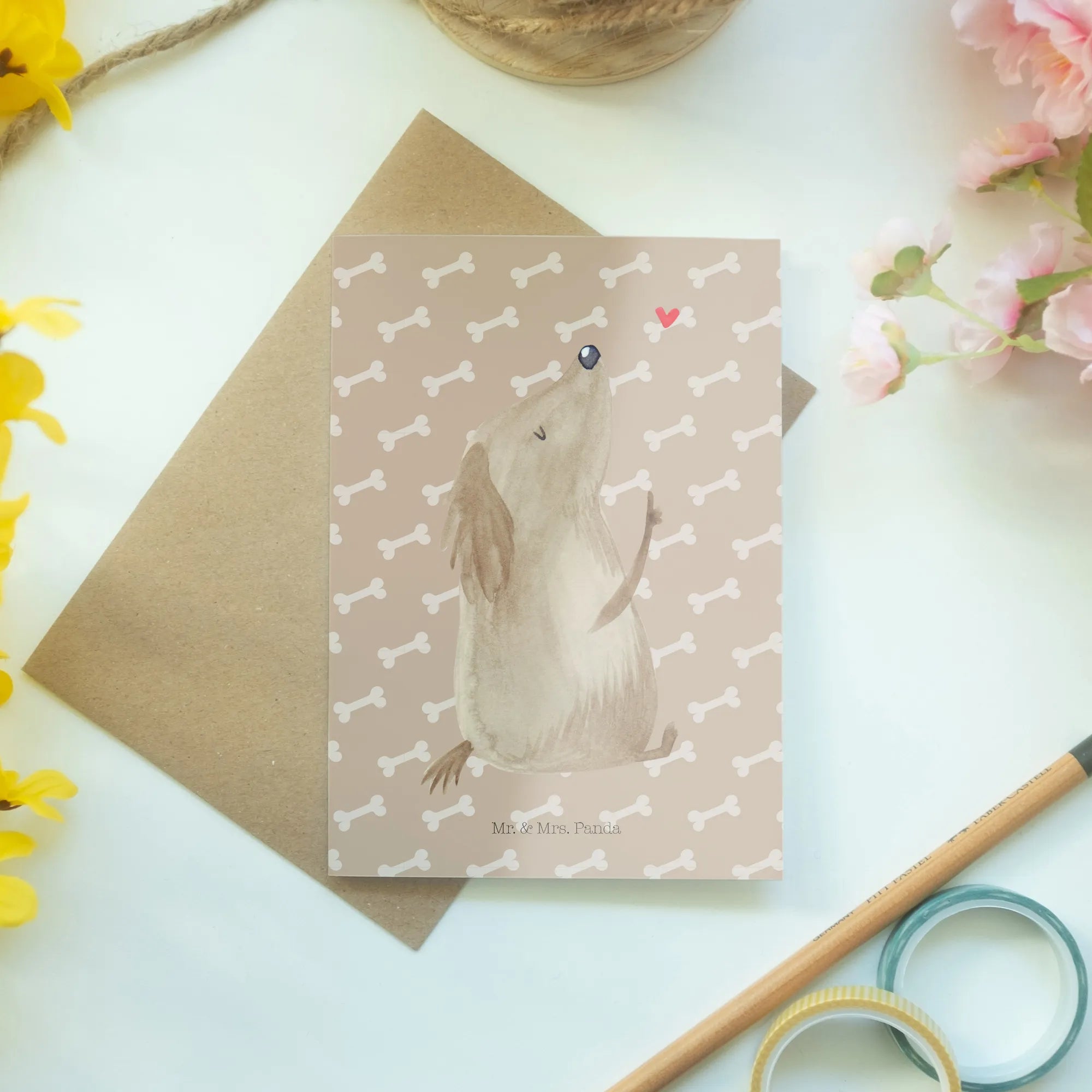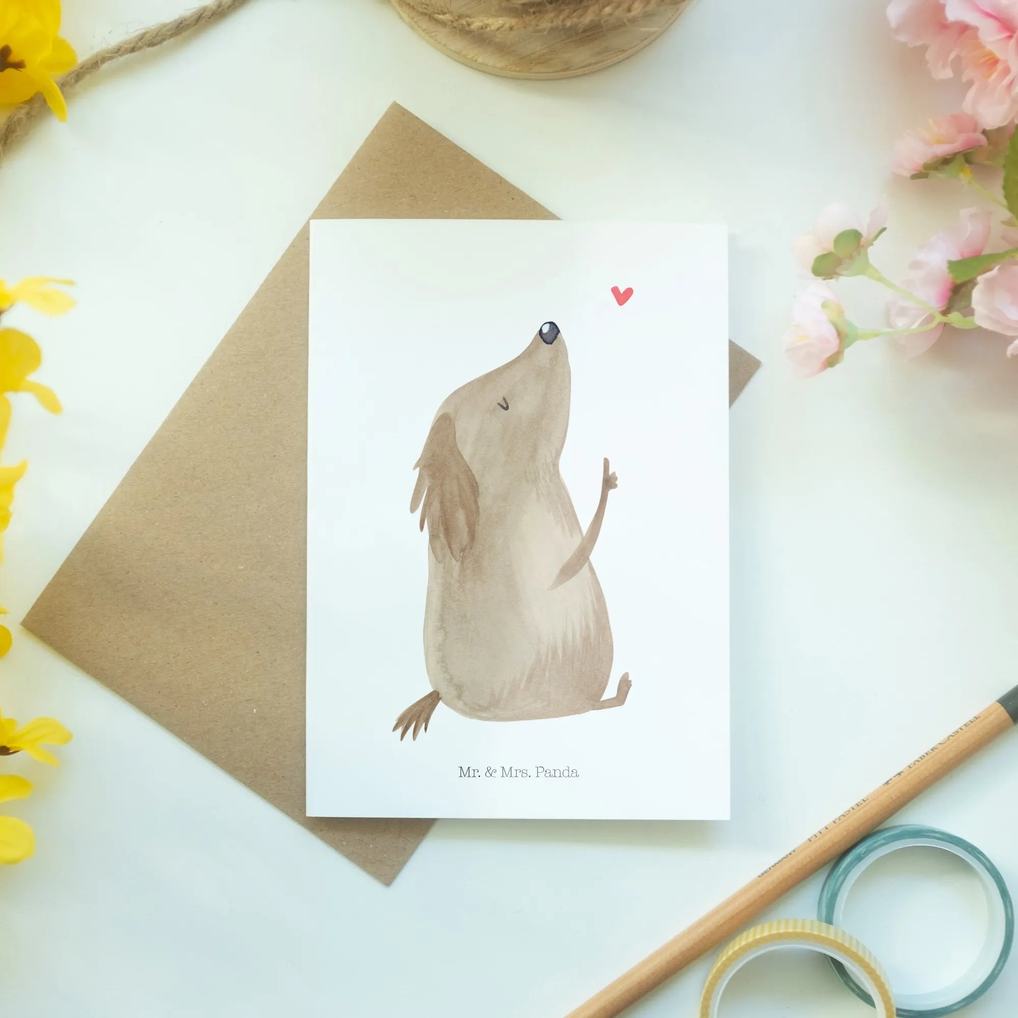 Are you searching for the perfect gift for the dog lover in your life? Look no further than the delightful Greetings Card: Dog Love from the charming Dog Collection by Mr. & Mrs. Panda! This stunning card, featuring an adorable dog design, captures the essence of our furry friends and the joy they bring into our lives.
