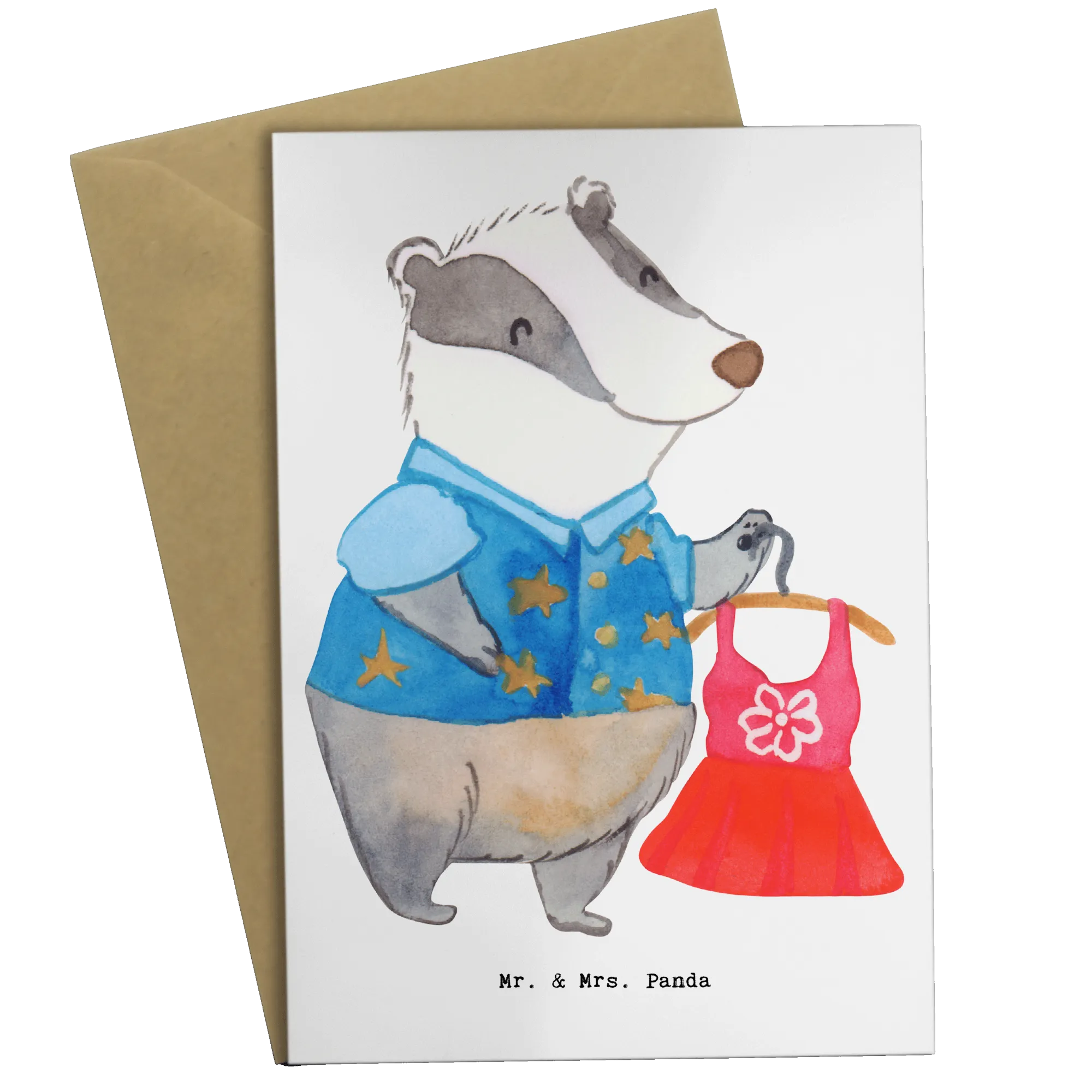 Are you in search of the perfect gift for a fashion salesperson? Look no further! The Mr. & Mrs. Panda Greetings Card featuring an adorable illustration of a stylish badger showcasing a lovely dress is here to brighten anyone’s day. This delightful card is not just a simple greeting card; it's an expression of love, creativity, and appreciation for those who dedicate their lives to the fashion world. Whether it's for a birthday, a job promotion, or a heartfelt farewell gift, this card ticks all the boxes for any occasion.