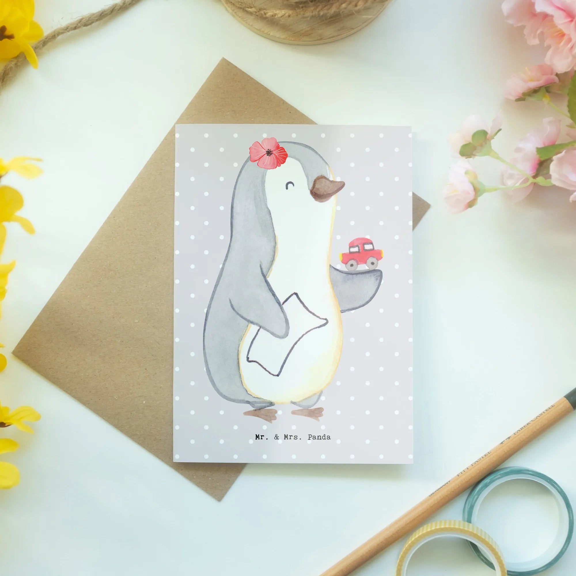 Whether you're a friend, colleague, or family member of a car dealer, this card is your perfect companion for delivering well wishes and heartfelt messages in a fun way. The collection features unique, lovingly crafted designs by Mr. & Mrs. Panda, making them not only a simple card but a heartfelt keepsake that can bring a smile to anyone's face who works within the automotive trade. So why wait? Share the love and appreciation with those who deserve it most; grab the car dealer greeting card today and let the smiles roll in!