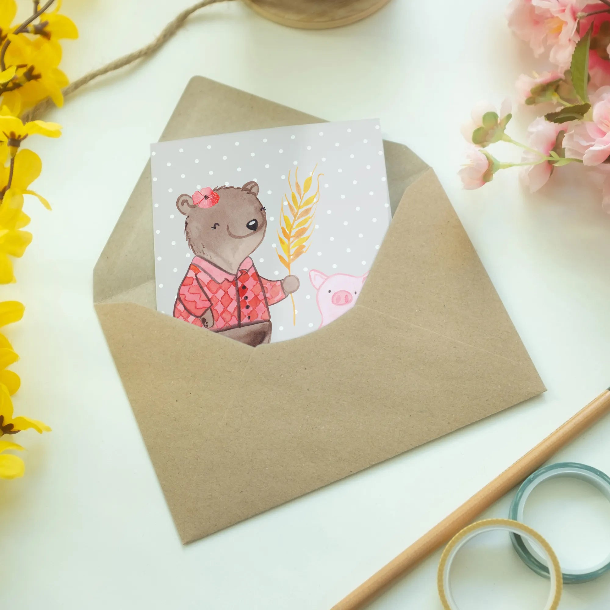 With a whimsical illustration of a sweet female bear in a checkered shirt seated with a little pig, this card beautifully symbolizes the joys and challenges of being a farmer or agriculturalist. Whether it's a Landwirtin, Bäuerin, Tierwirtin, or Agronomin, this card resonates with their daily grind—from the early morning starts to the evening harvests, it reflects a life well-lived in the realms of farming and agriculture.