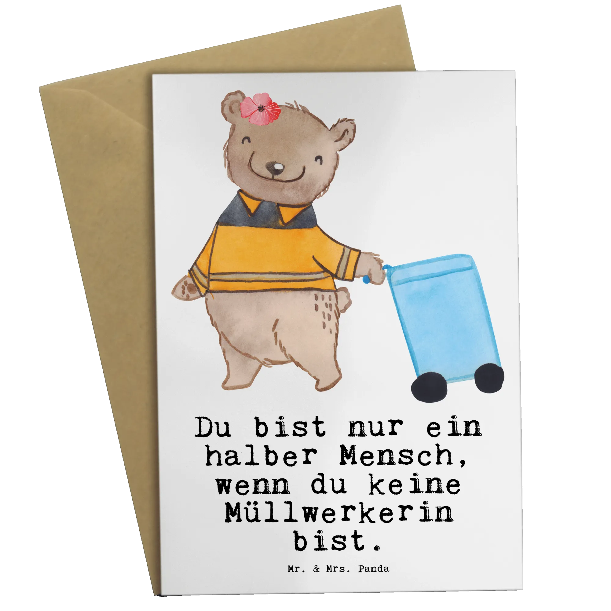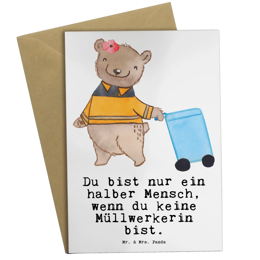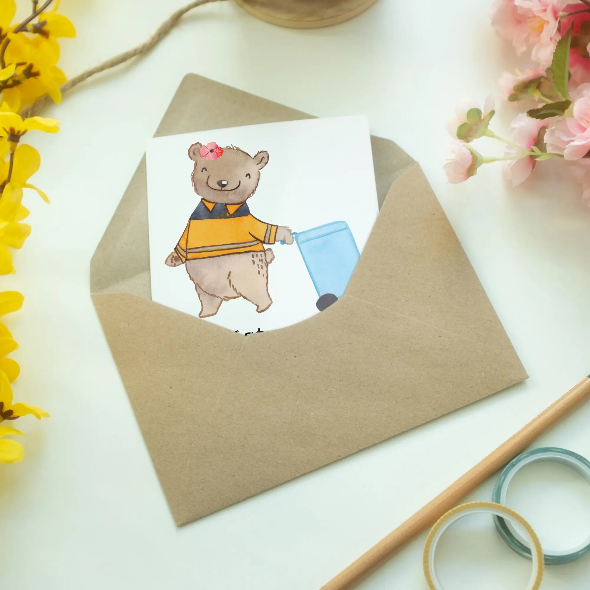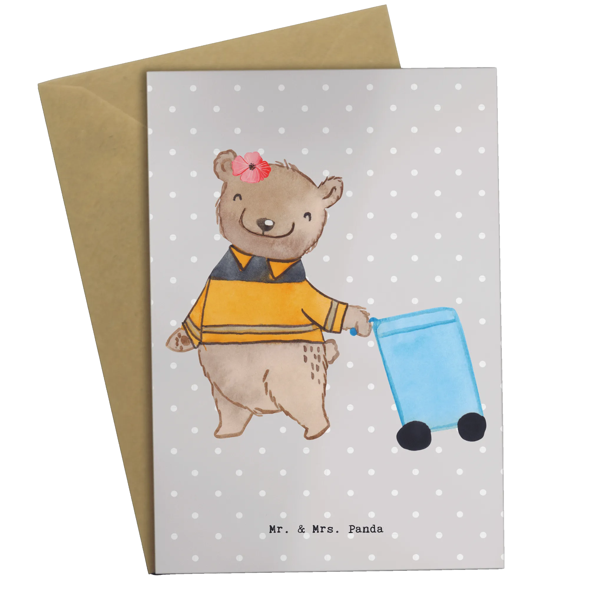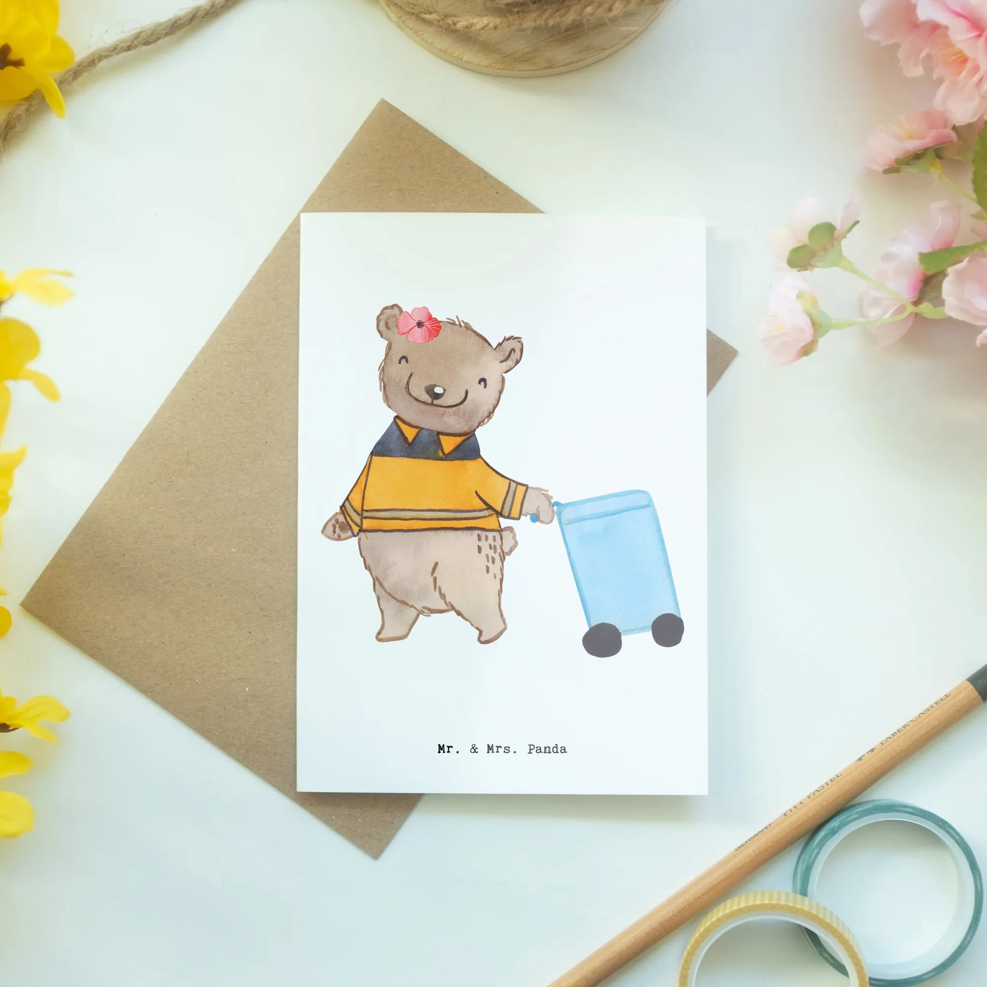 Searching for the perfect gift that brings a smile to the face of your favorite garbage collector? Look no further! Mr. & Mrs. Panda have created a delightful greeting card featuring the whimsical motif of a cheerful female bear happily pulling along a paper bin, beautifully designed to celebrate the unsung heroes of our communities: garbage collectors!